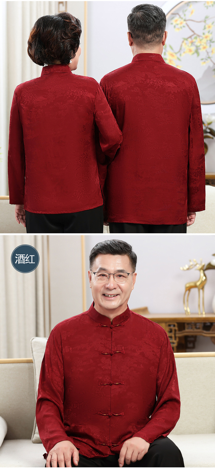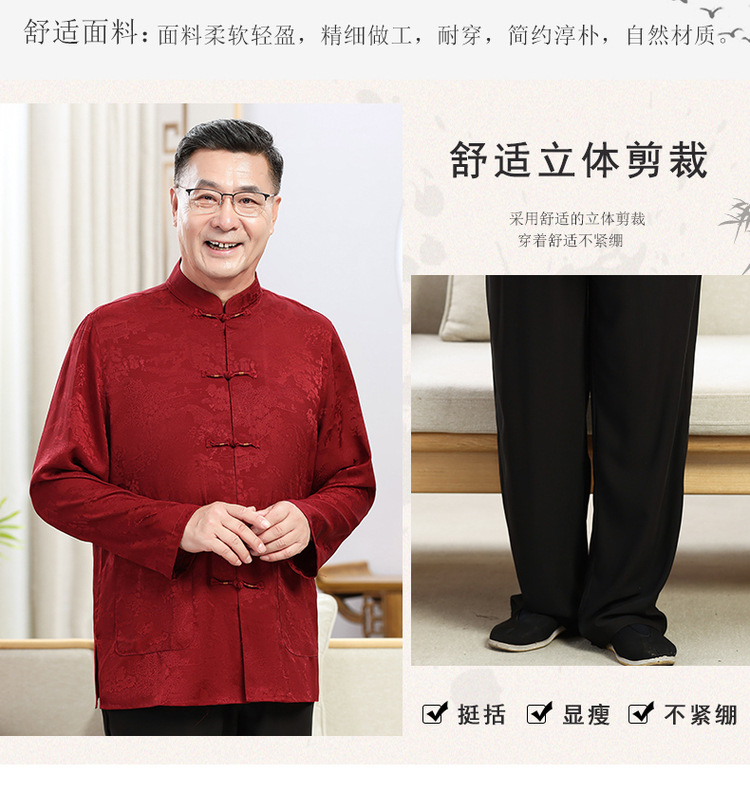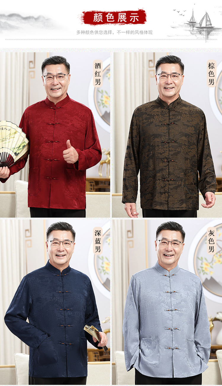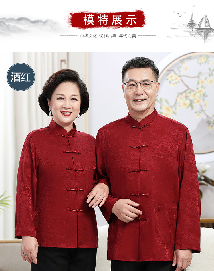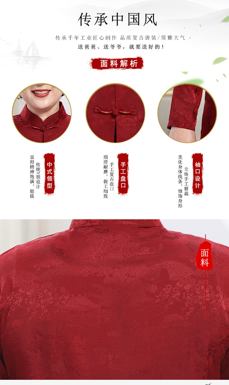 中老年爷爷奶奶情侣春秋唐装男父母长袖婚礼衬衫老人生日过寿套装