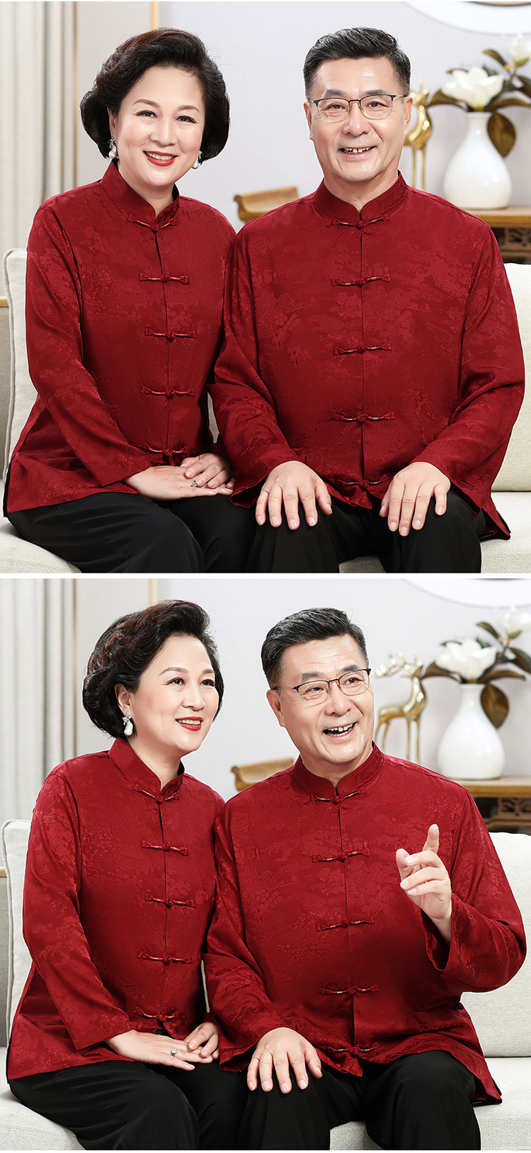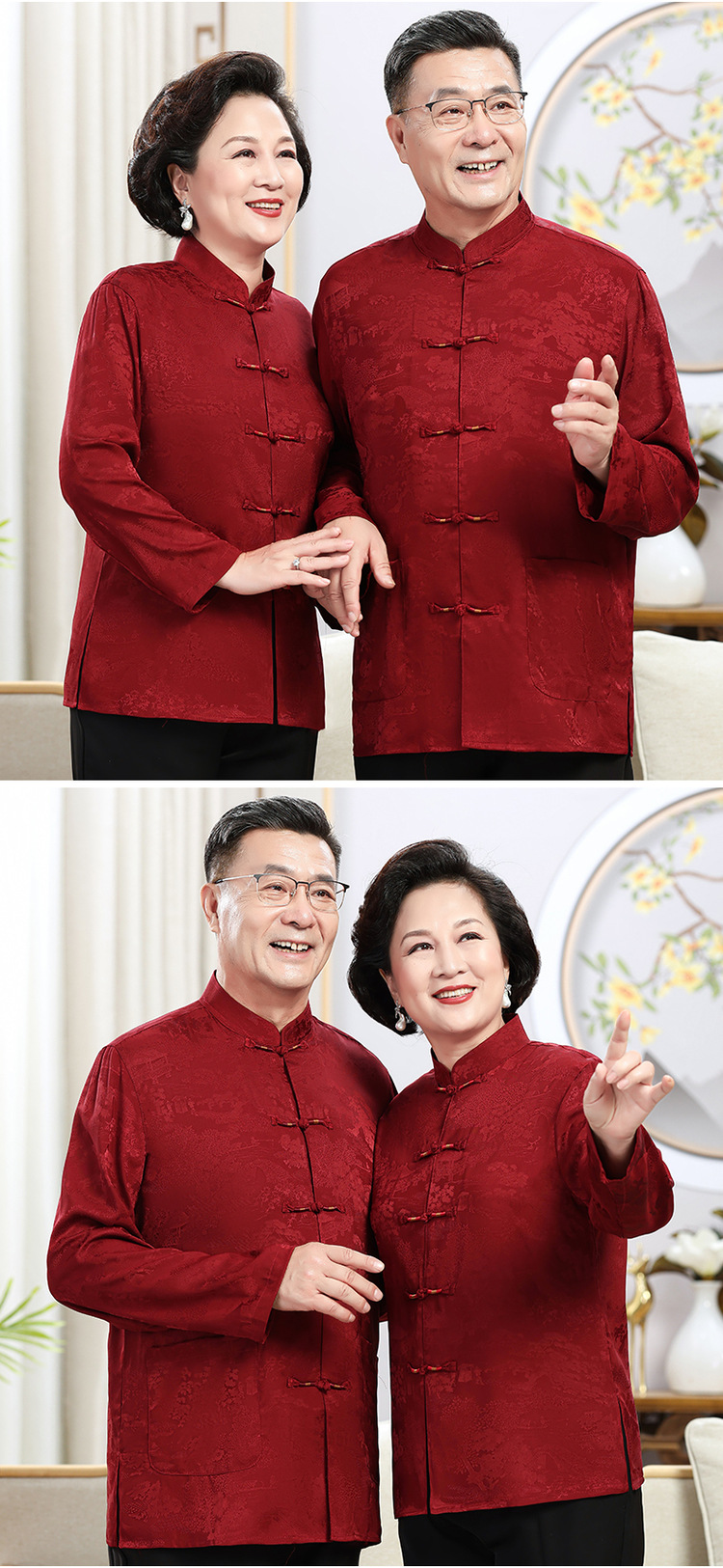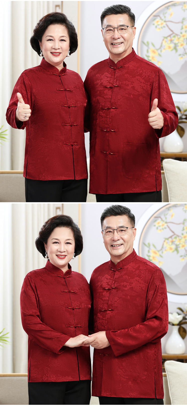 中老年爷爷奶奶情侣春秋唐装男父母长袖婚礼衬衫老人生日过寿套装
