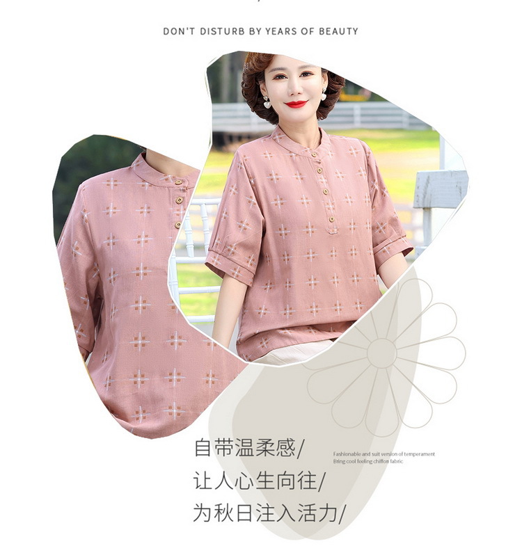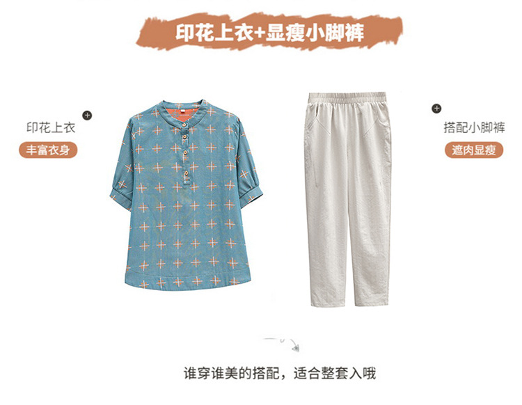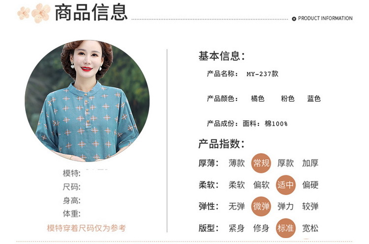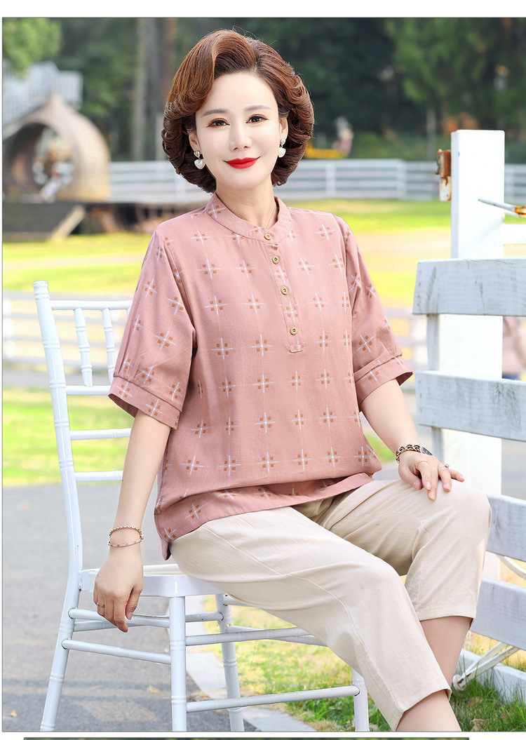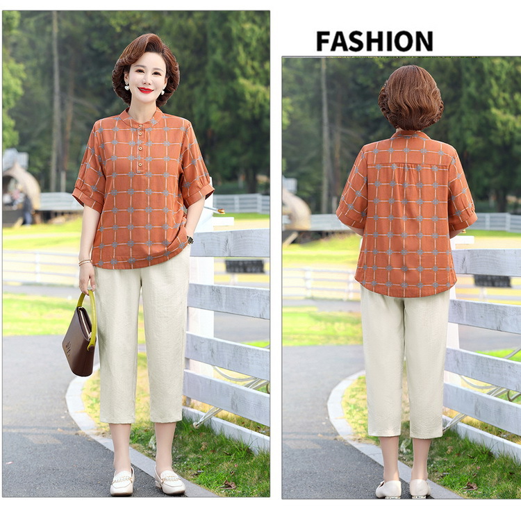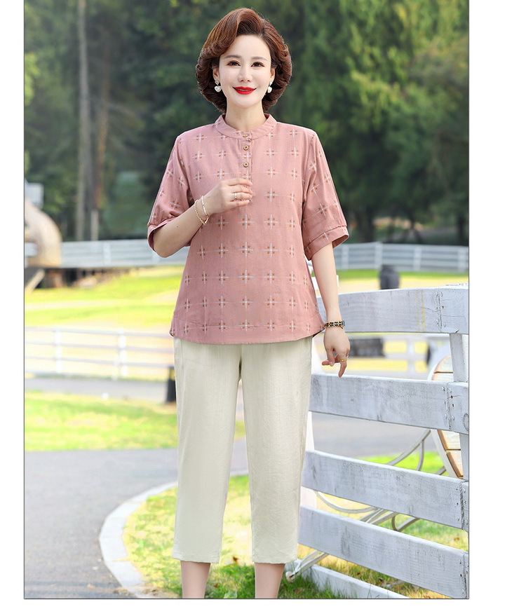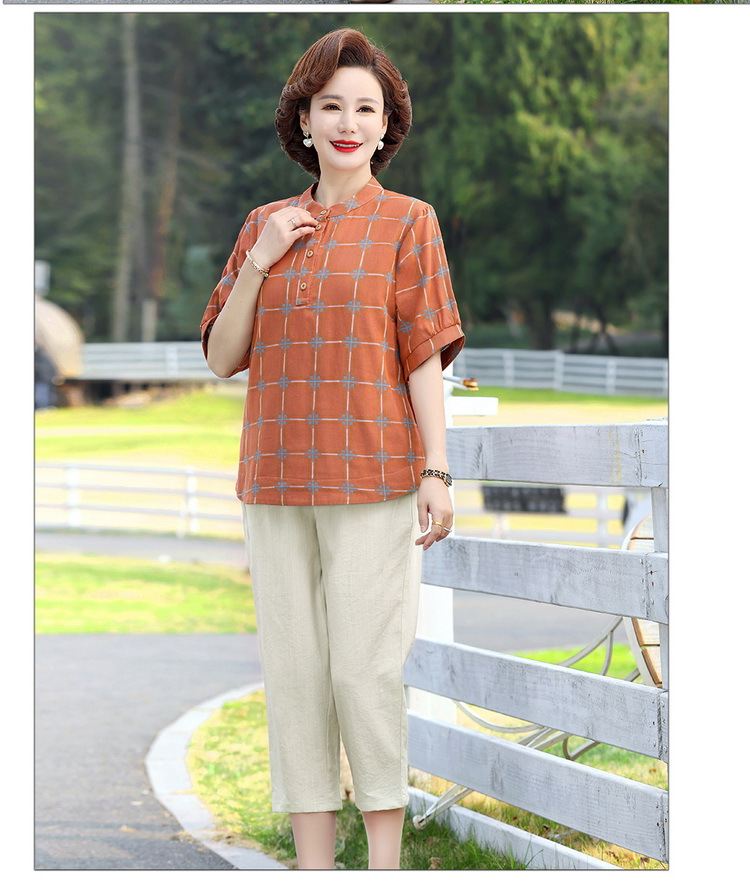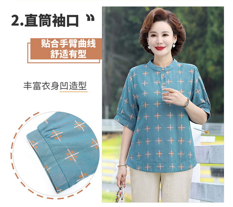 妈妈夏装时尚两件套中年妇女中袖全棉T恤中老年透气纯棉小衫上衣