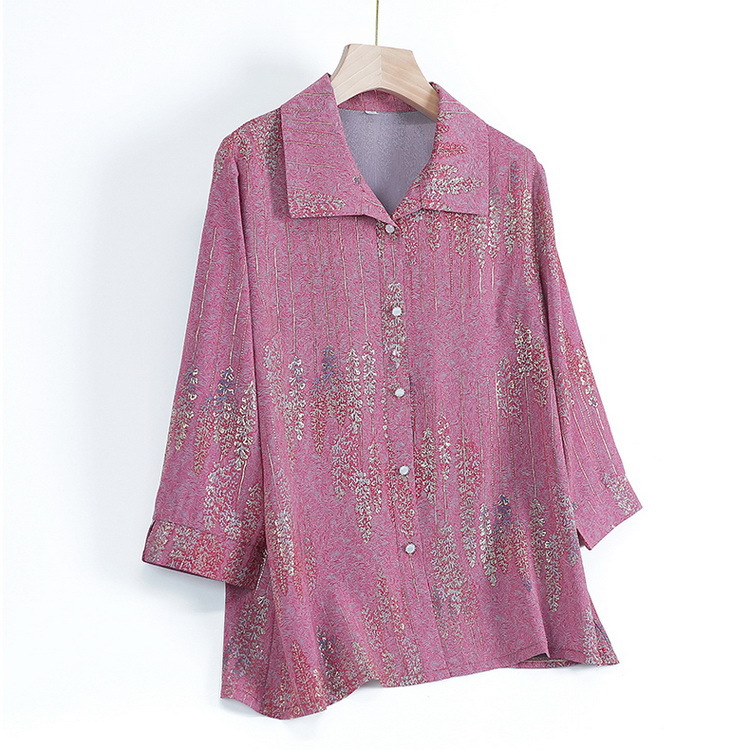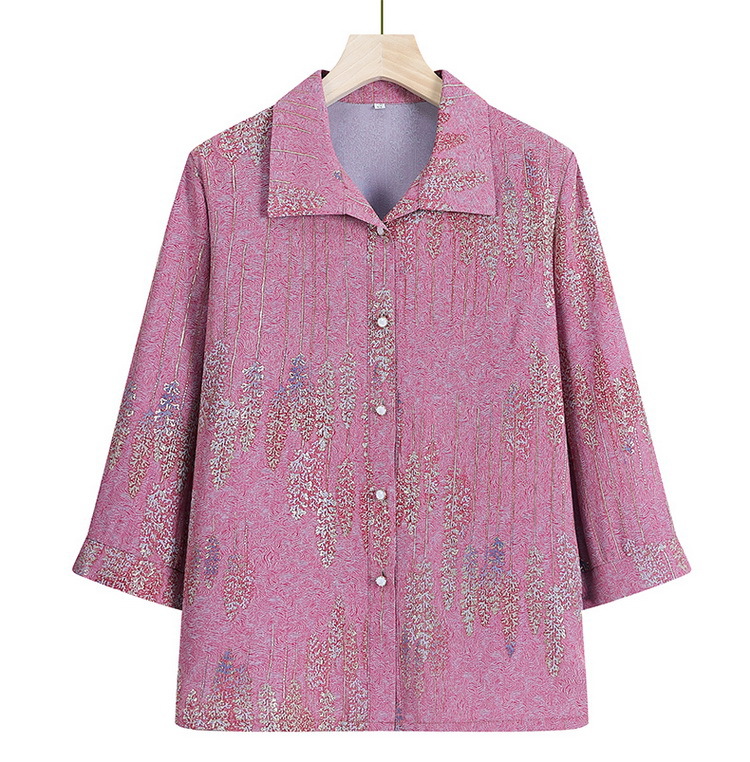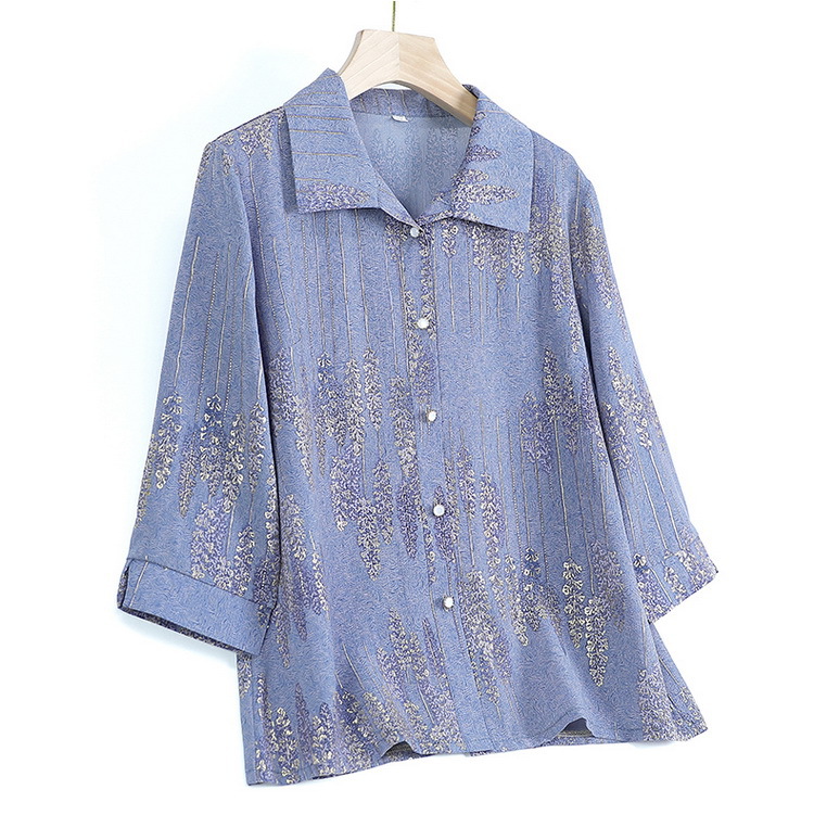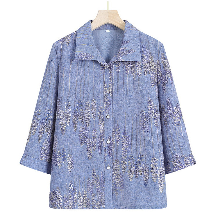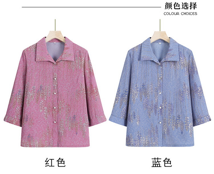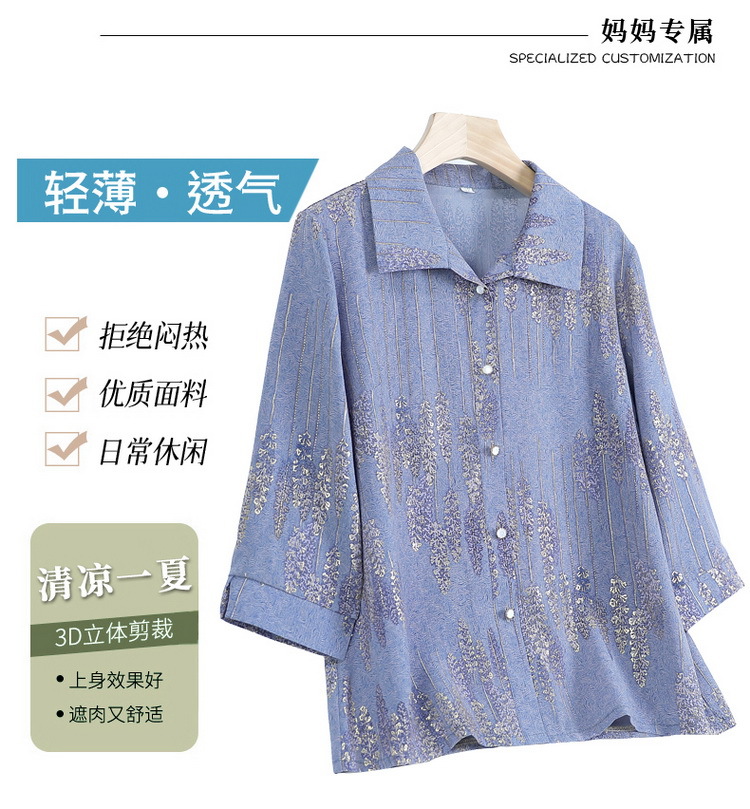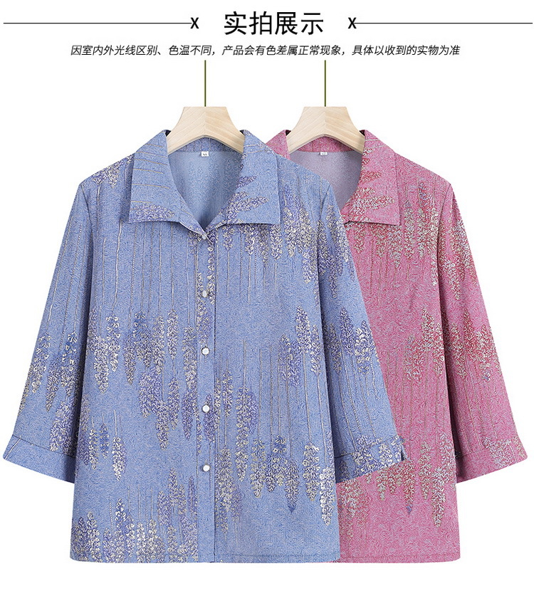 老太太夏装新款衬衫中老年人女装翻领奶奶上衣70岁妈妈七分袖衬衣