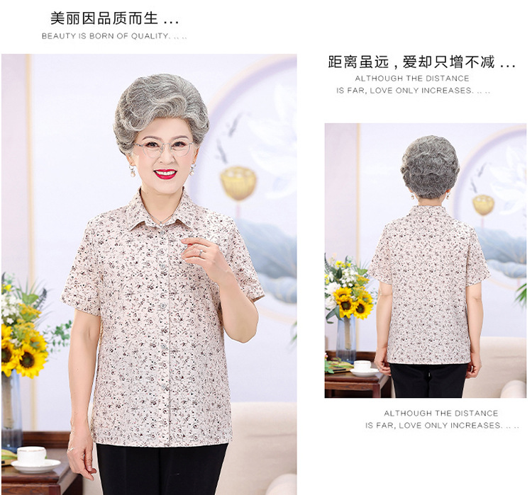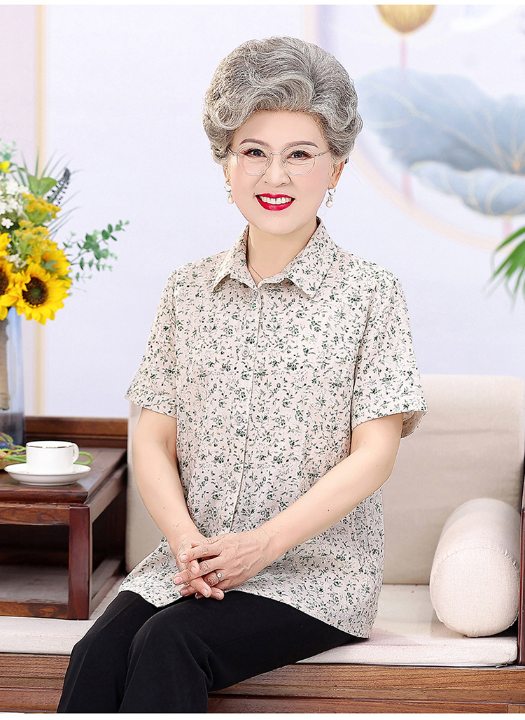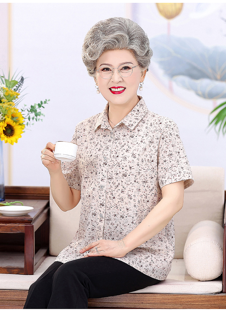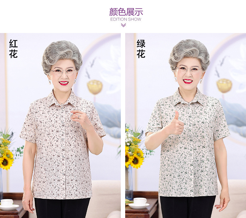 妈妈夏装全棉衬衫中老年人女翻领衬衣奶奶装薄款纯棉短袖上衣开衫