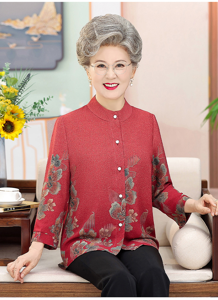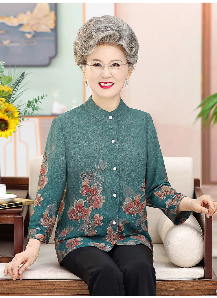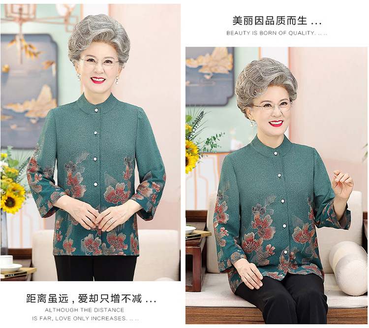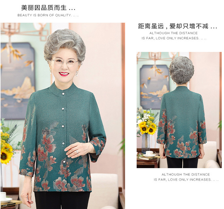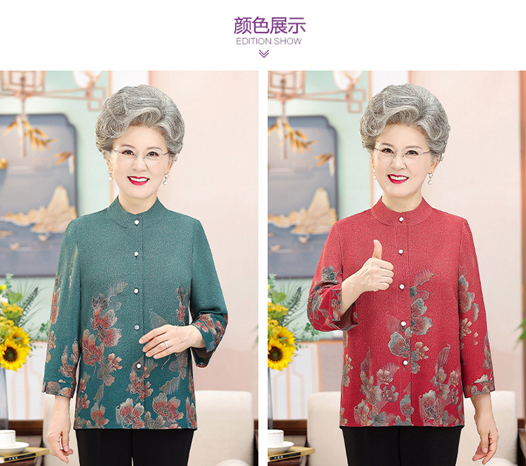 奶奶夏装时尚衬衫中老年人女装夏季两件套70岁妈妈七分袖立领衬衣