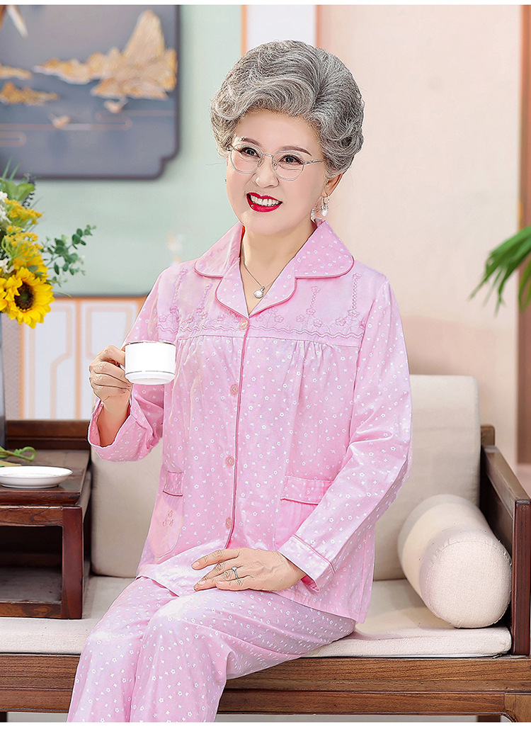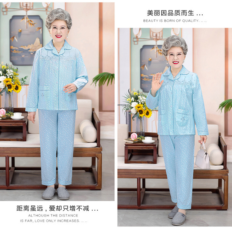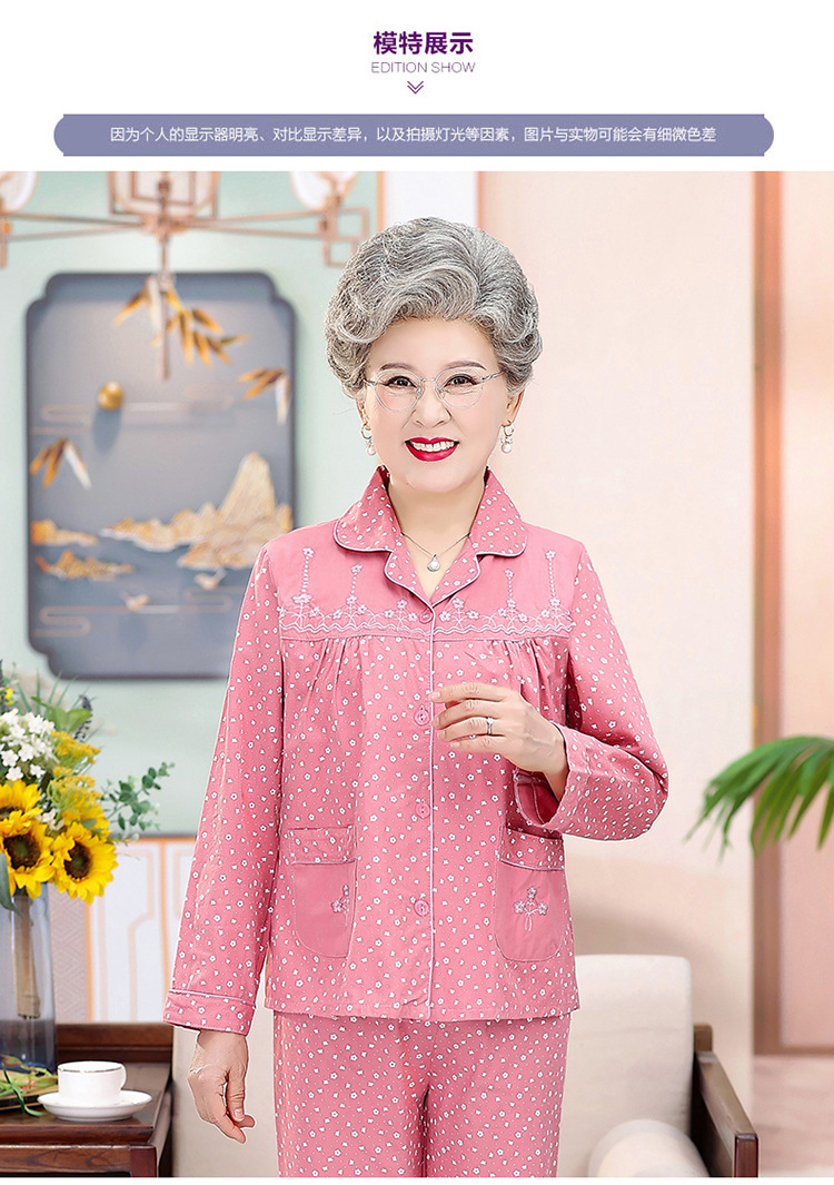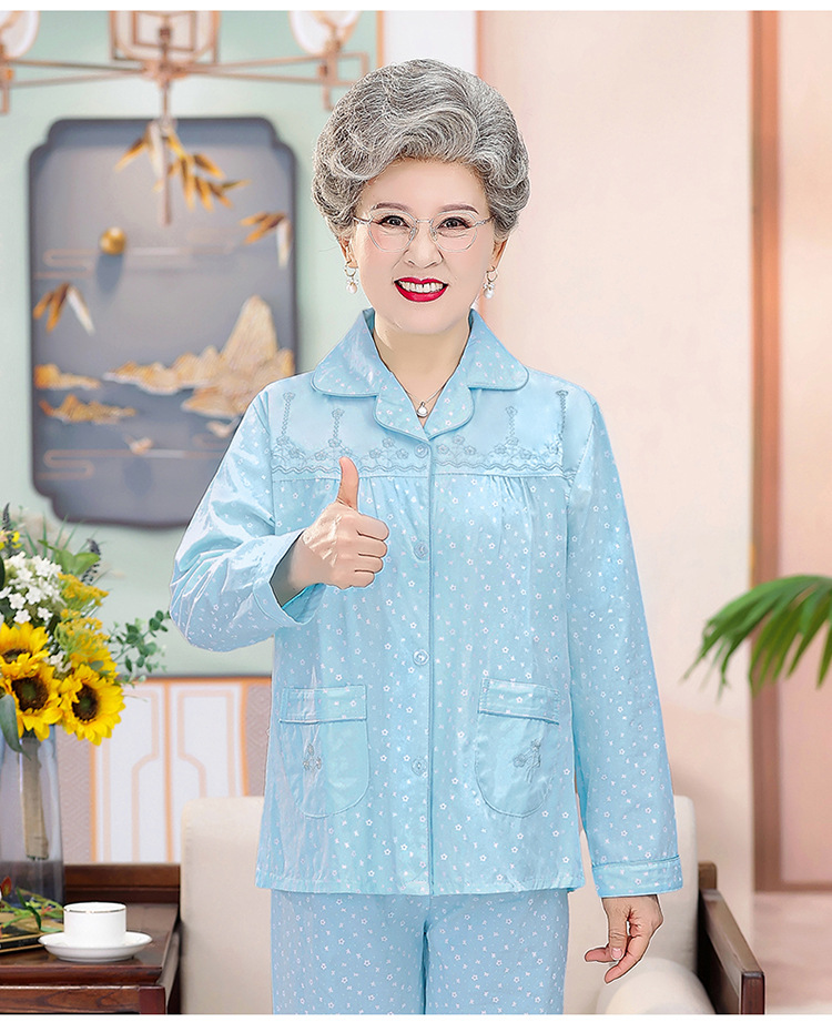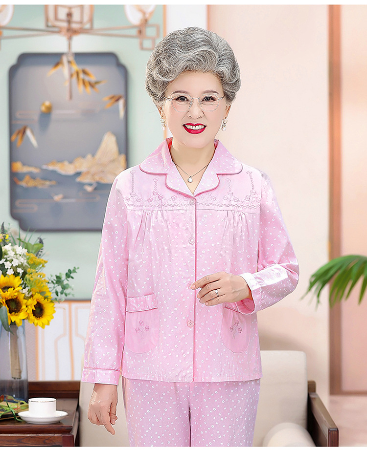 中老年人纯棉睡衣女夏套装妈妈装开衫全棉家居服奶奶长袖长裤夏季