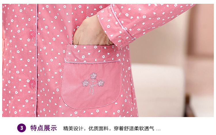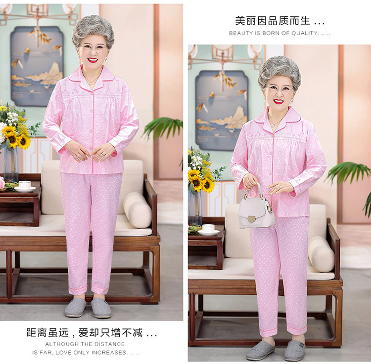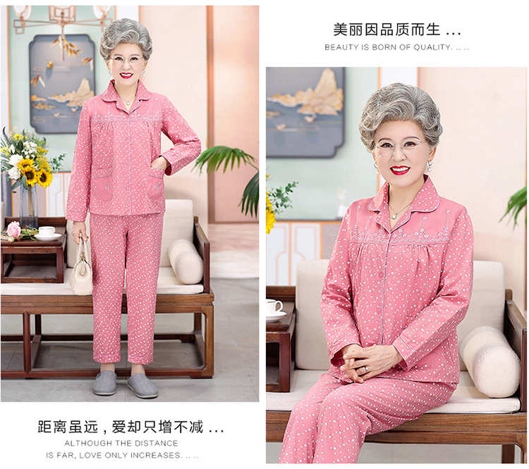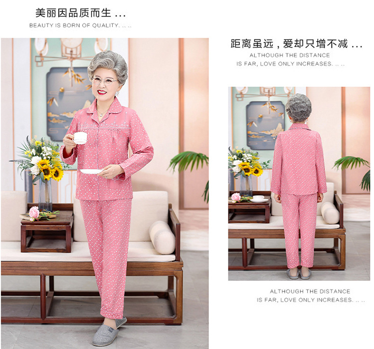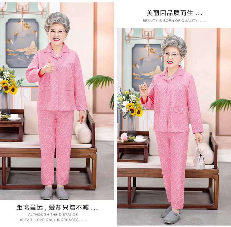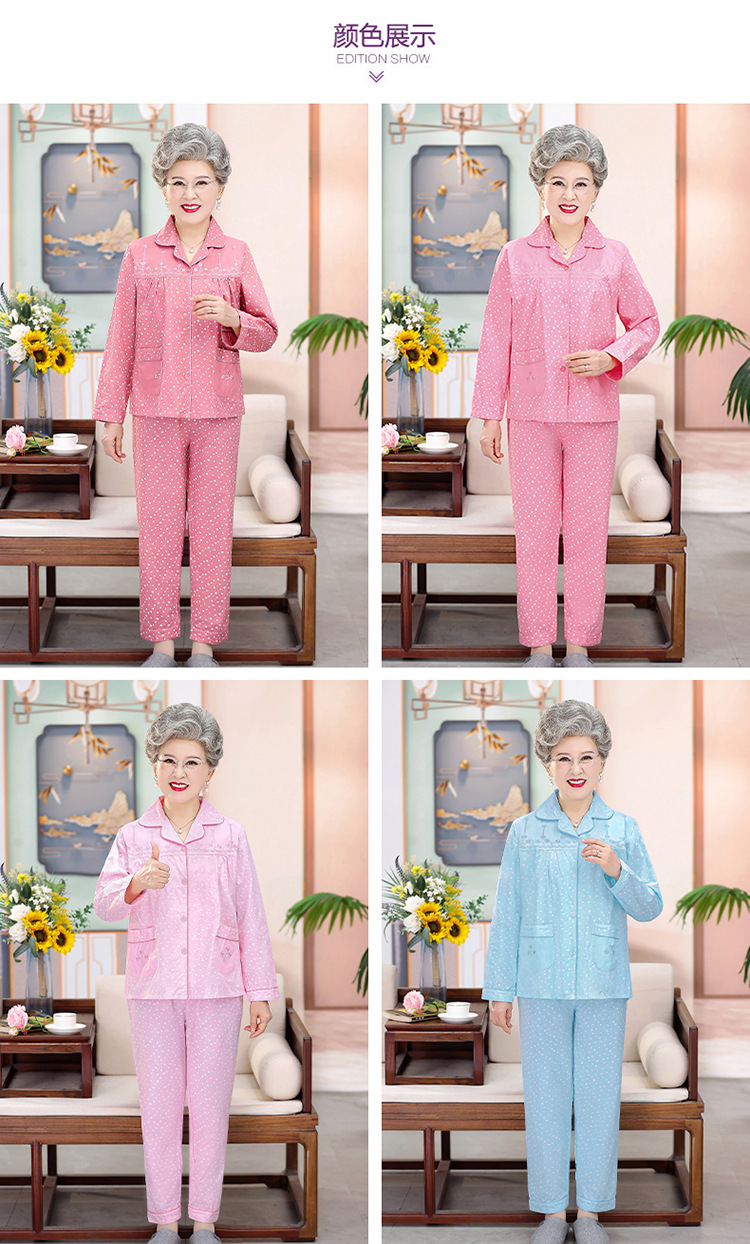 中老年人纯棉睡衣女夏套装妈妈装开衫全棉家居服奶奶长袖长裤夏季