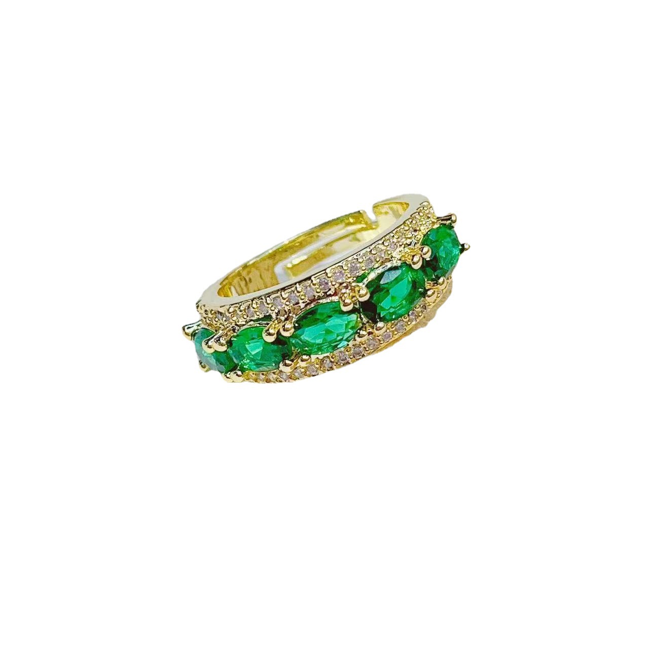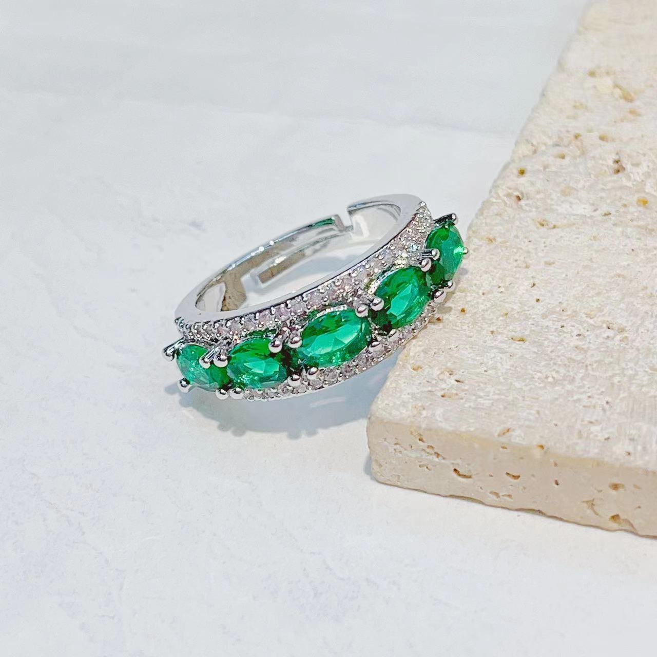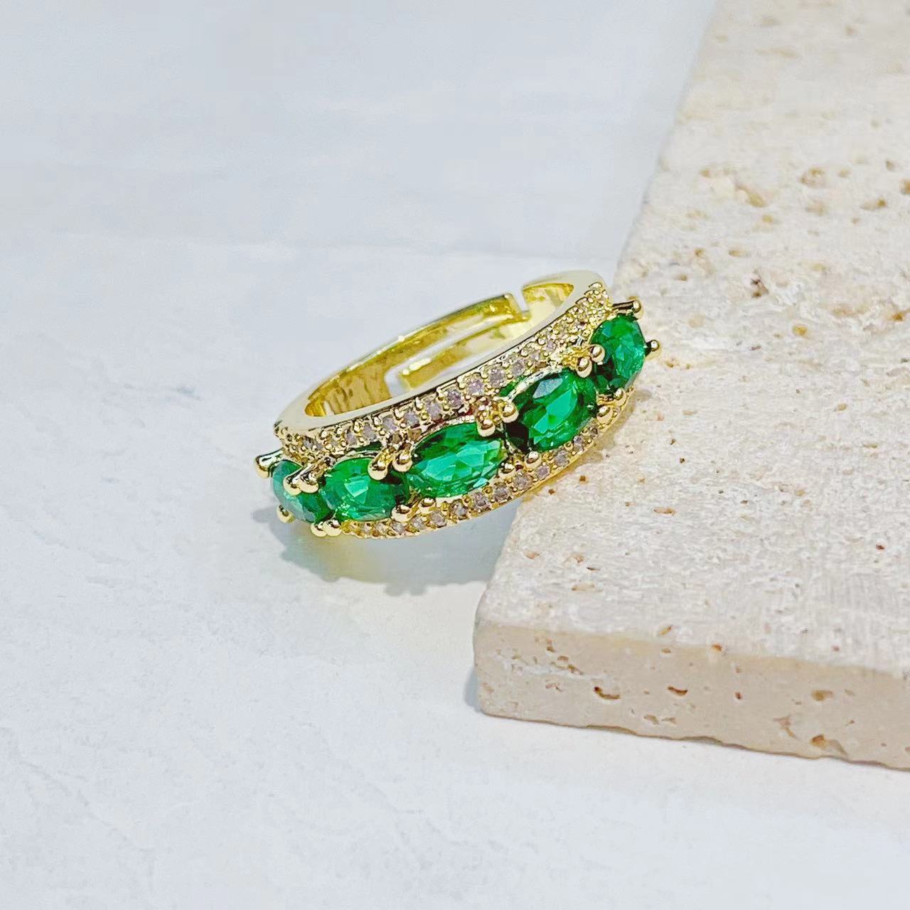 欧美跨境抖音网红铜镀真金玫红祖母绿蛋形锆石轻奢个性开口式指女