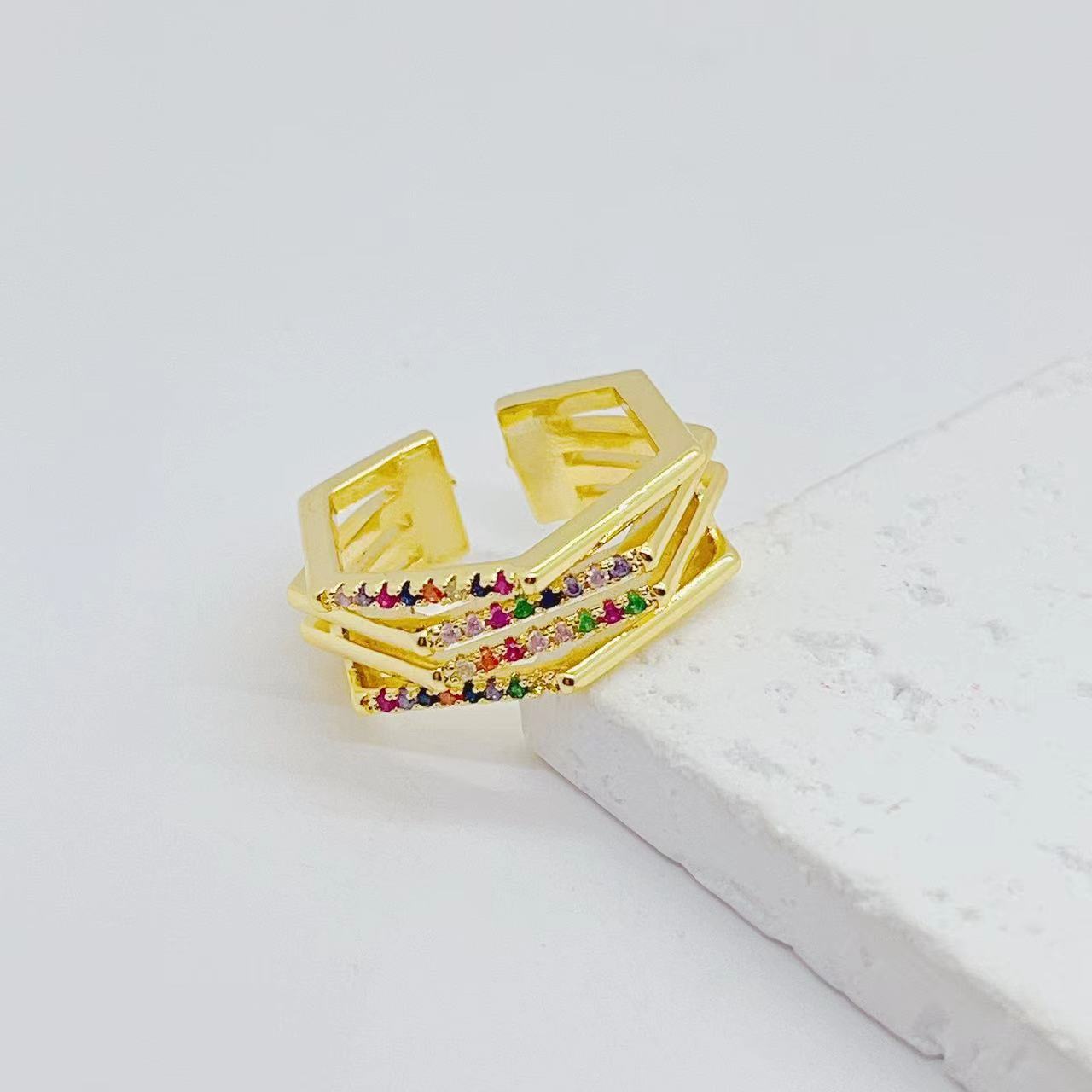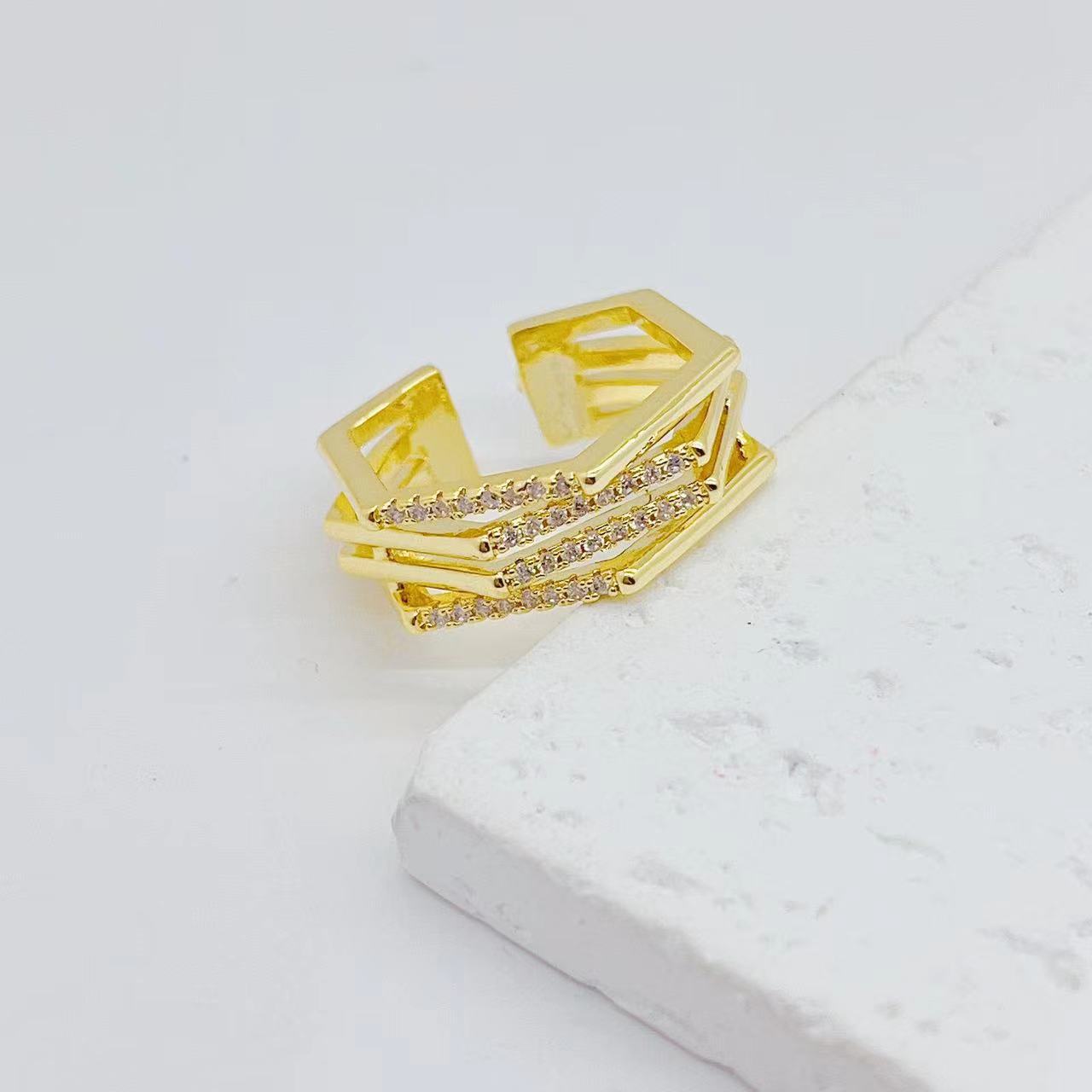 大气时尚个性小众设计不规则开口戒欧美跨境新品戒指微镶锆石女戒