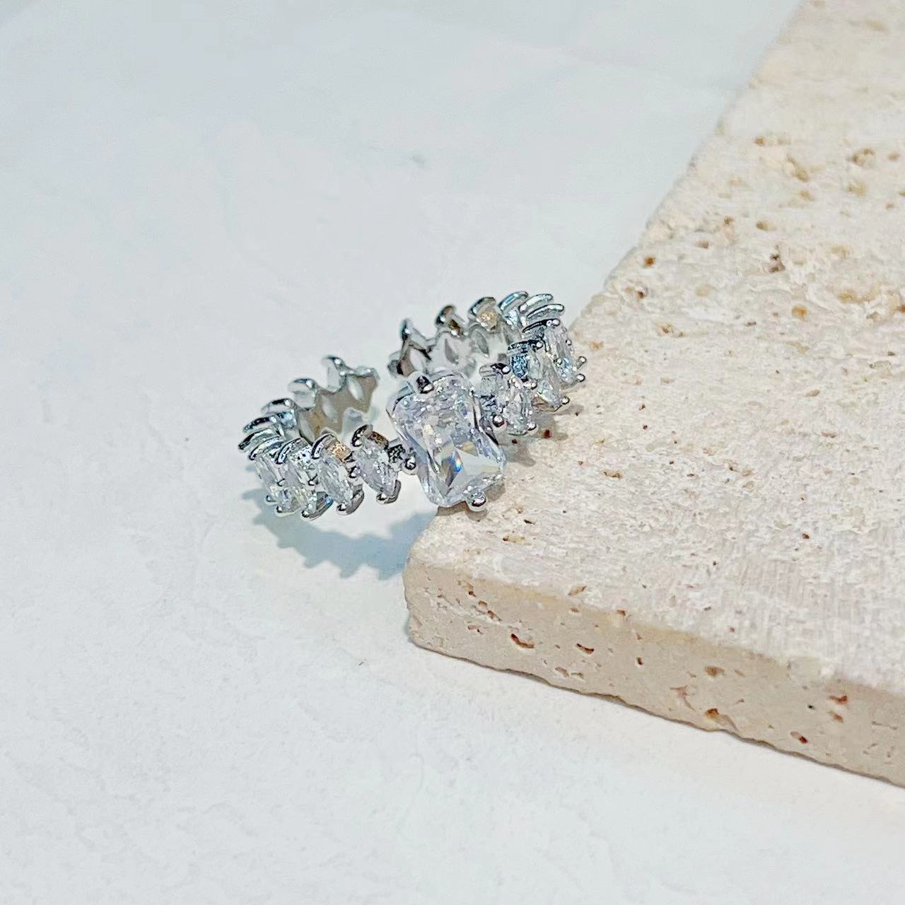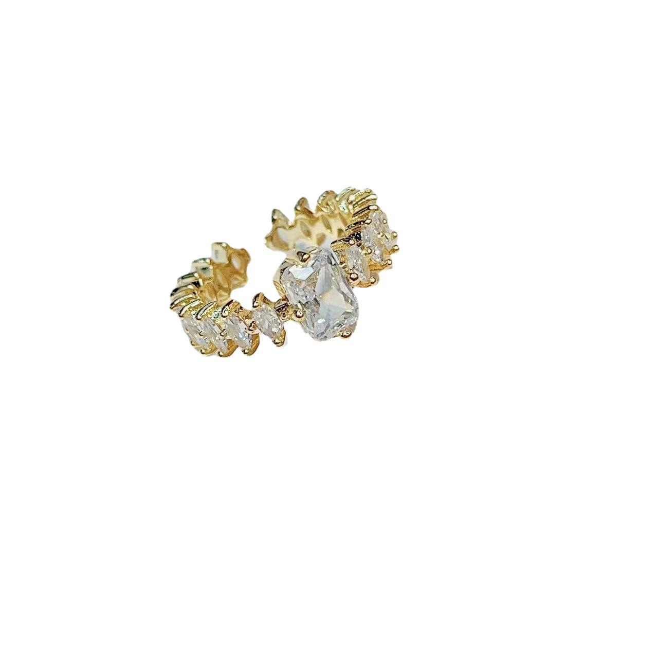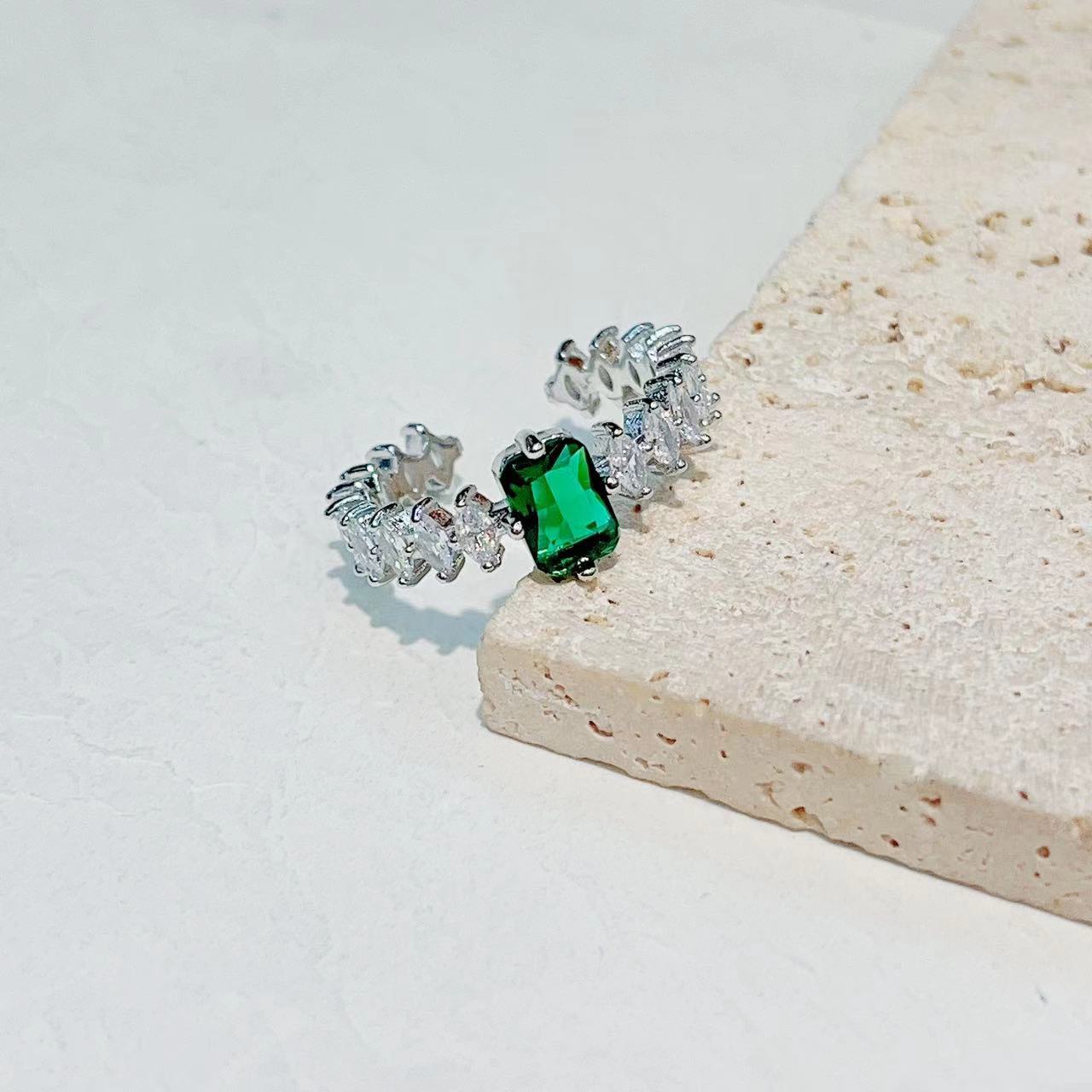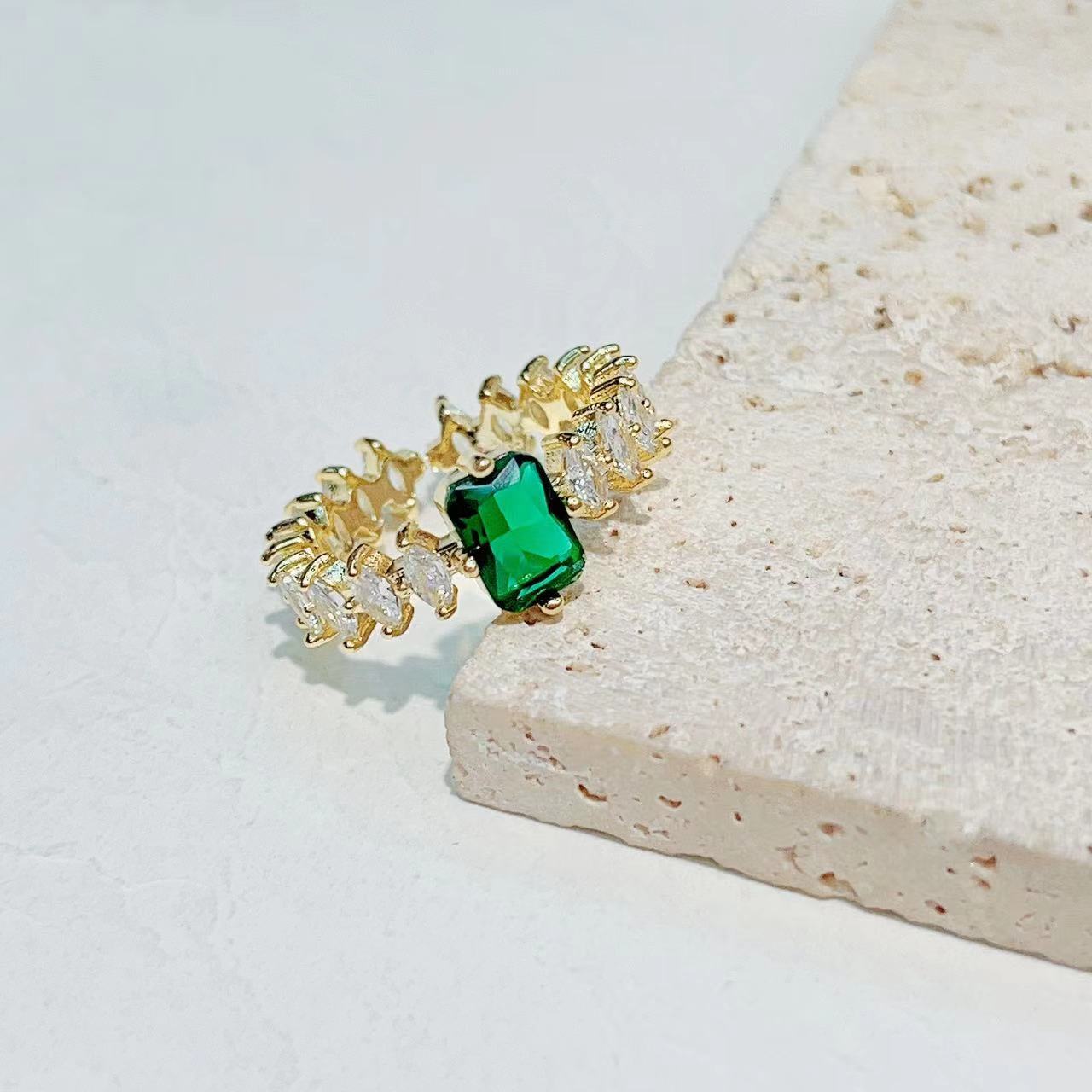 欧美跨境网红热卖款祖母绿长方马眼铜镀真金个性时尚开口戒指女