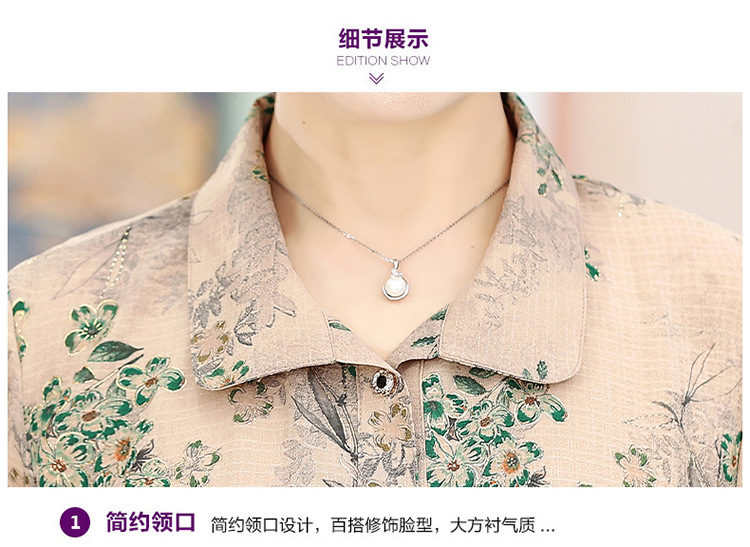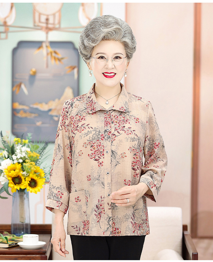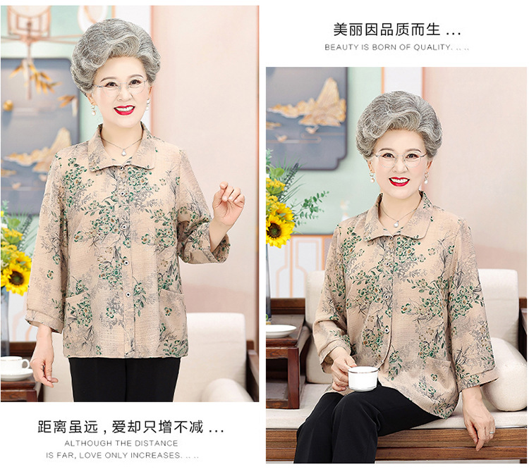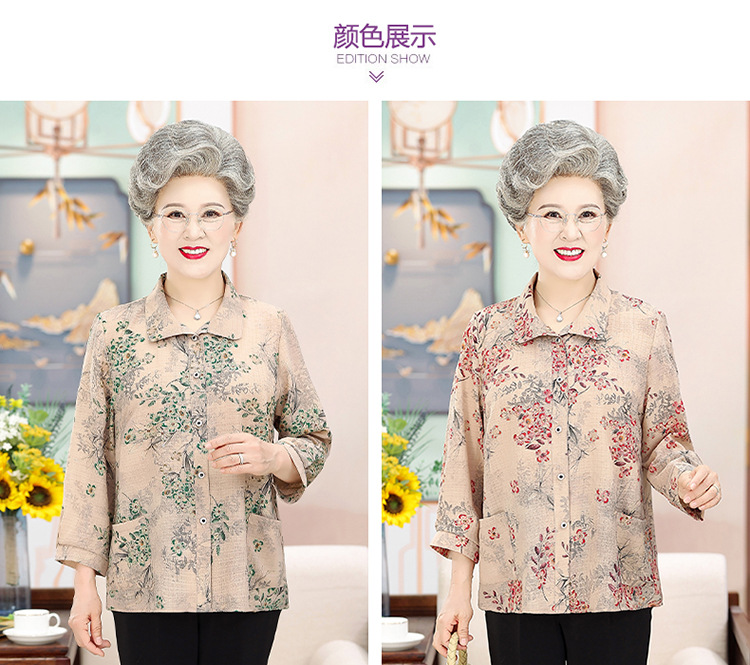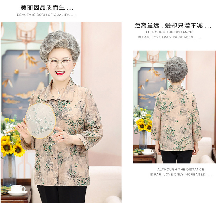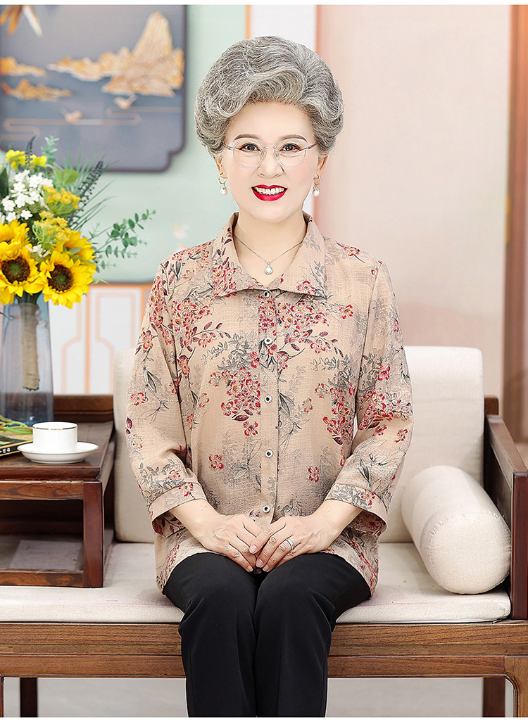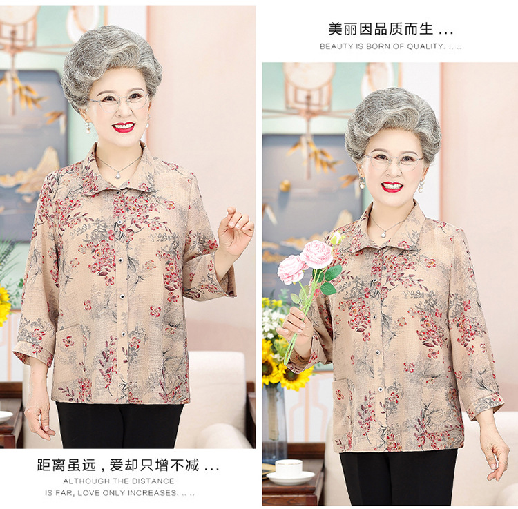 奶奶夏装衬衫中老年人女妈妈装七分袖翻领上衣老太太薄款洋气衬衣