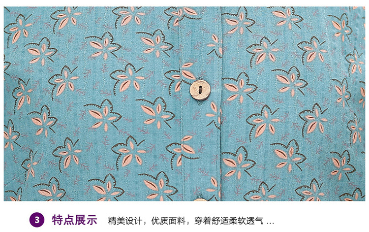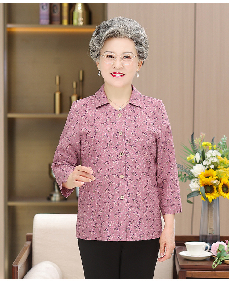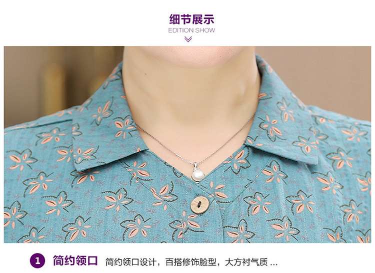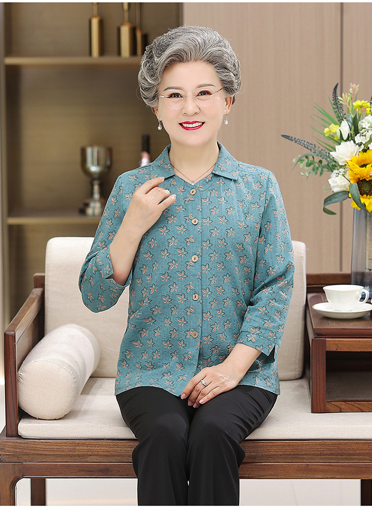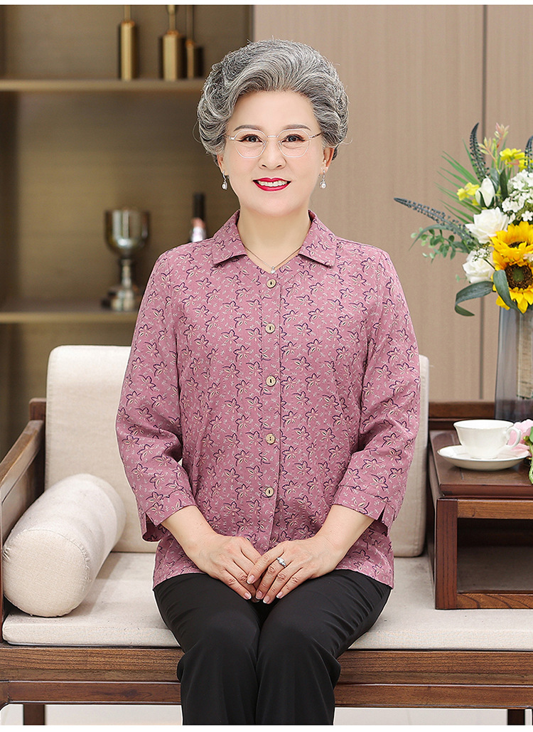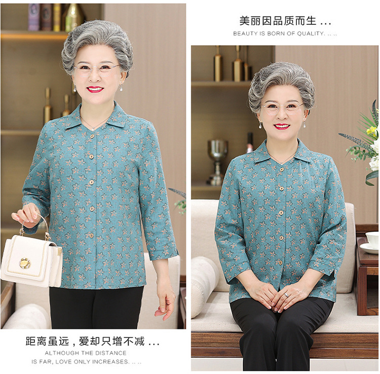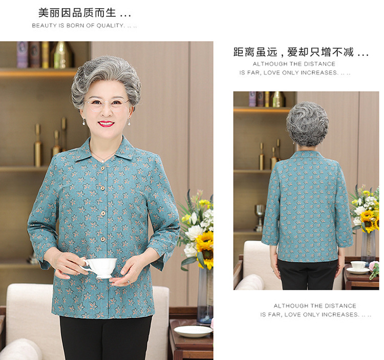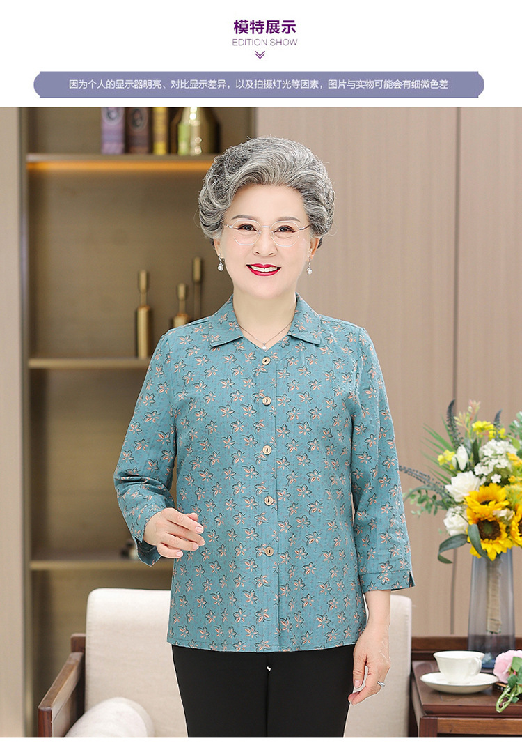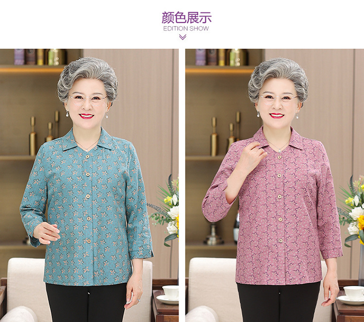 老年人女夏季奶奶装纯棉七分袖衬衣妈妈时尚全棉碎花衬衫太太衣服