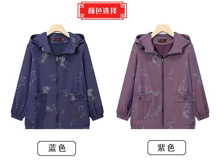 奶奶秋装风衣外套60岁70老年人妈妈春秋连帽上衣薄褂子老太太衣服