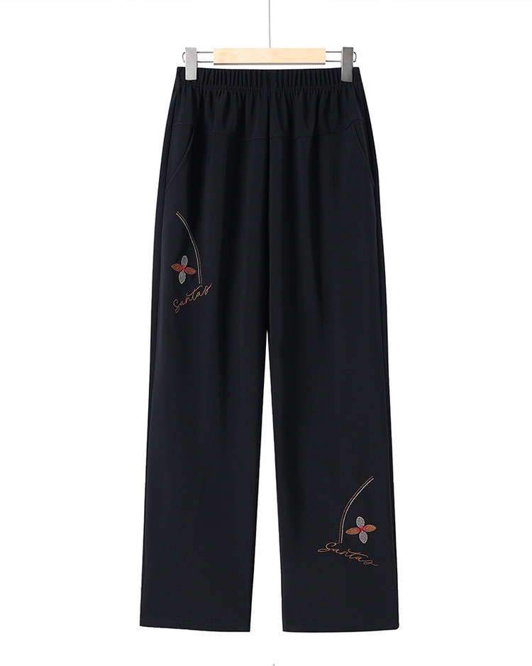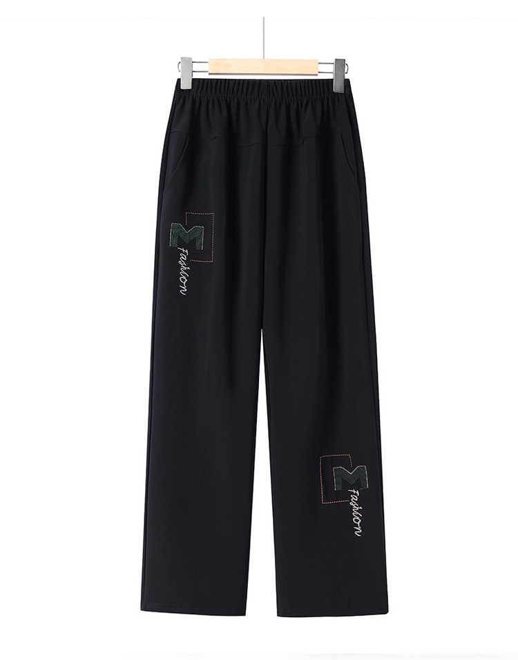 妈妈裤子夏季薄款九分裤宽松直筒中老年女裤松紧高腰老年人奶奶裤