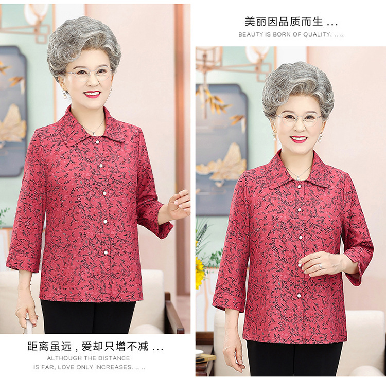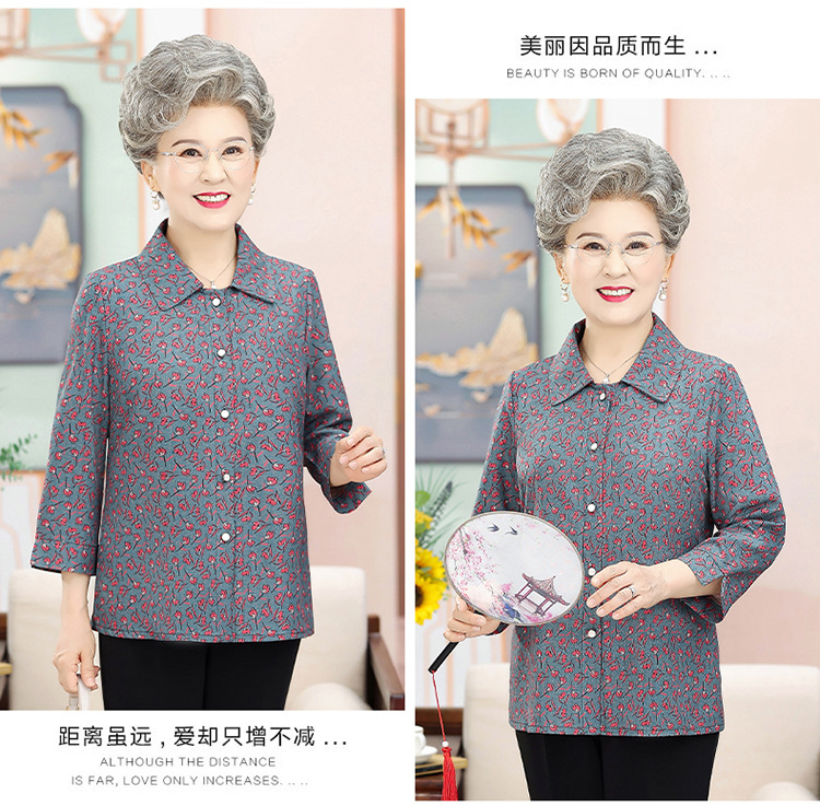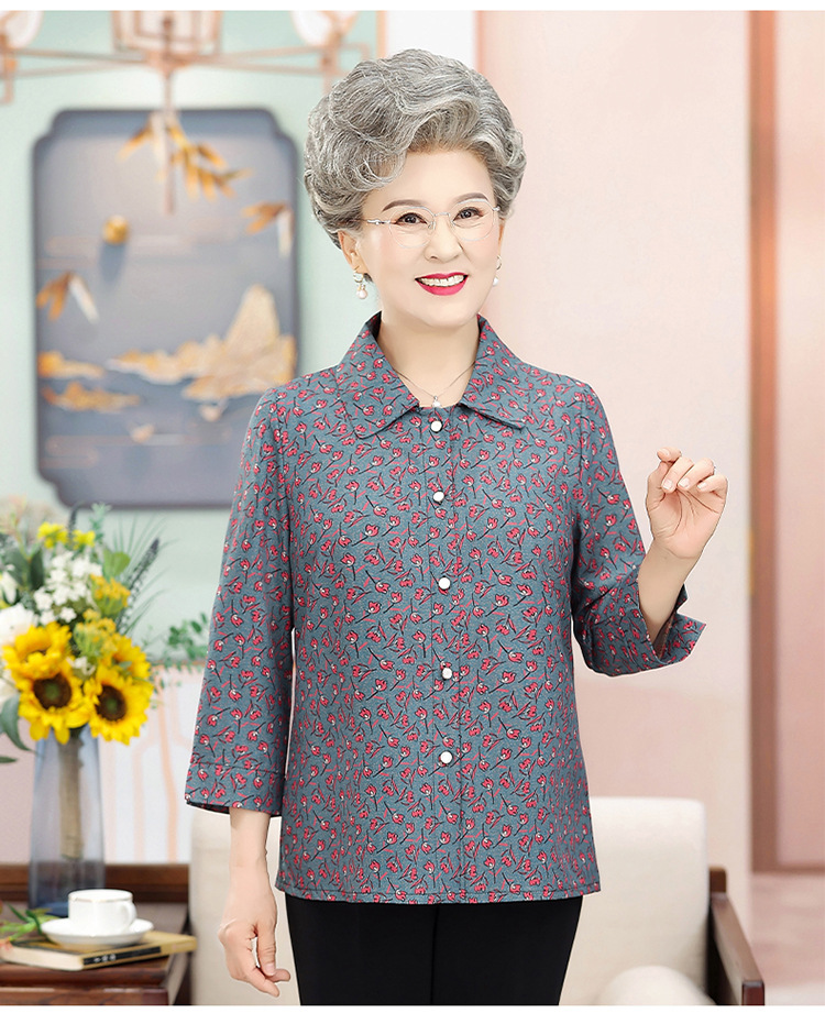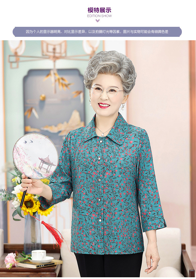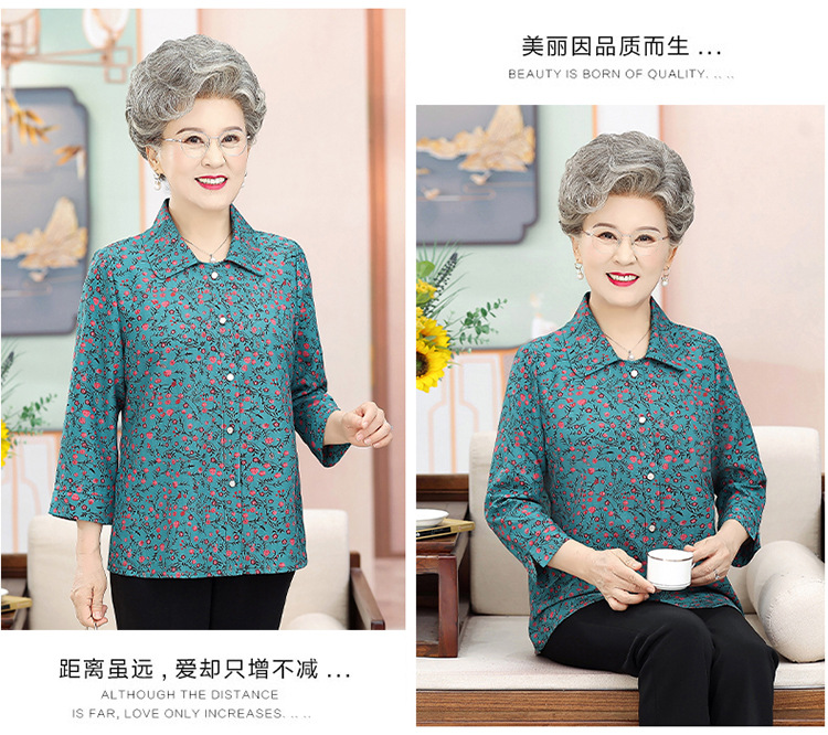 中老年人夏装女衬衫奶奶装七分袖上衣妈妈洋气衬衣老太太翻领衣服