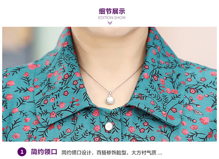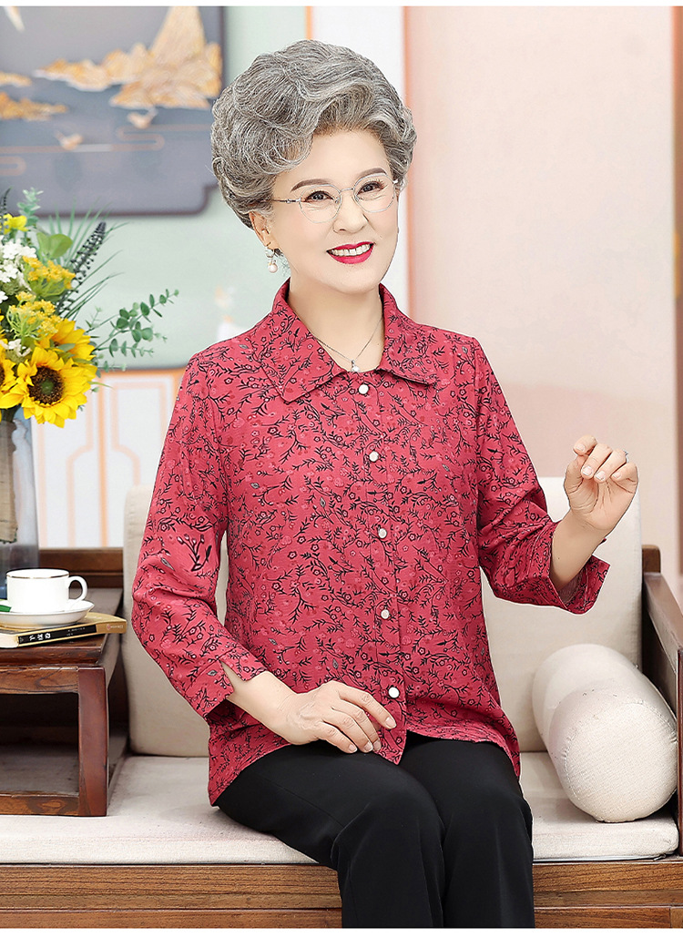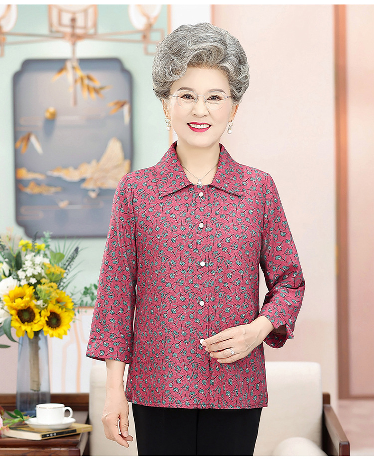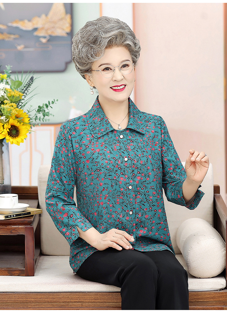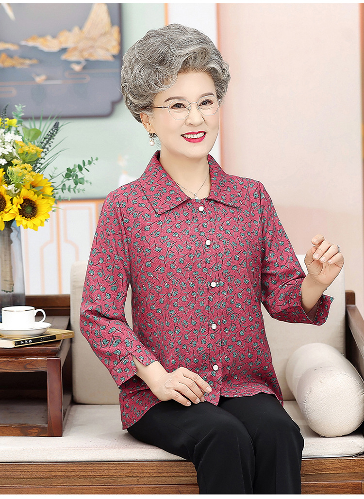 中老年人夏装女衬衫奶奶装七分袖上衣妈妈洋气衬衣老太太翻领衣服