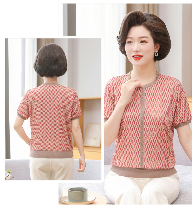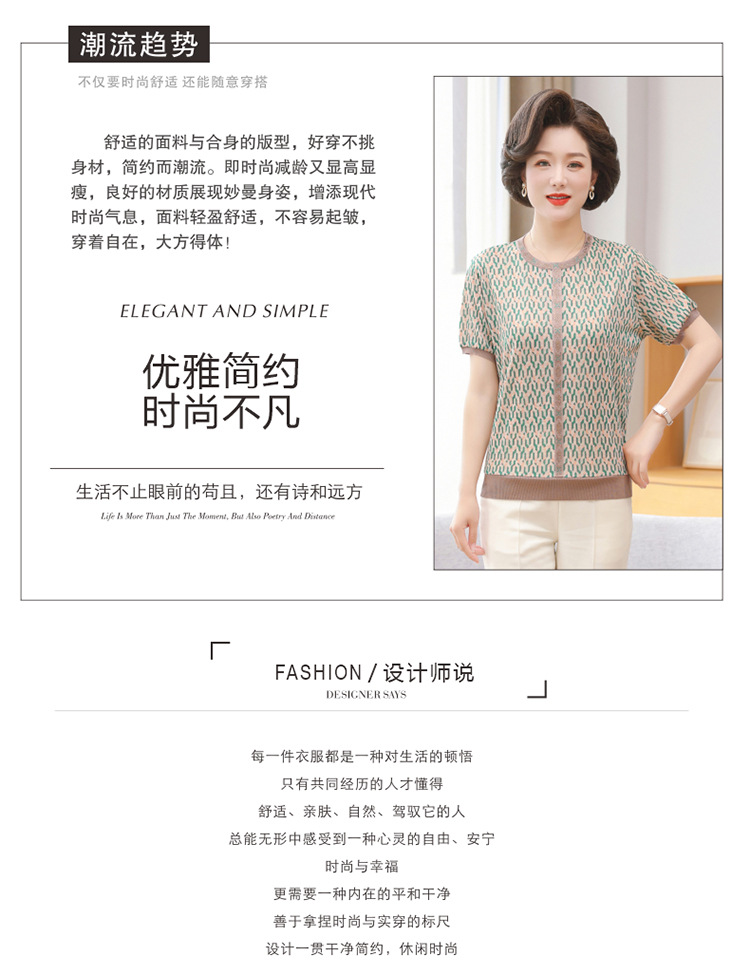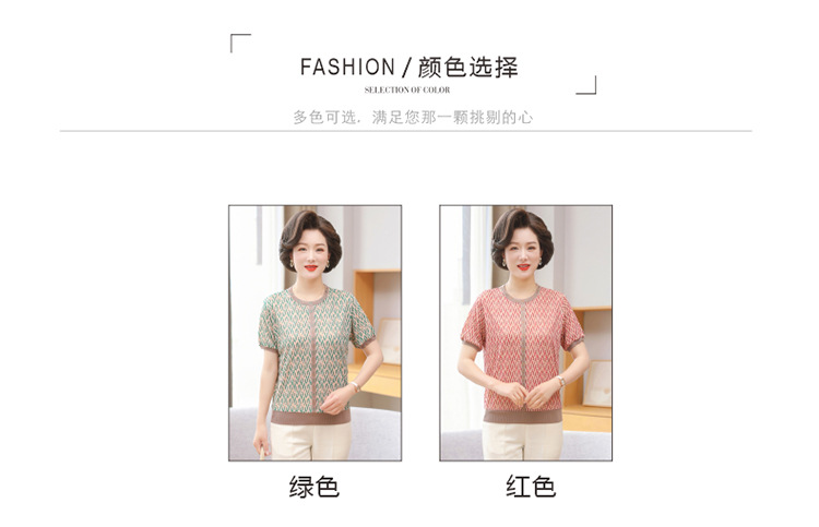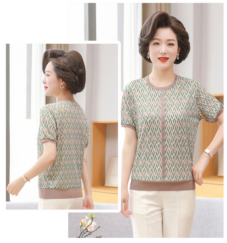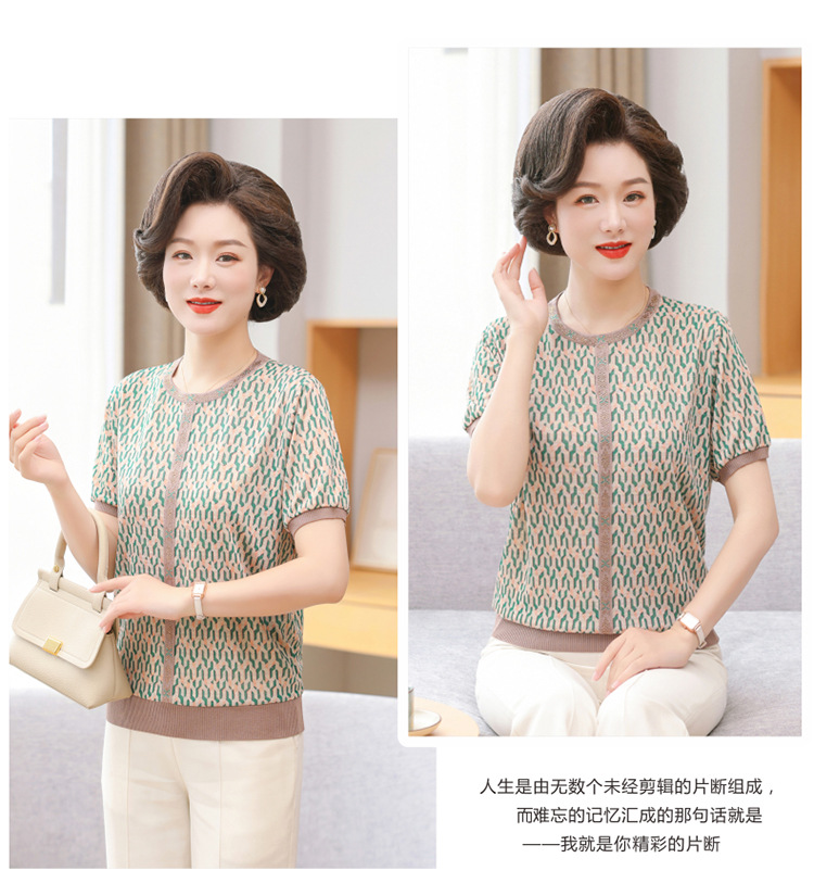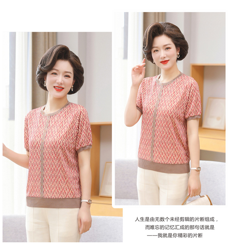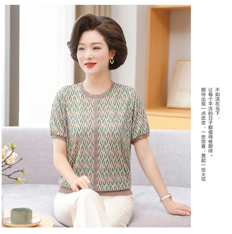 妈妈夏装短袖洋气冰丝小衫2023新款中年女薄上衣中老年人针织t恤