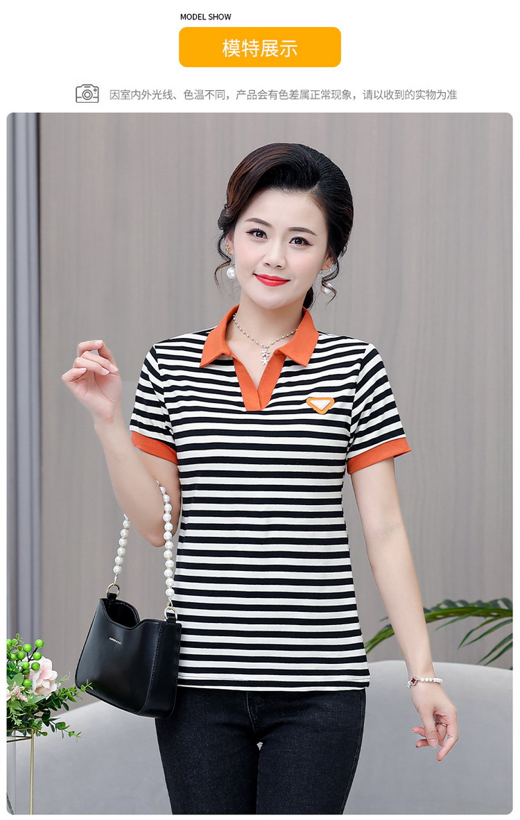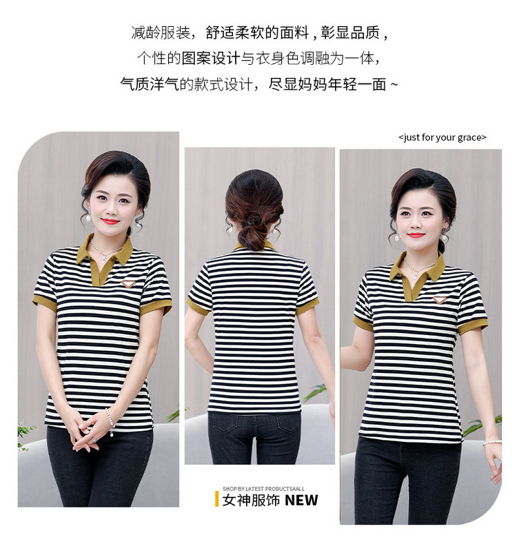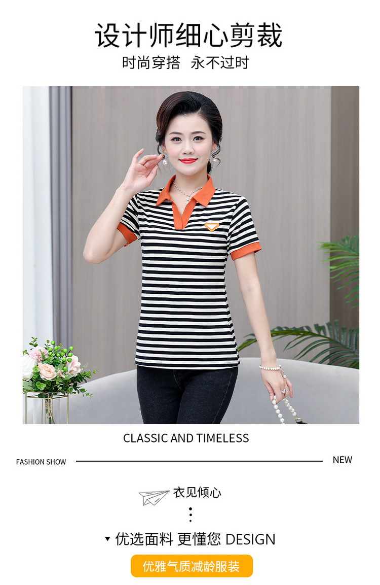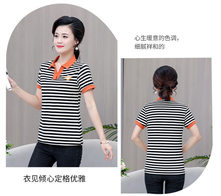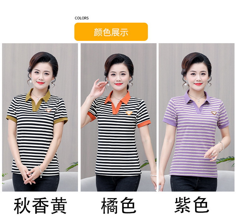 polo领t恤女短袖棉质翻领条纹上衣2023新款中年妈妈夏装洋气体桖