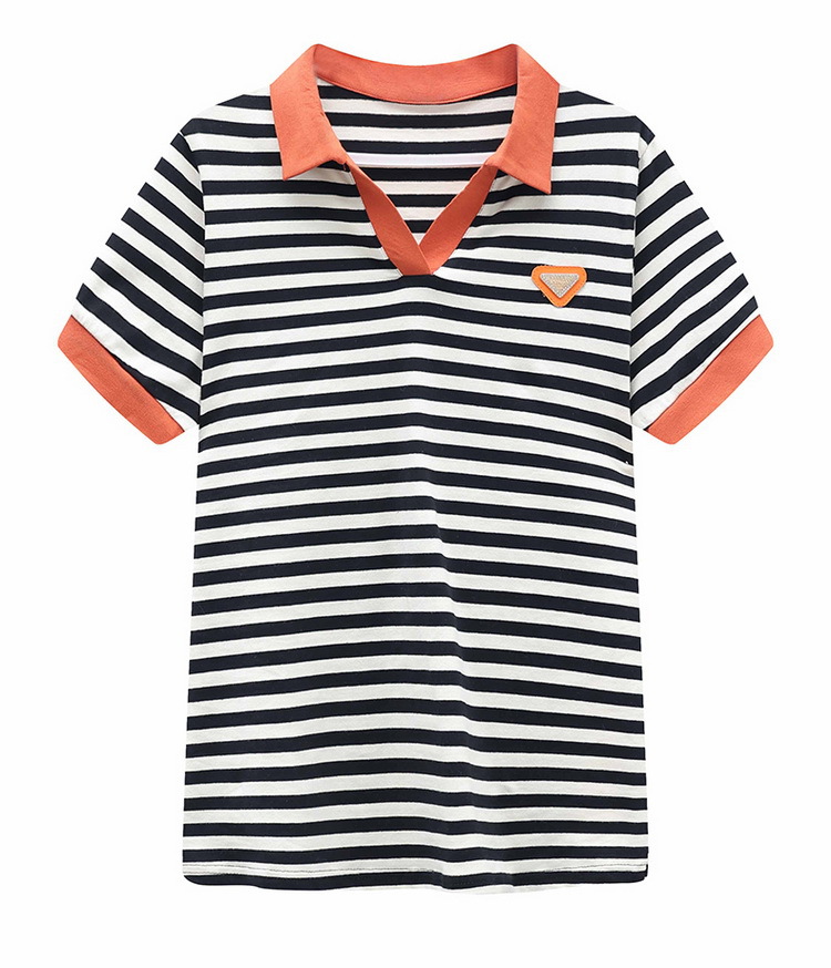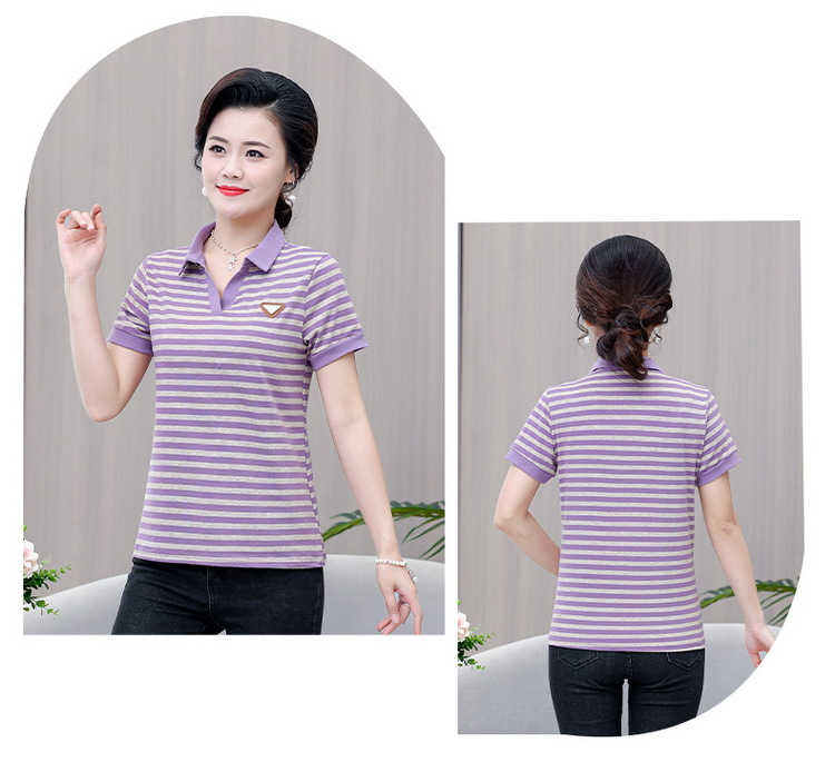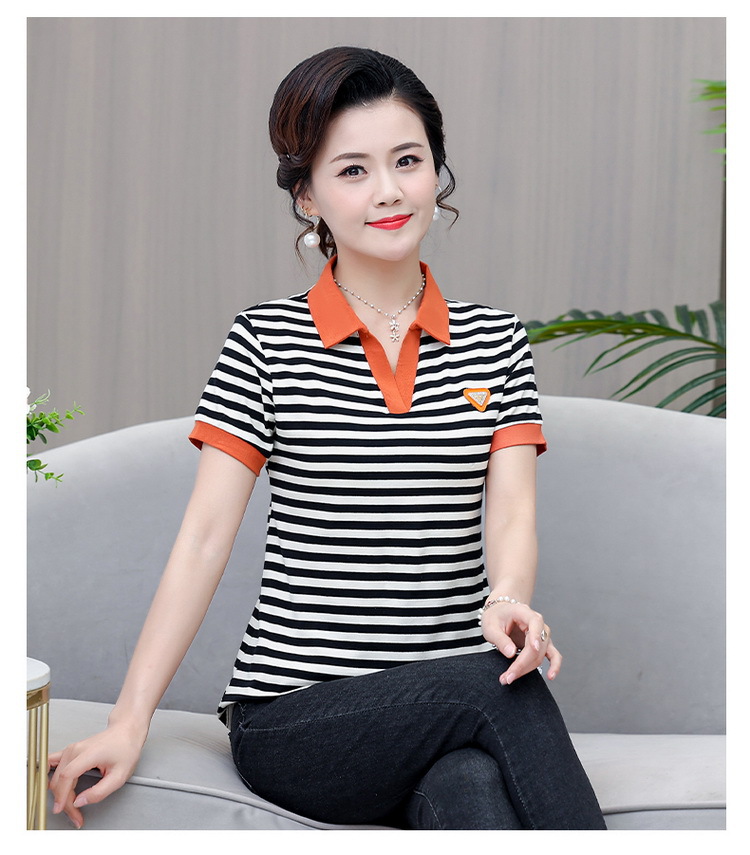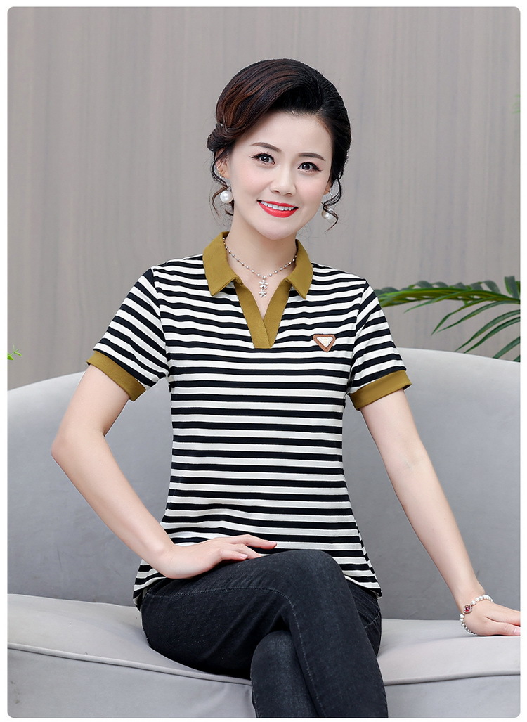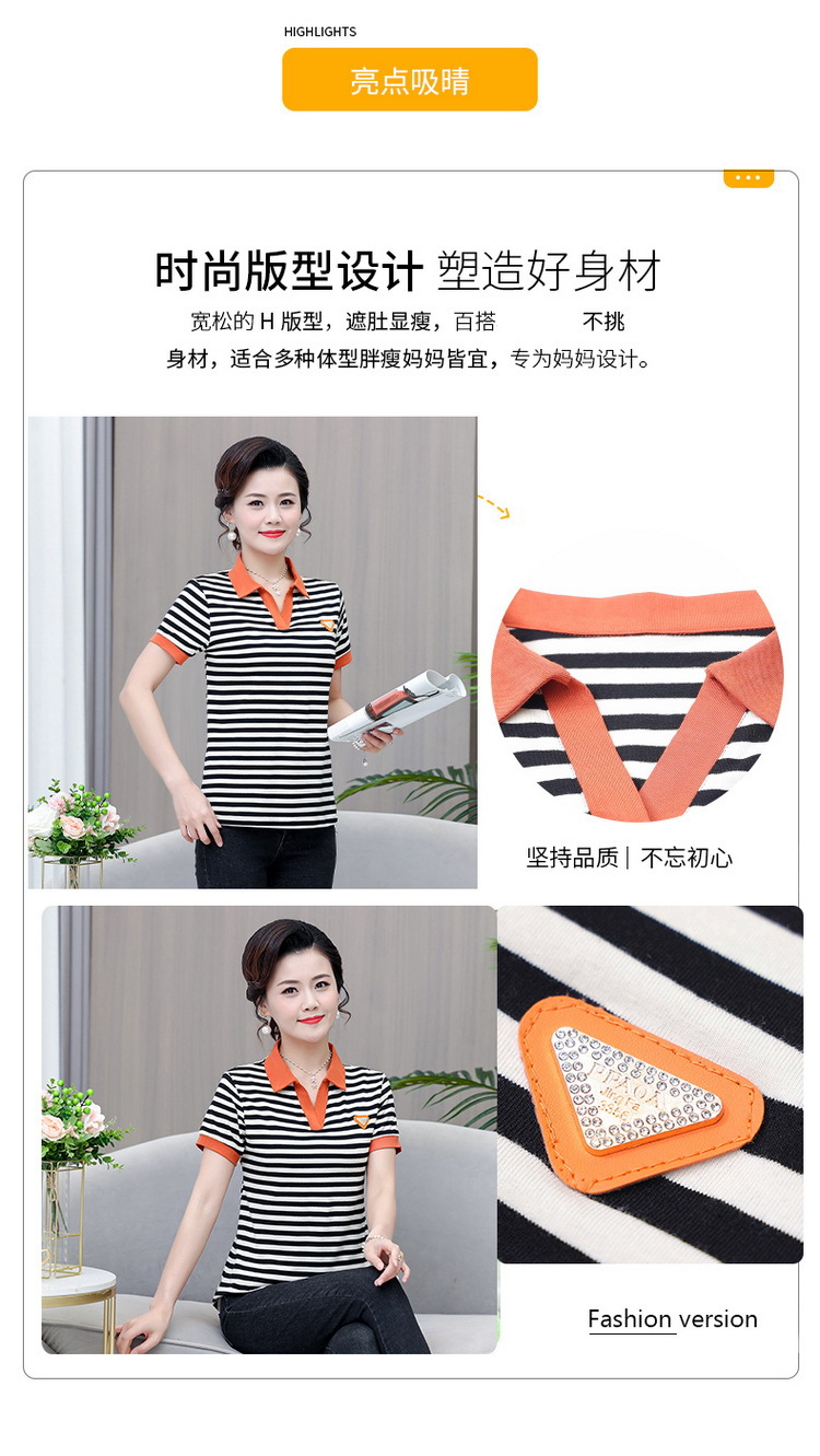 polo领t恤女短袖棉质翻领条纹上衣2023新款中年妈妈夏装洋气体桖