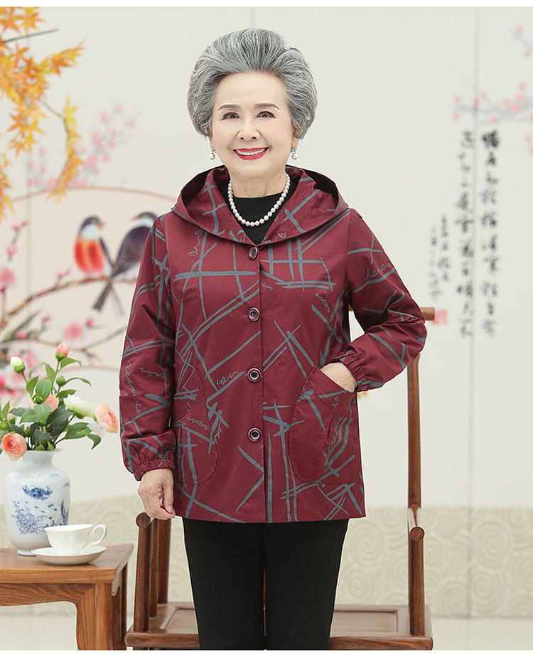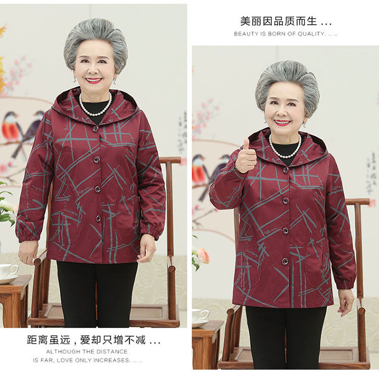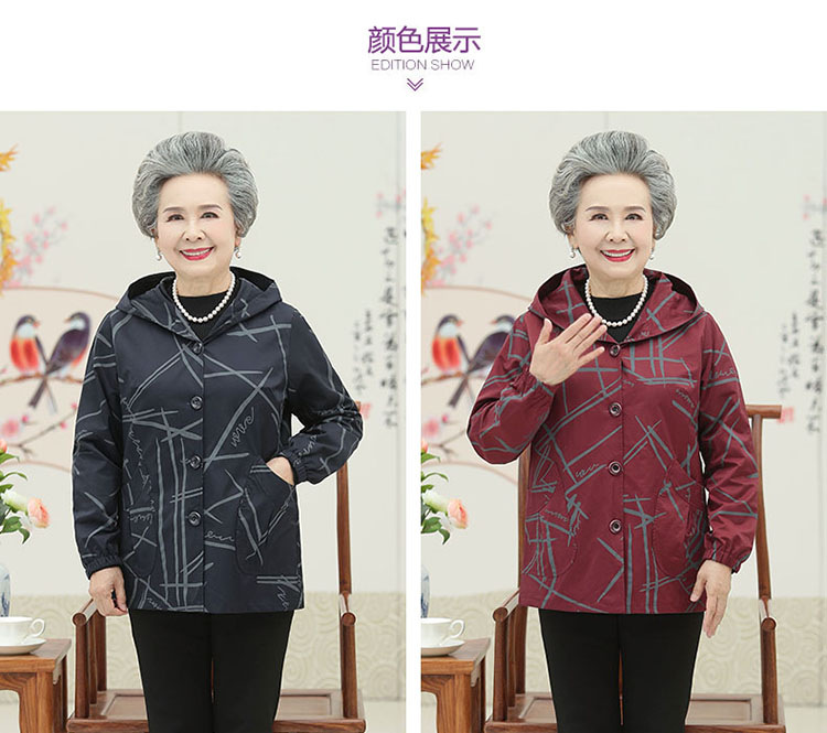 奶奶装春秋薄款风衣中老年人女妈妈春装宽松外套夹克太太老人衣服
