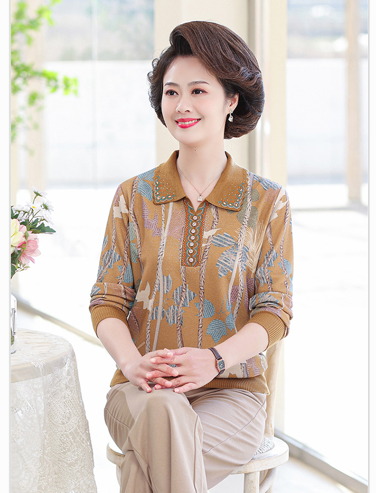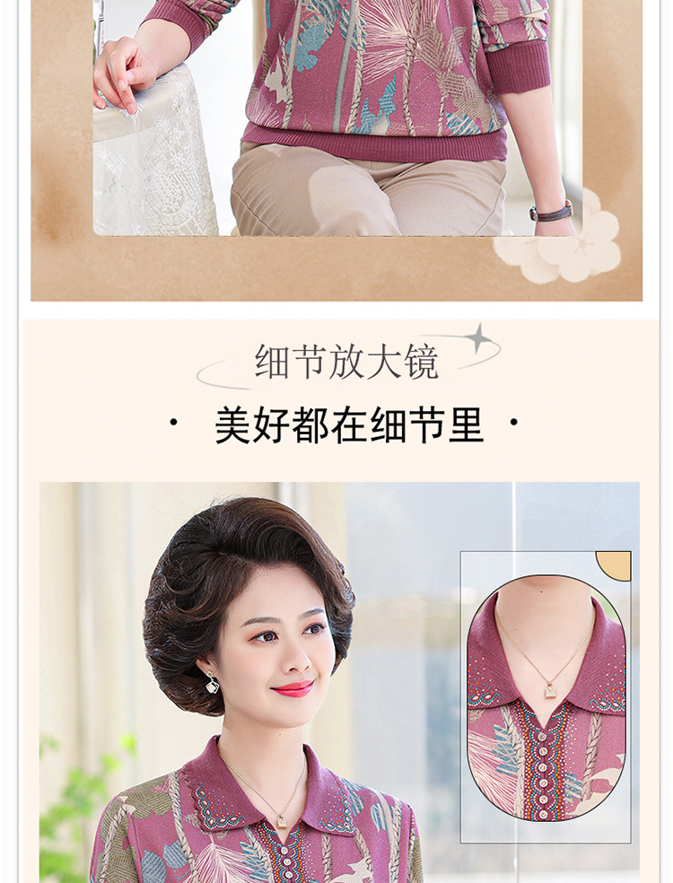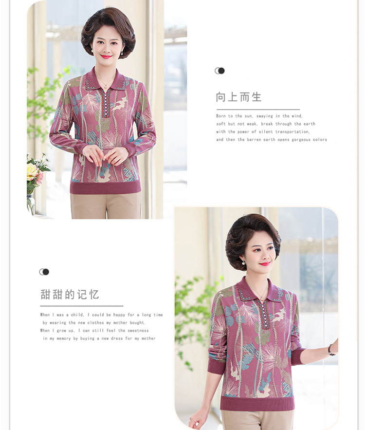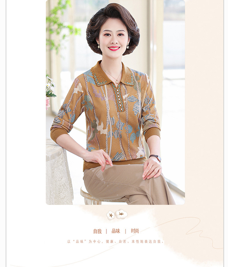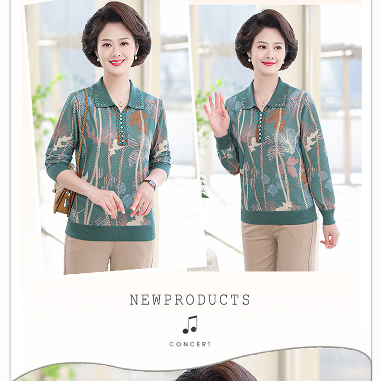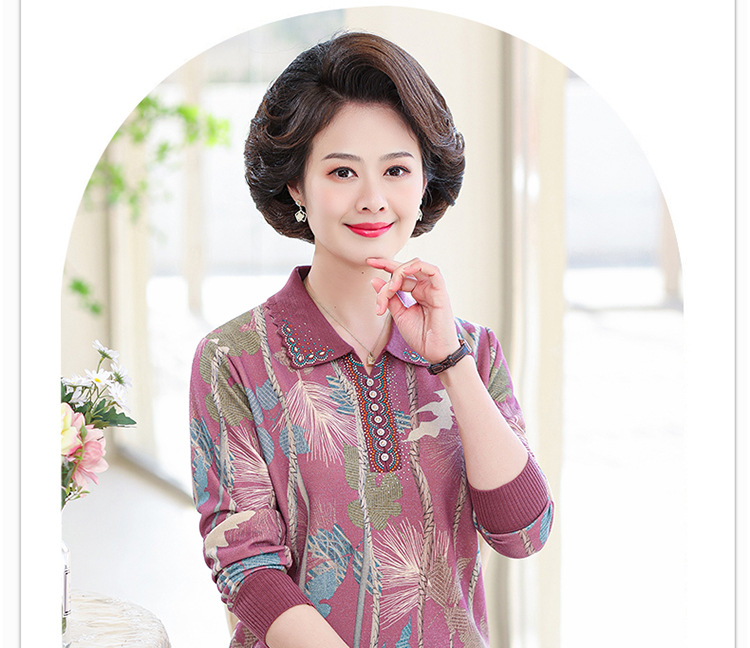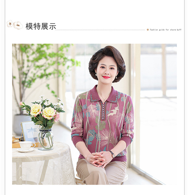 妈妈秋装长袖针织衫50岁中年妇女洋气T恤上衣中老年女装翻领小衫