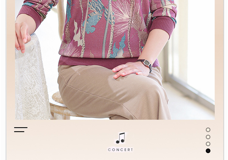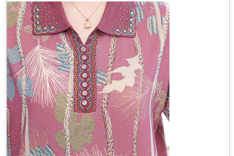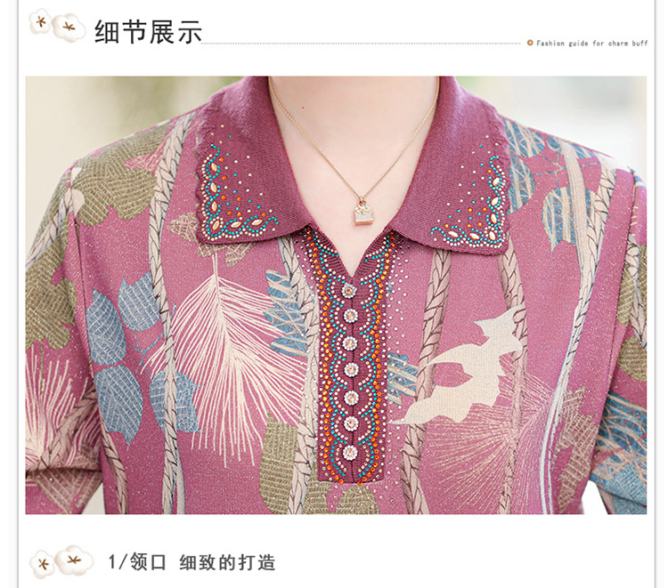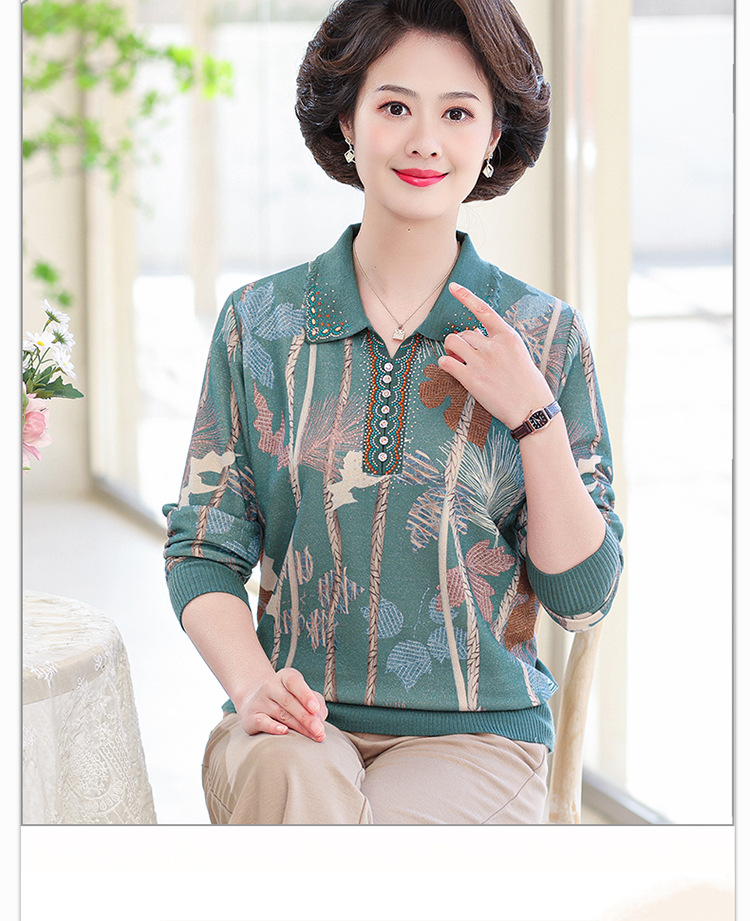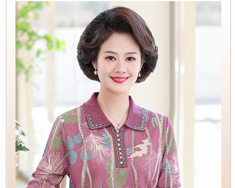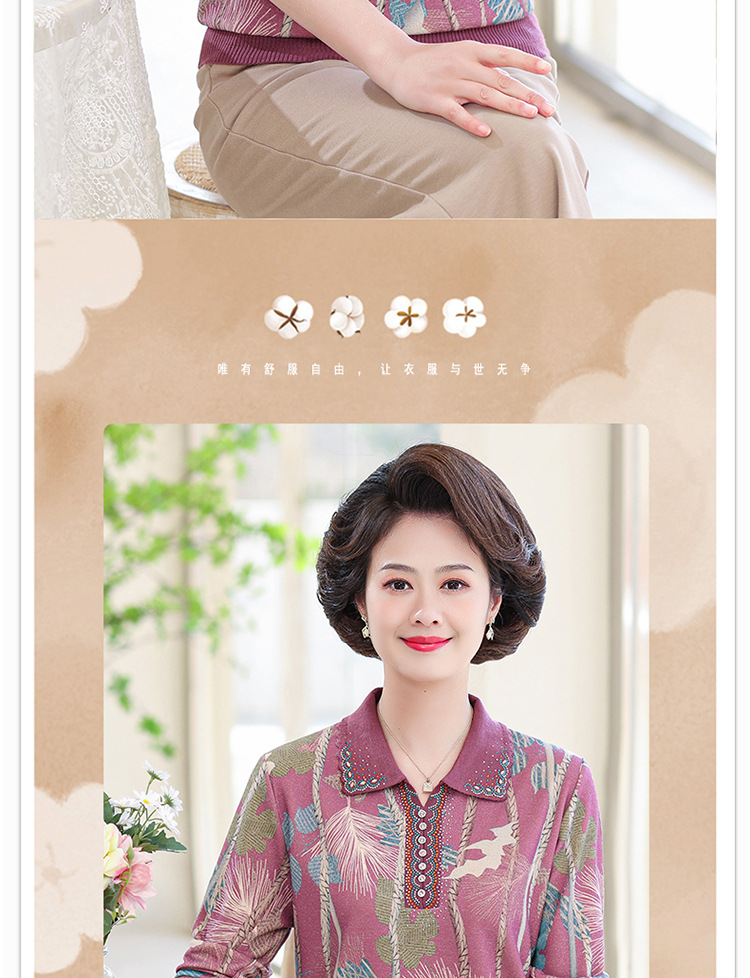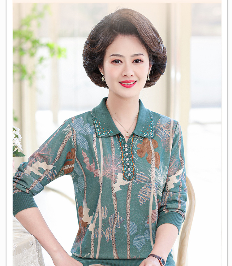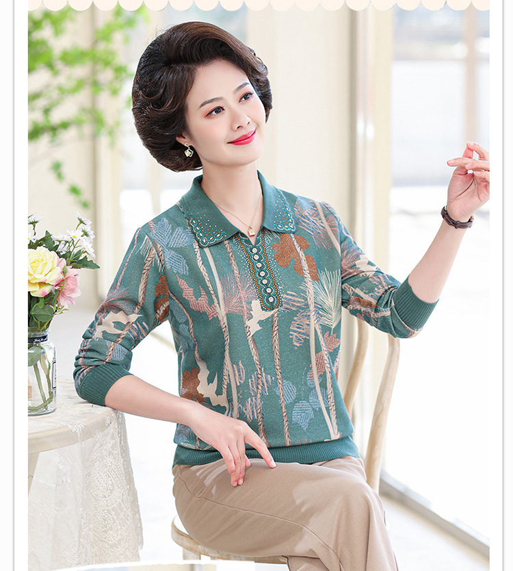 妈妈秋装长袖针织衫50岁中年妇女洋气T恤上衣中老年女装翻领小衫