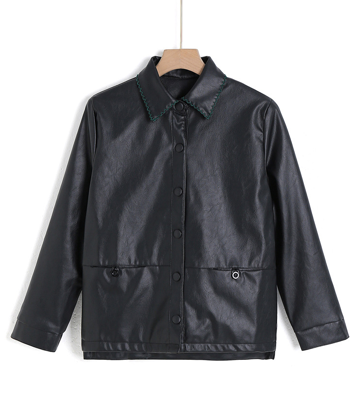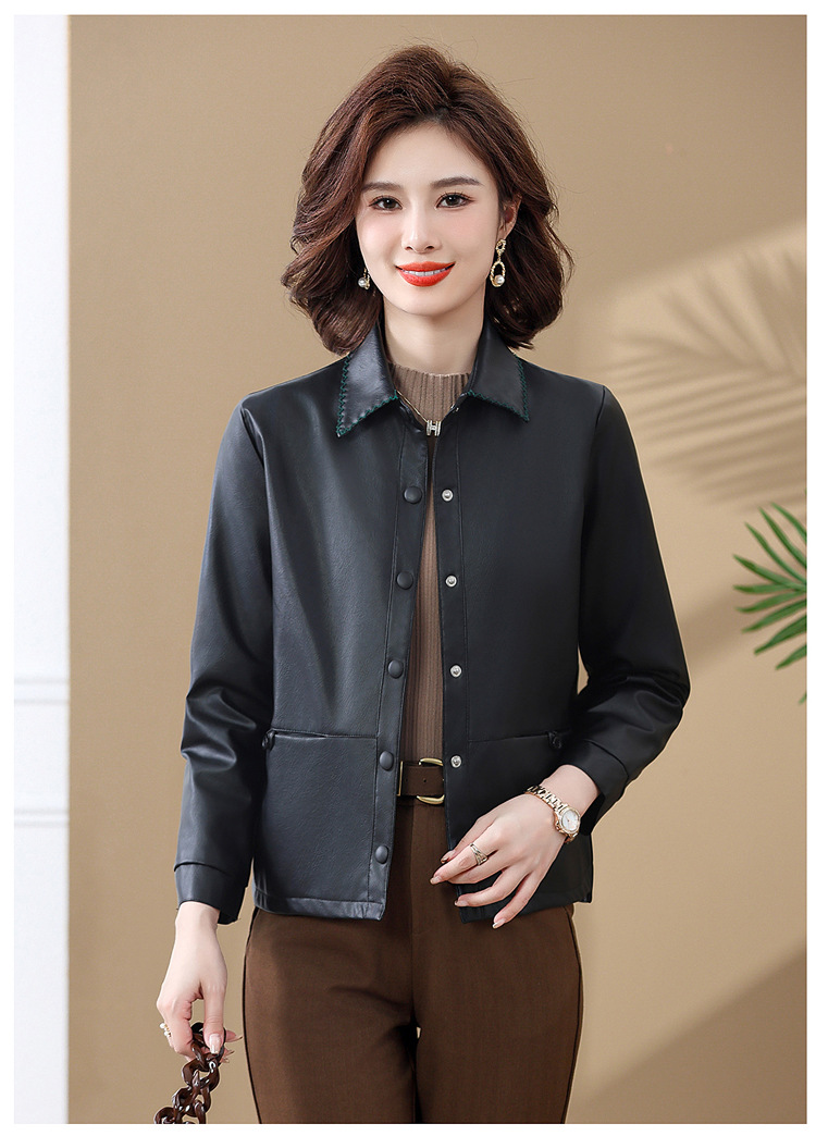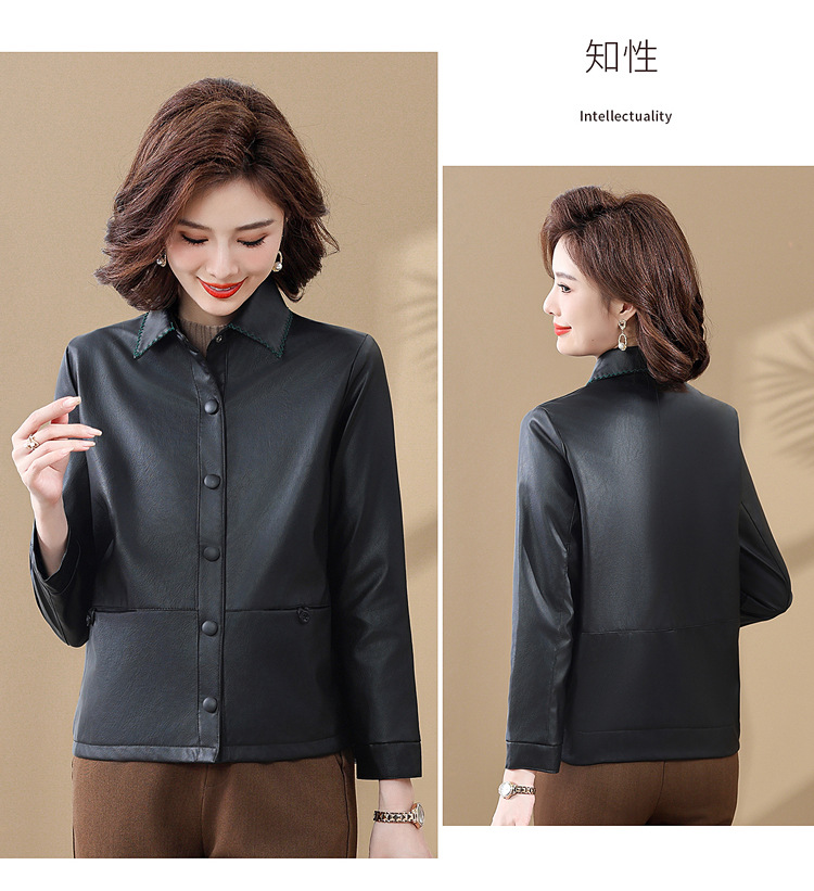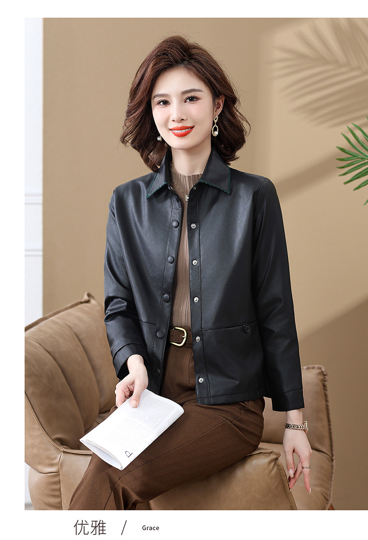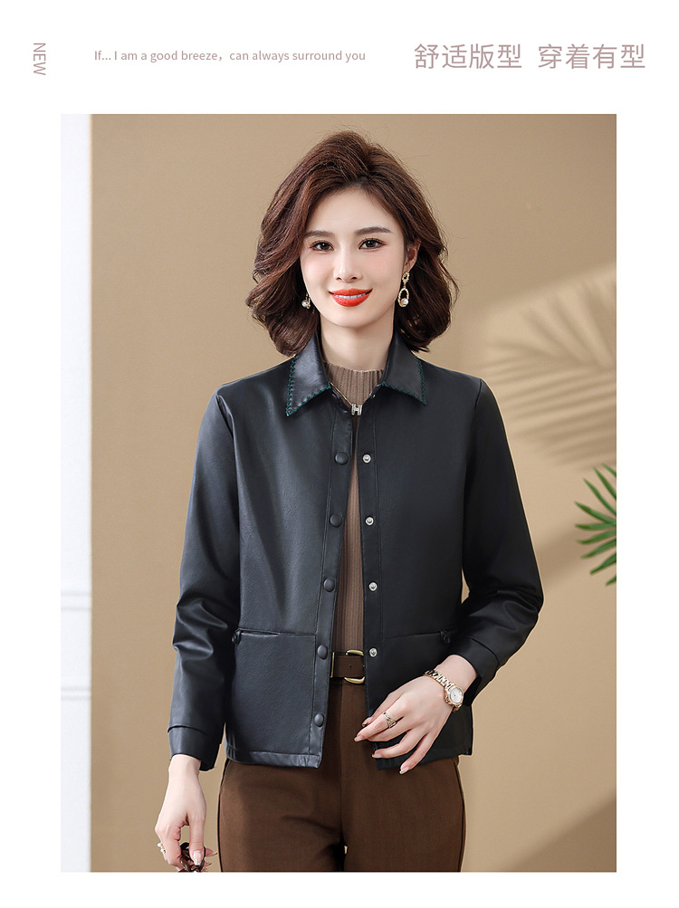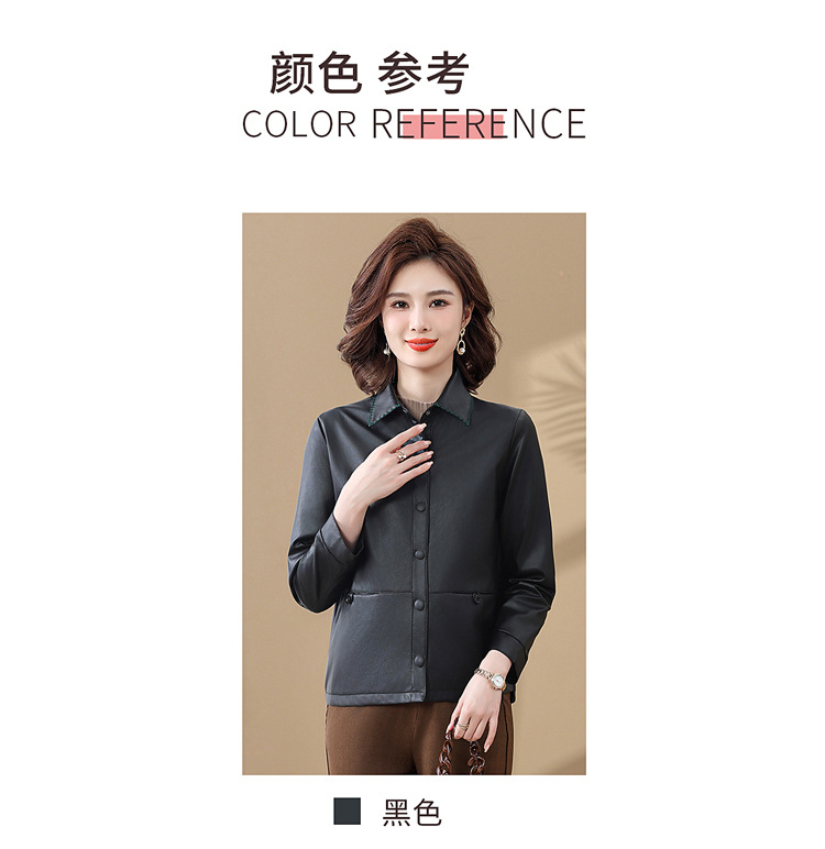 新款小个子妈妈春秋pu皮衣短款洋气外套40-50岁中年女士翻领夹克