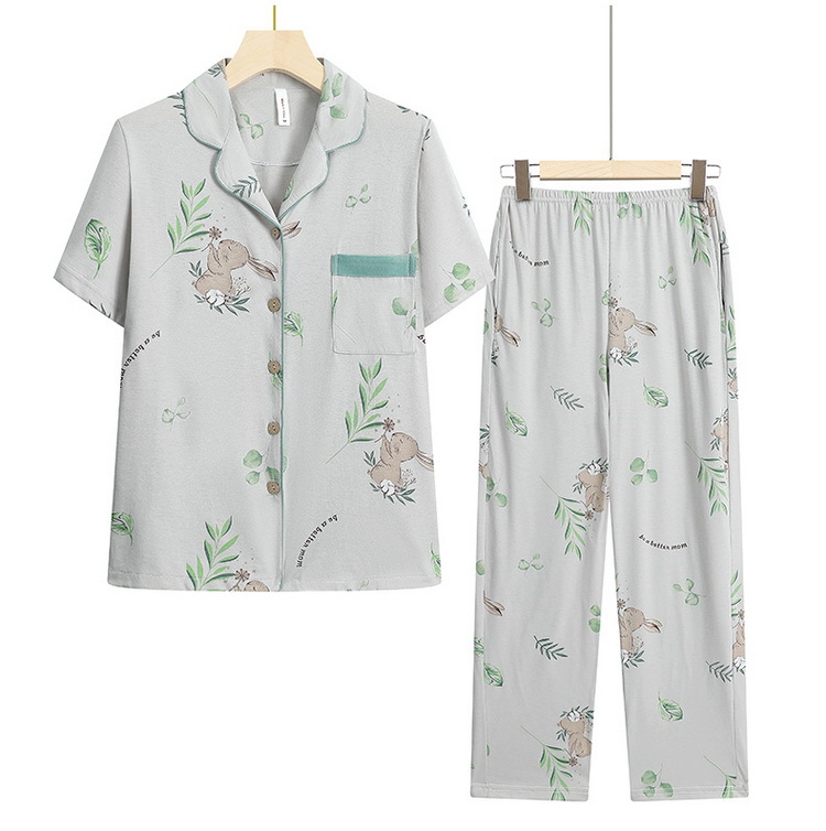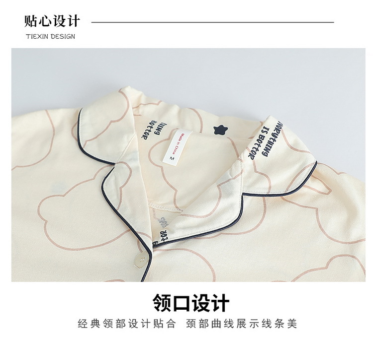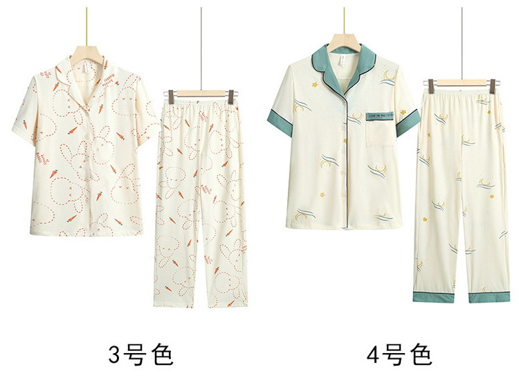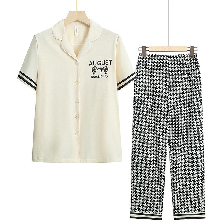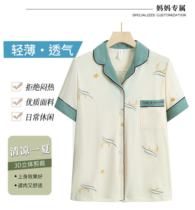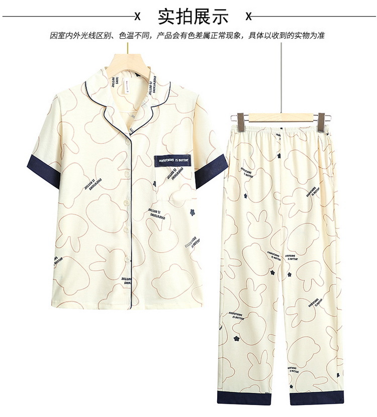 夏季新款短袖翻领睡衣女士纯棉清新年轻妈妈可外穿全棉家居服套装