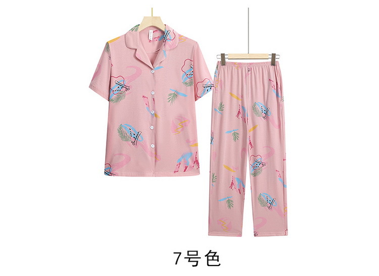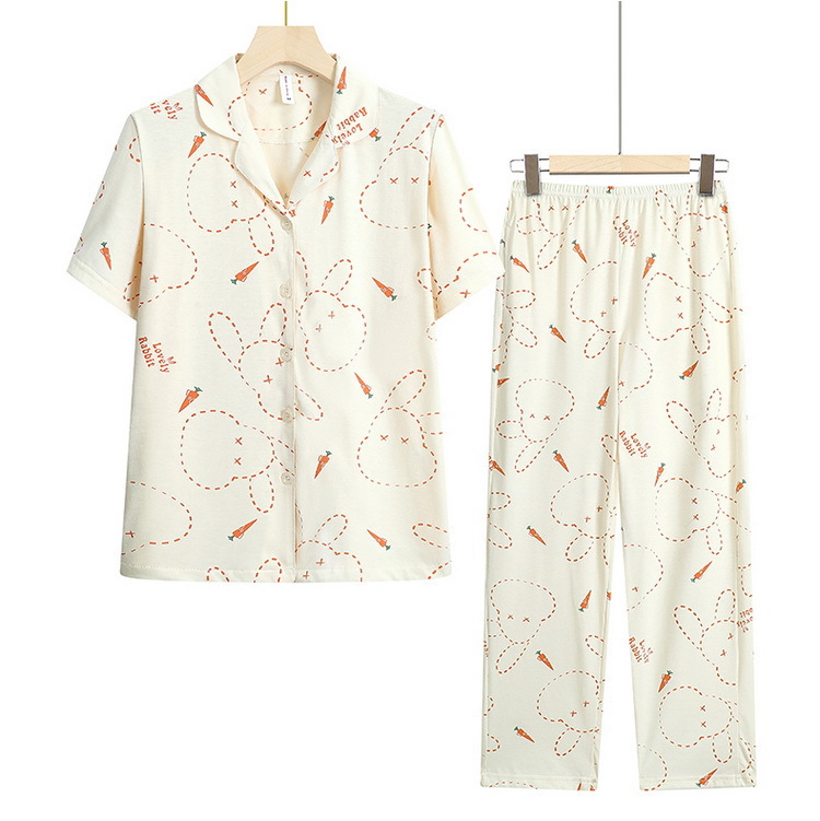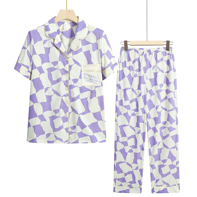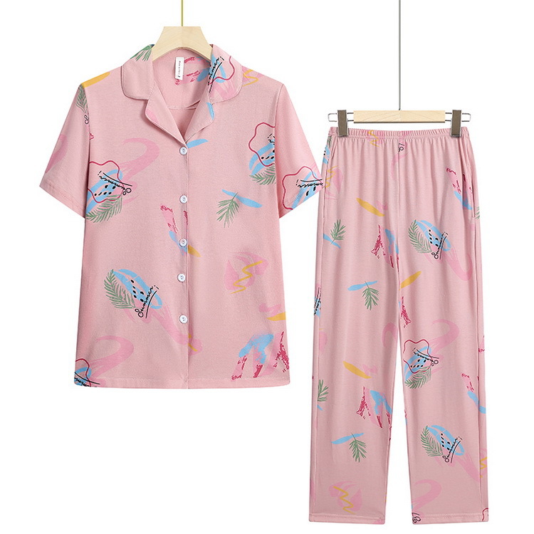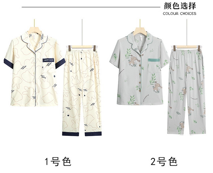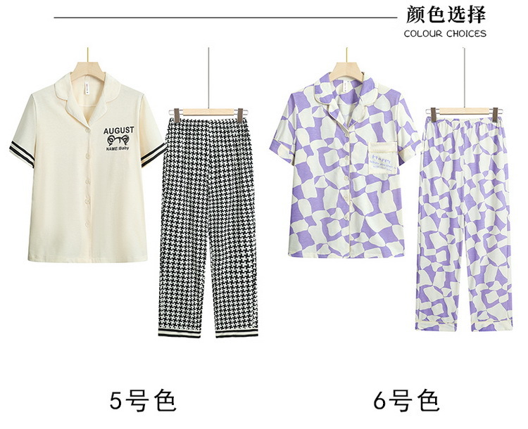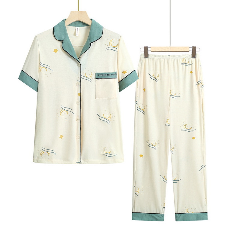 夏季新款短袖翻领睡衣女士纯棉清新年轻妈妈可外穿全棉家居服套装