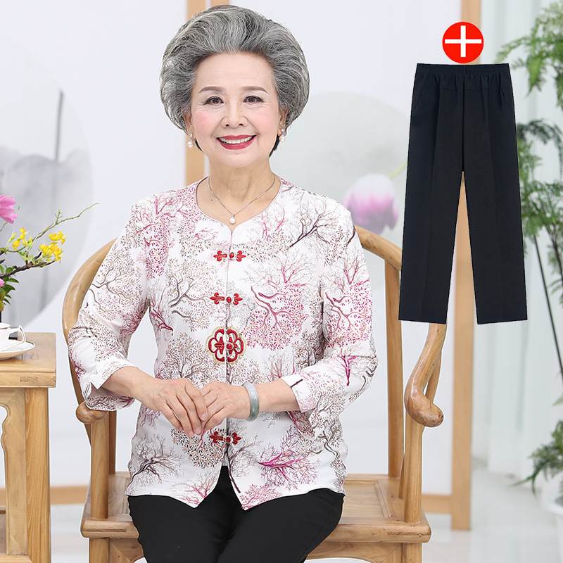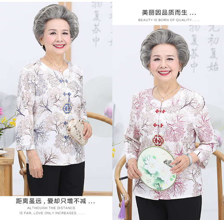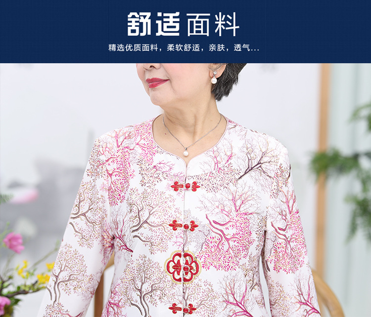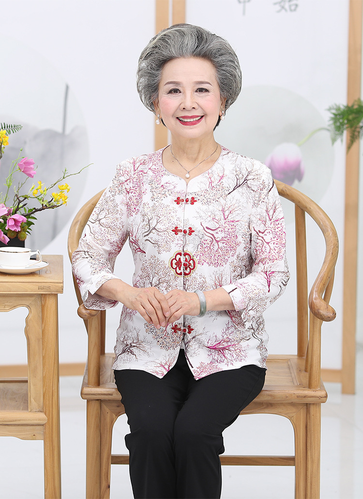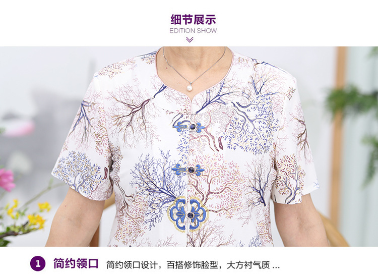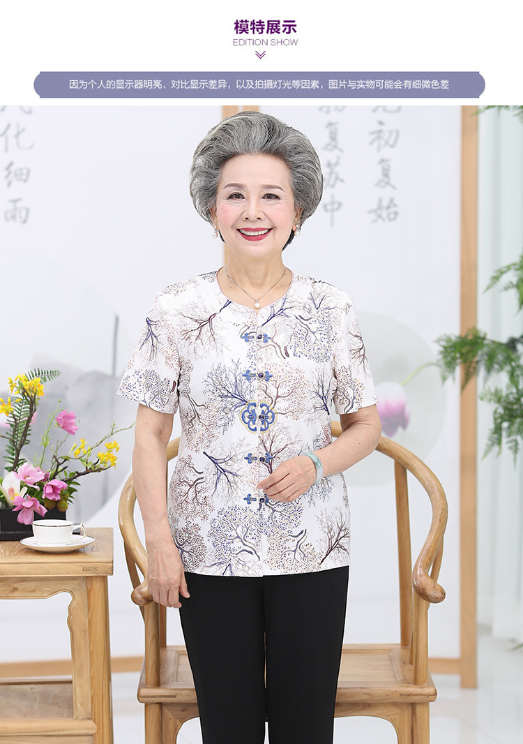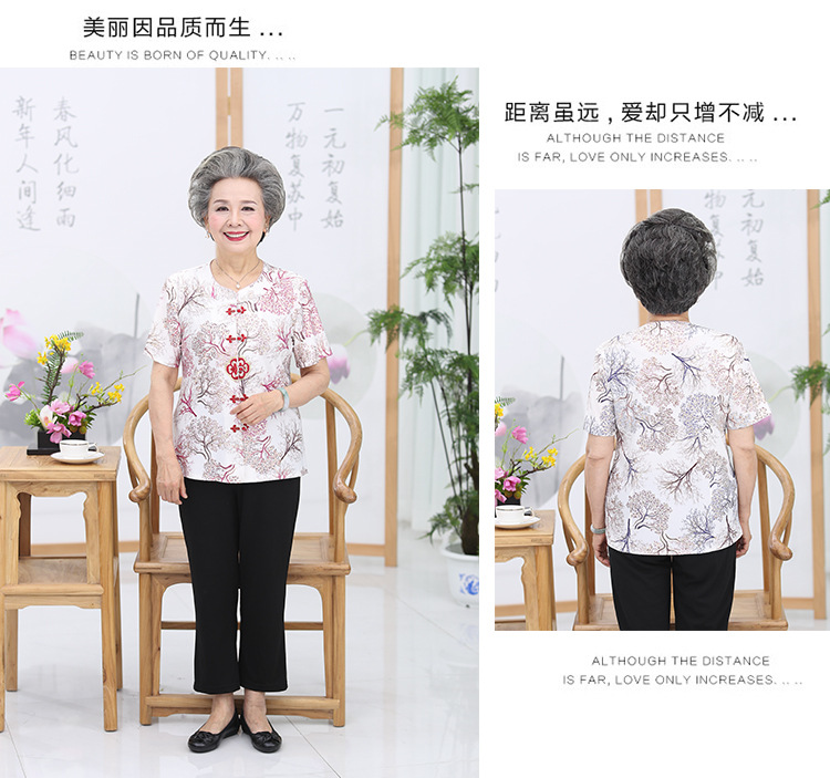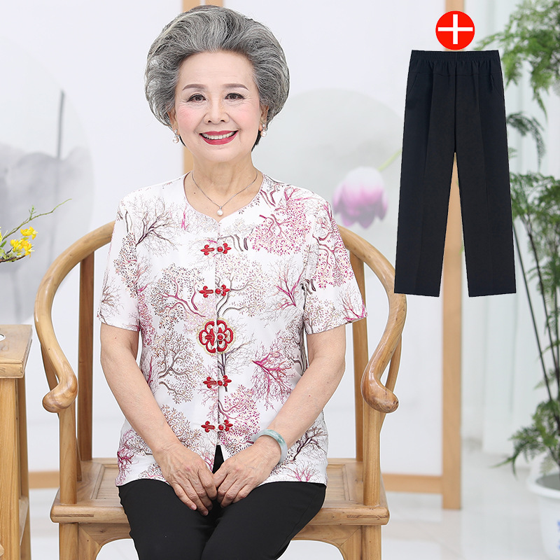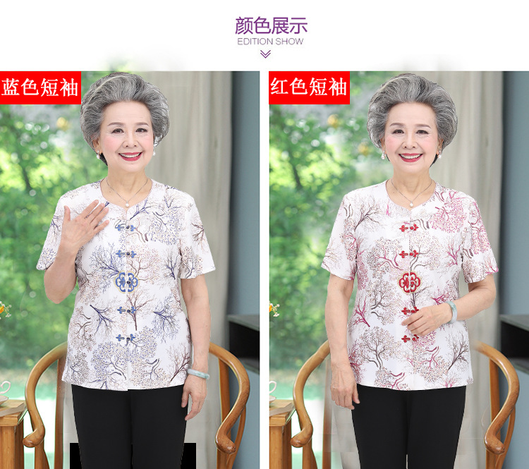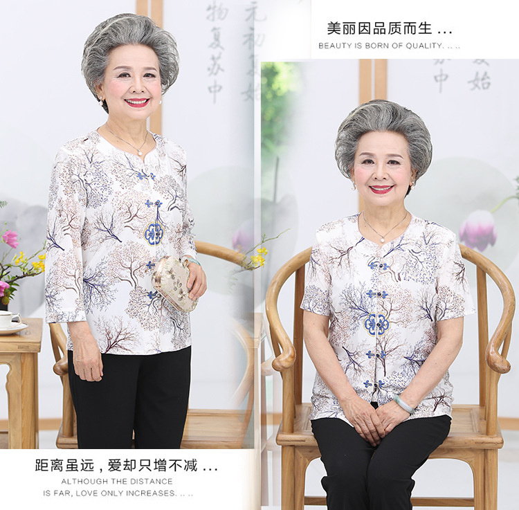 冰丝奶奶夏季套装中老年人女短袖上衣妈妈装七分袖70岁老太太衣服