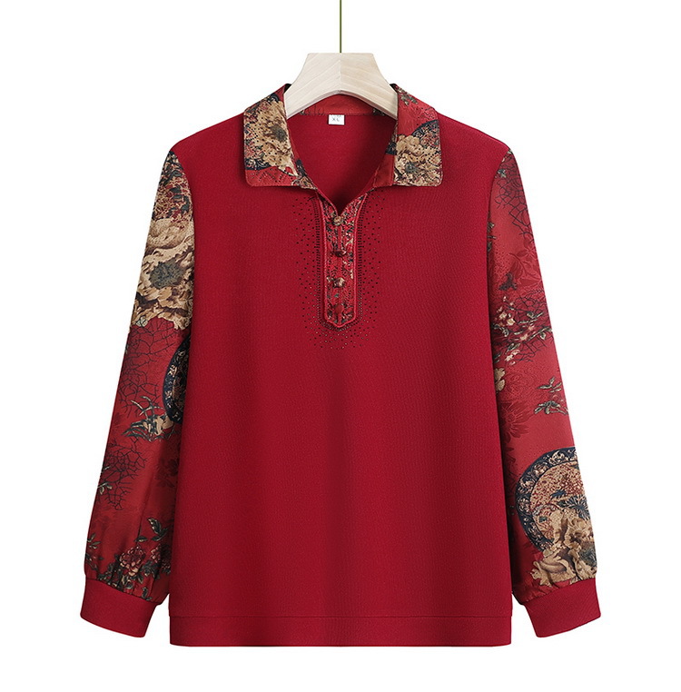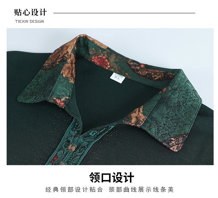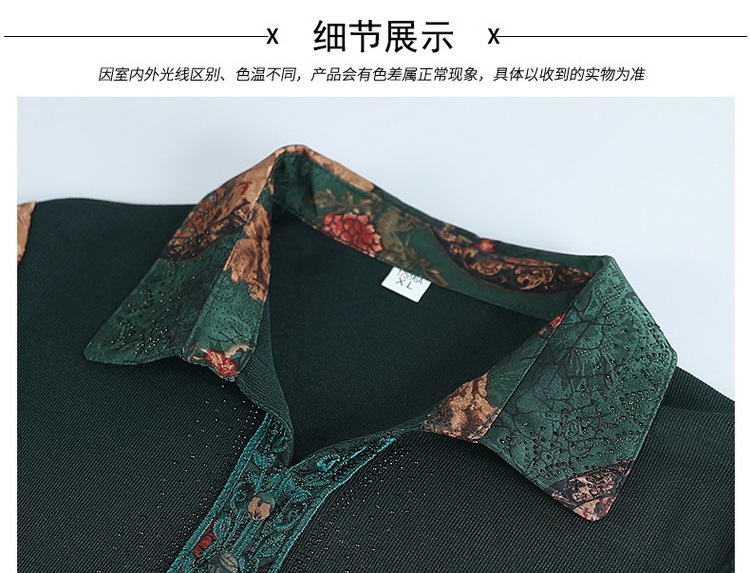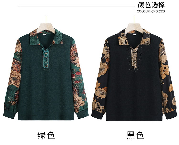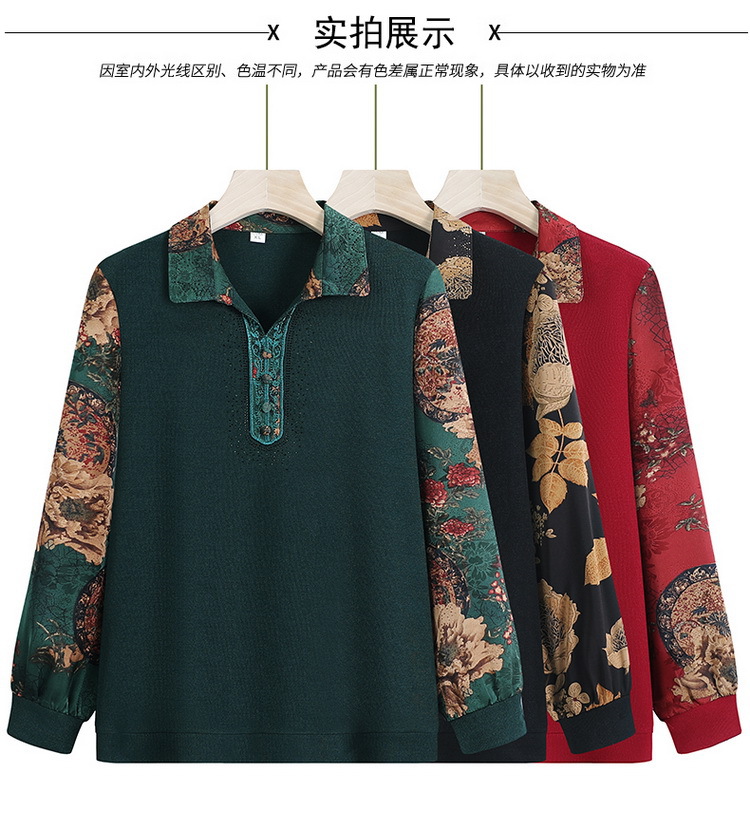 妈妈春装新款洋气上衣50岁中年妇女翻领长袖t恤针织拼接打底小衫