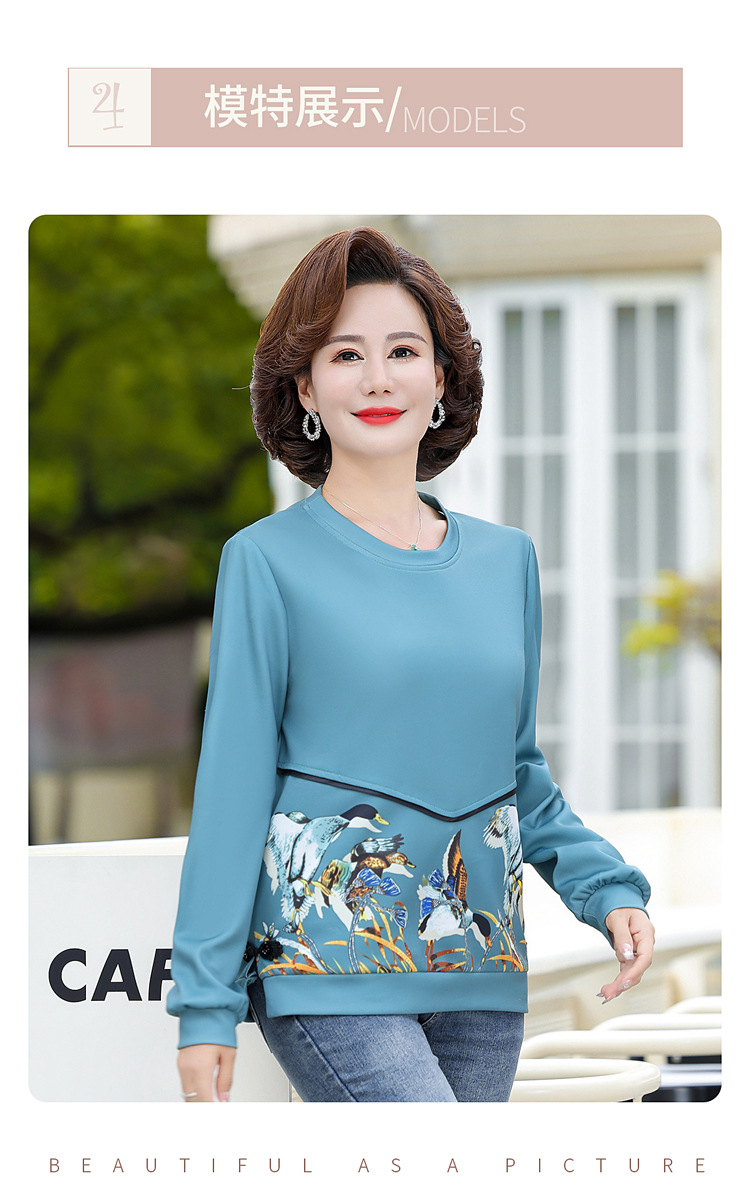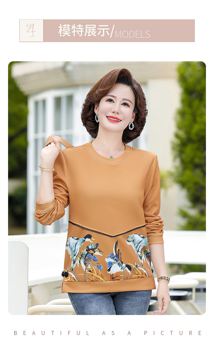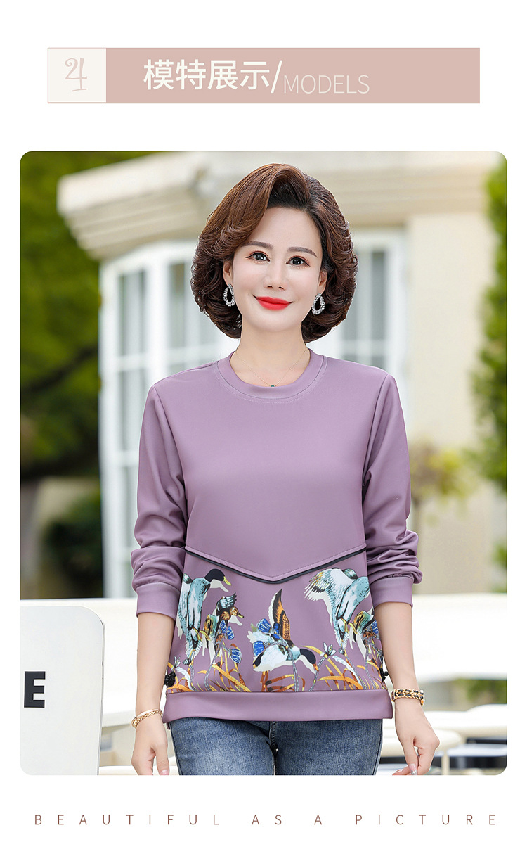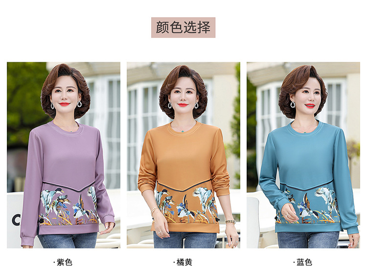中老年卫衣女春秋装2023新款时尚圆领妈妈休闲短款打底衫T恤上衣