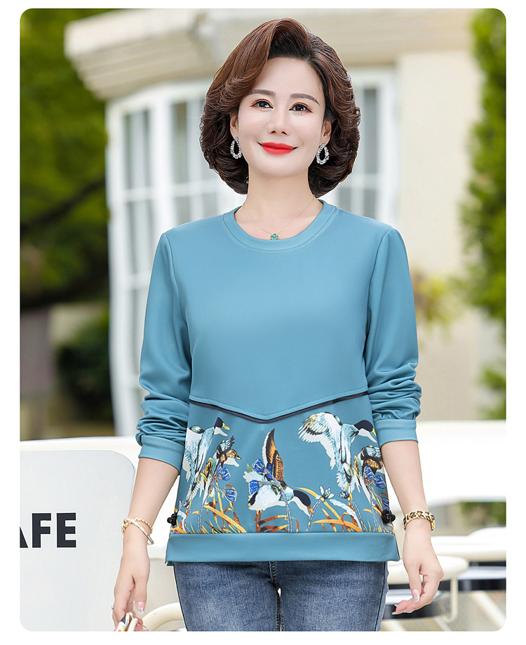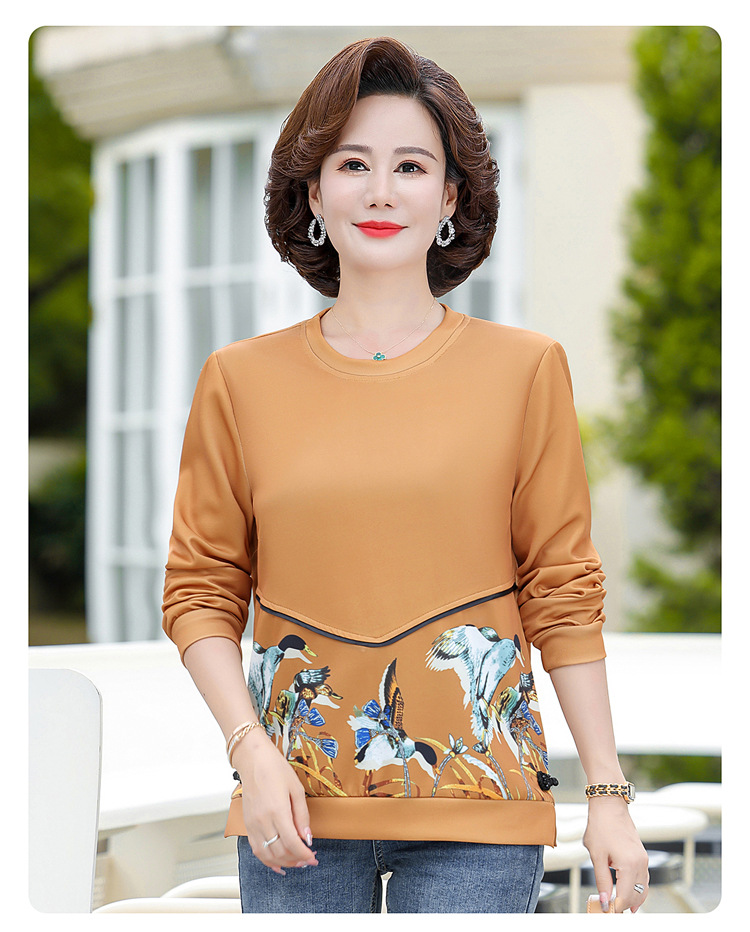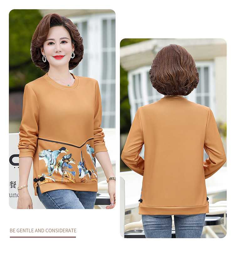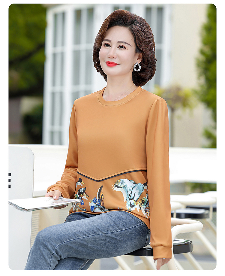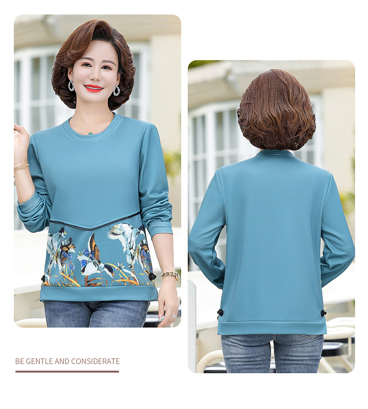 中老年卫衣女春秋装2023新款时尚圆领妈妈休闲短款打底衫T恤上衣