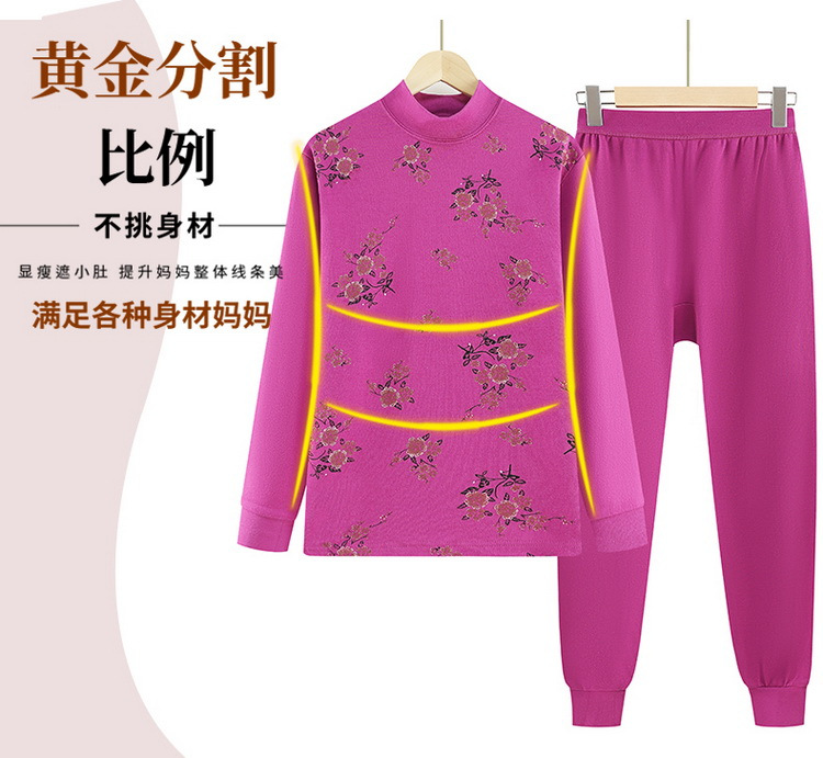 中老年人秋冬纯棉薄款保暖内衣全棉秋衣秋裤女套装老人妈妈棉毛衫