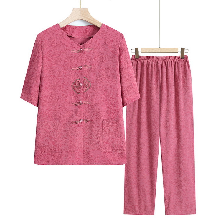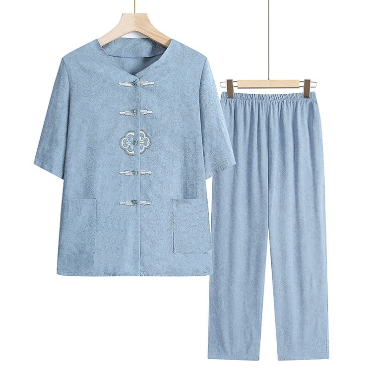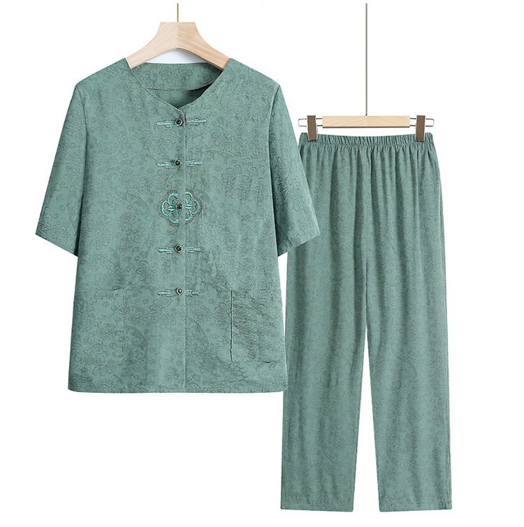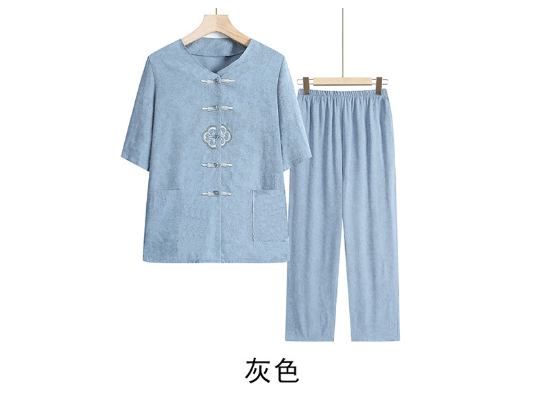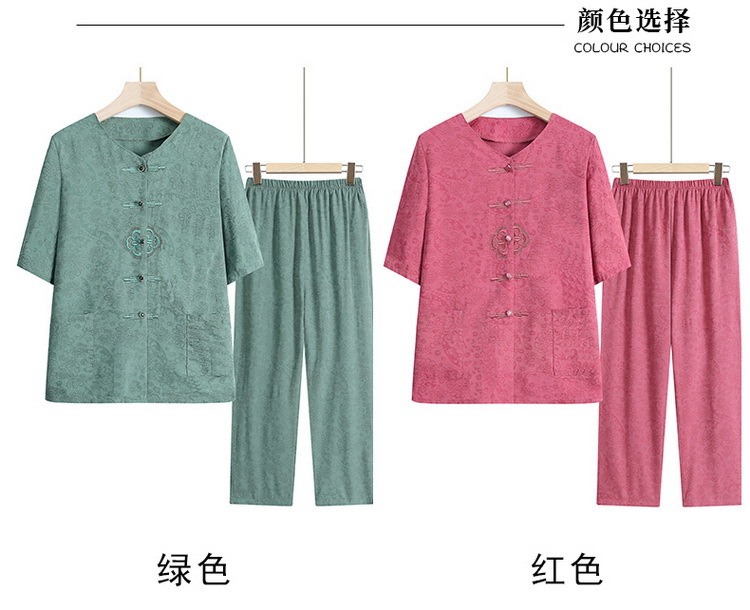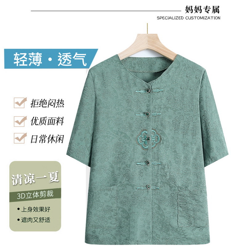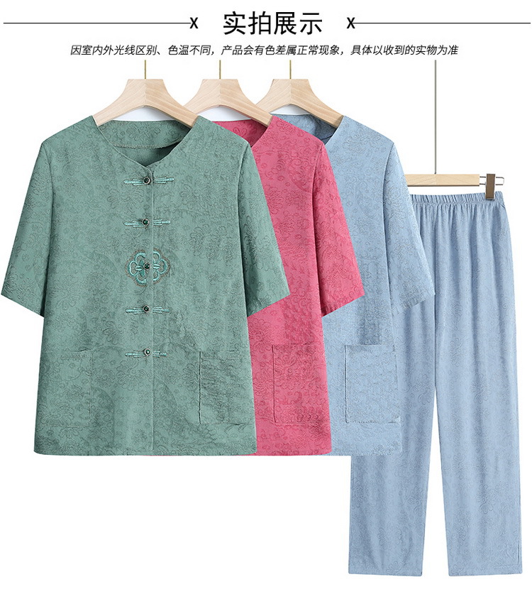 中老年人女奶奶夏季短袖开衫棉麻套装老太太70岁80妈妈衬衣两件套