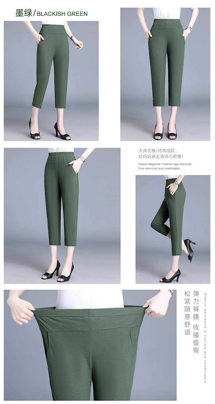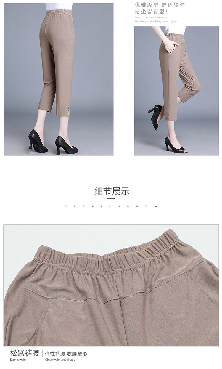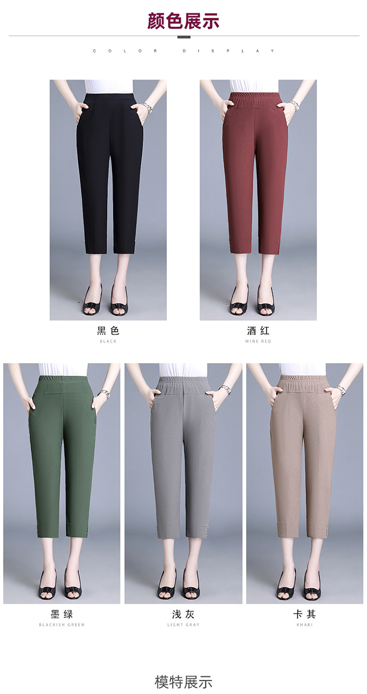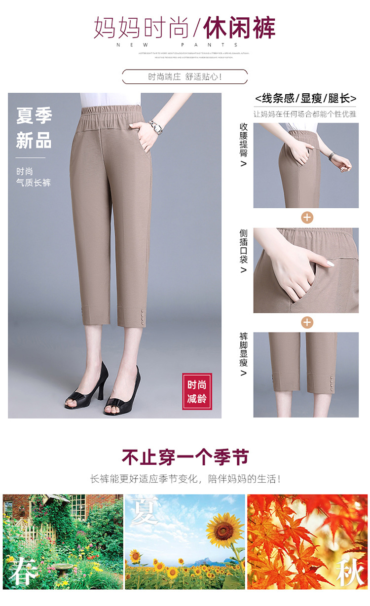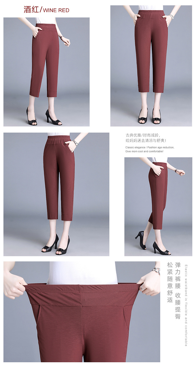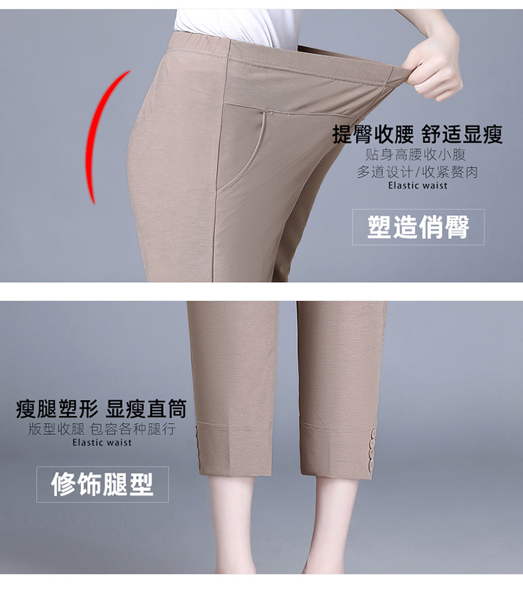 妈妈夏季纯色薄款七分裤显瘦中老年女裤老年人松紧高腰弹力休闲裤