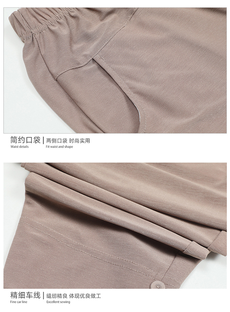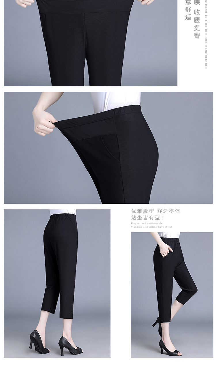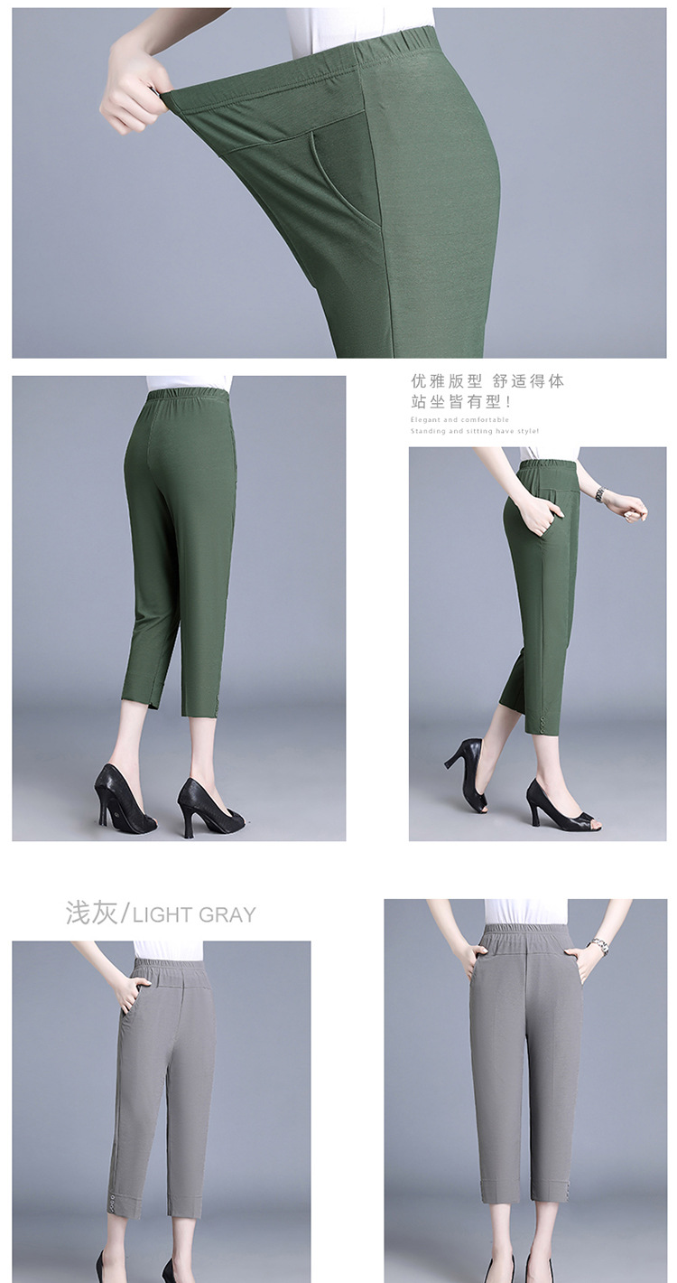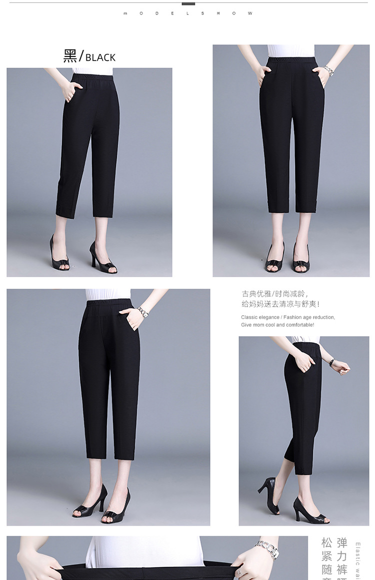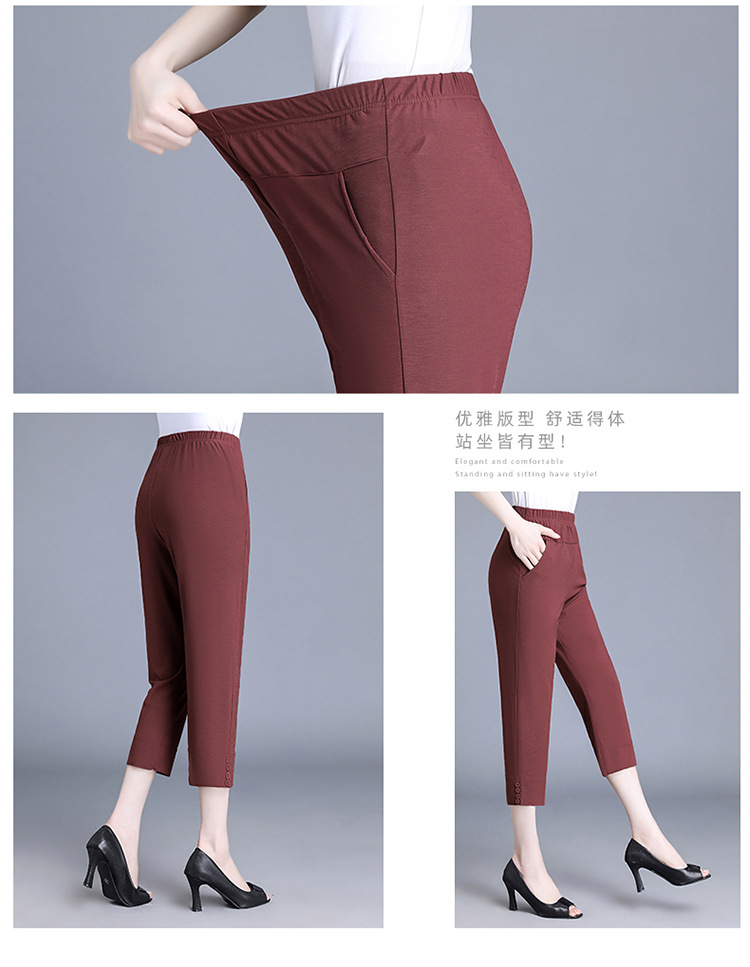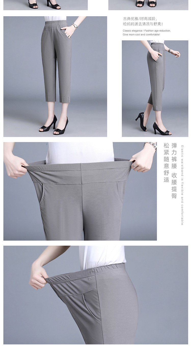 妈妈夏季纯色薄款七分裤显瘦中老年女裤老年人松紧高腰弹力休闲裤