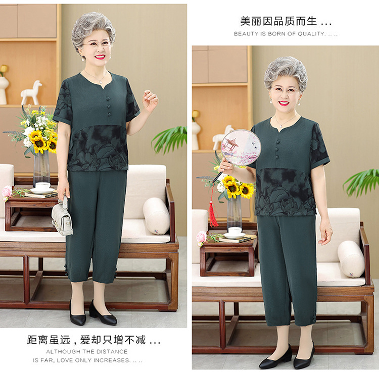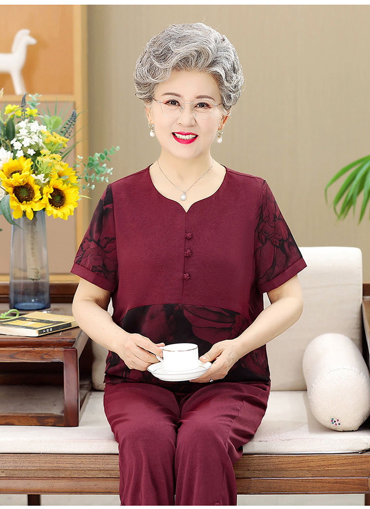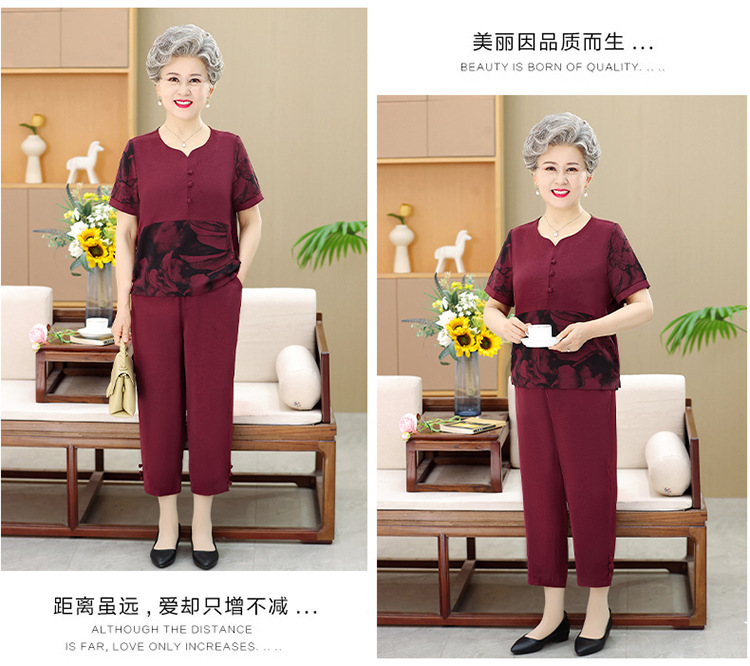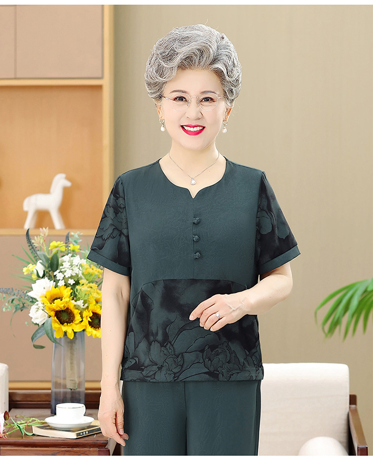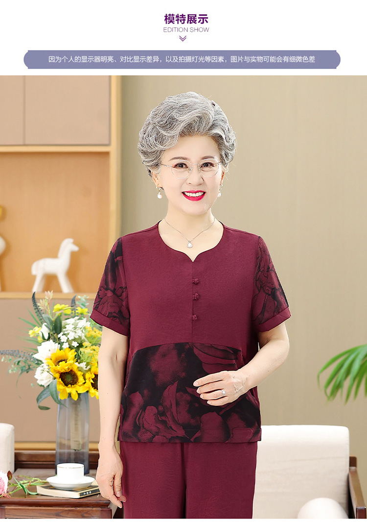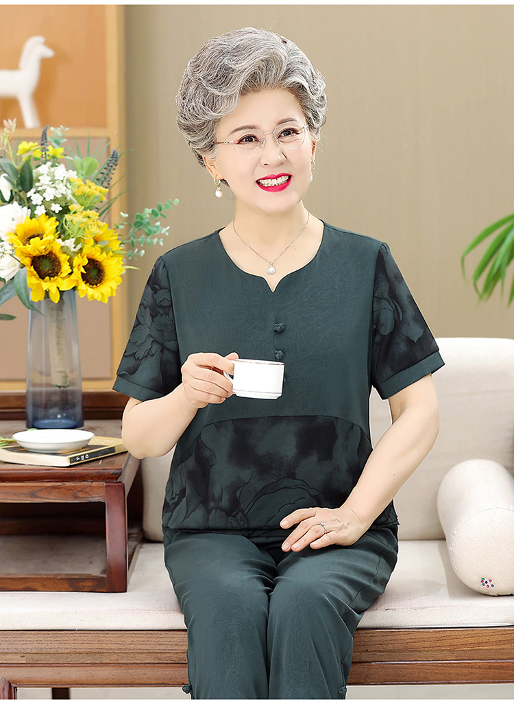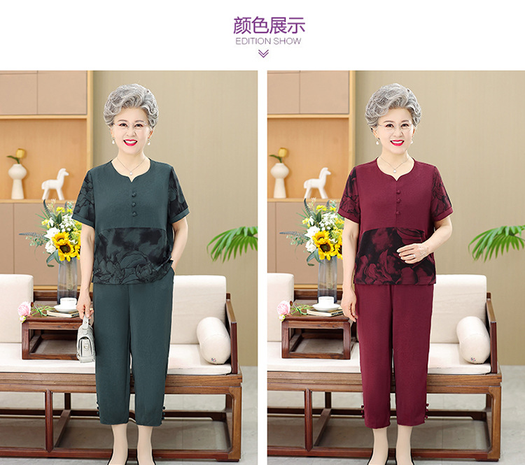 中老年女妈妈夏装短袖套装奶奶洋气T恤新款老太太休闲宽松两件套