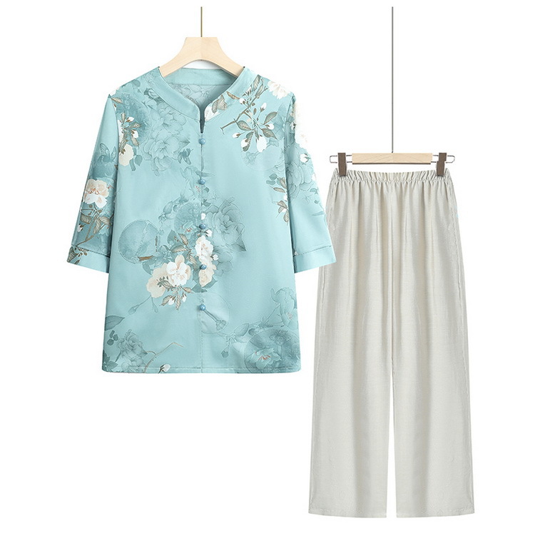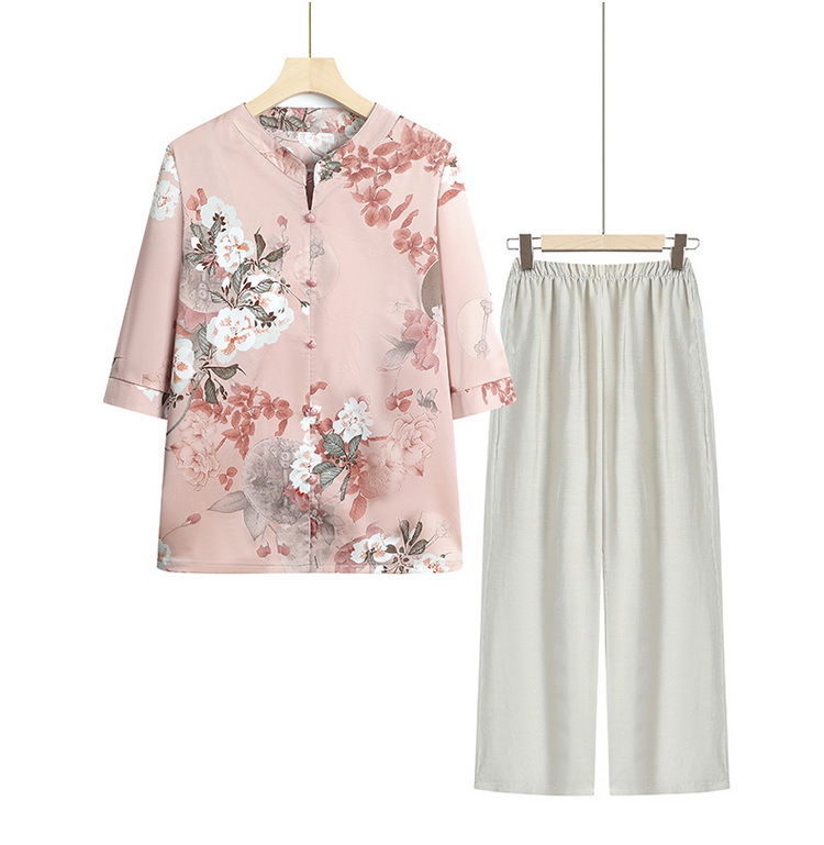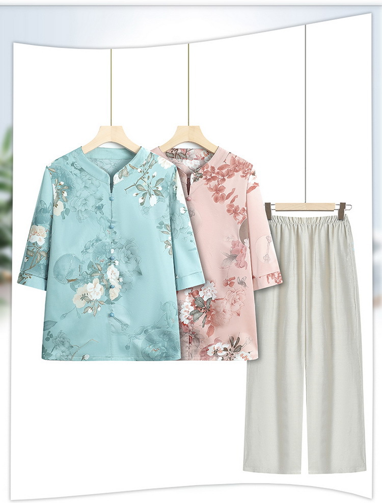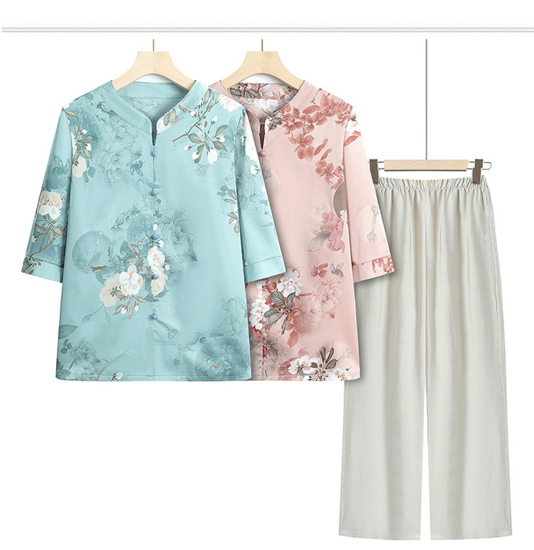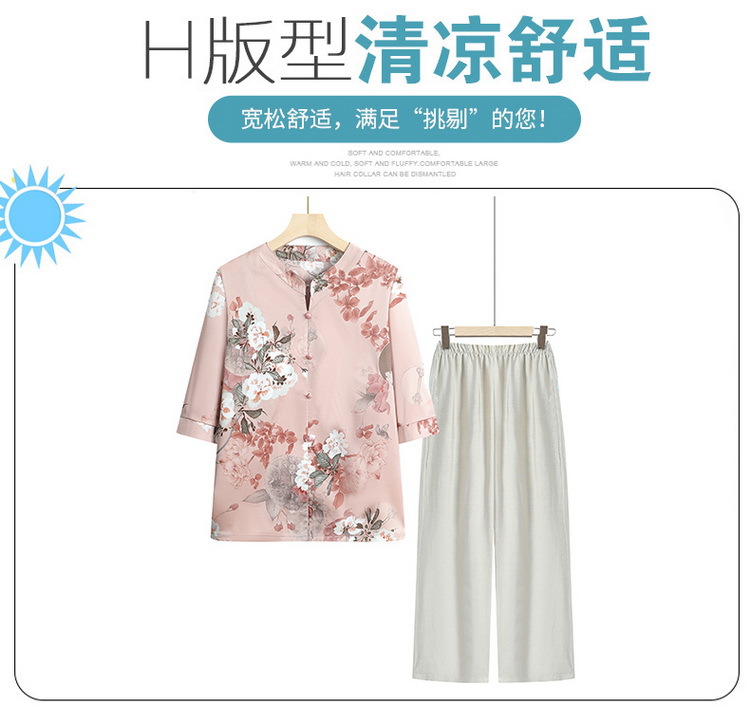 中老年人夏装衬衫女奶奶夏季中袖两件套妈妈新款开衫上衣薄款套装