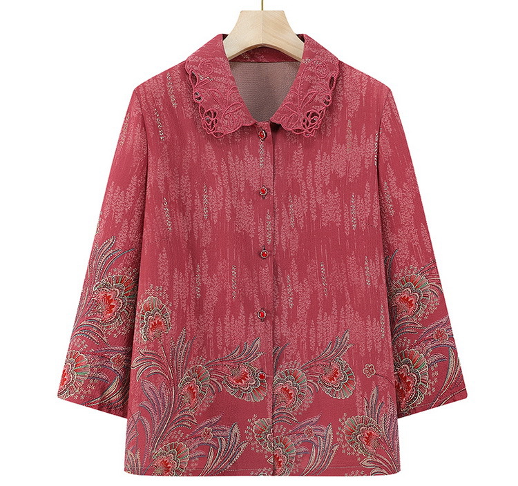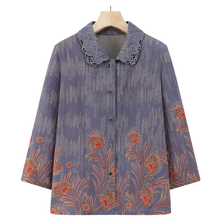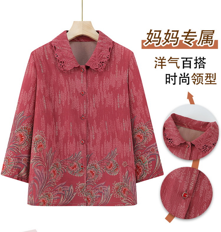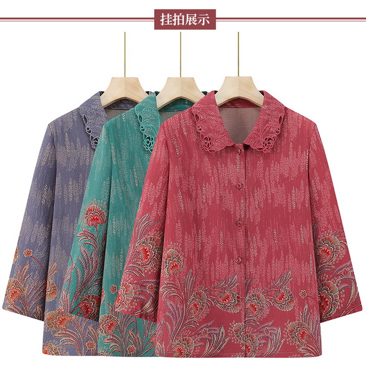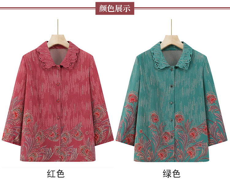 中老年人夏季女衬衫奶奶夏装薄款翻领衬衣妈妈七分袖上衣服老太太
