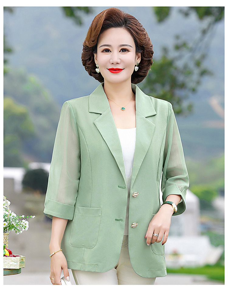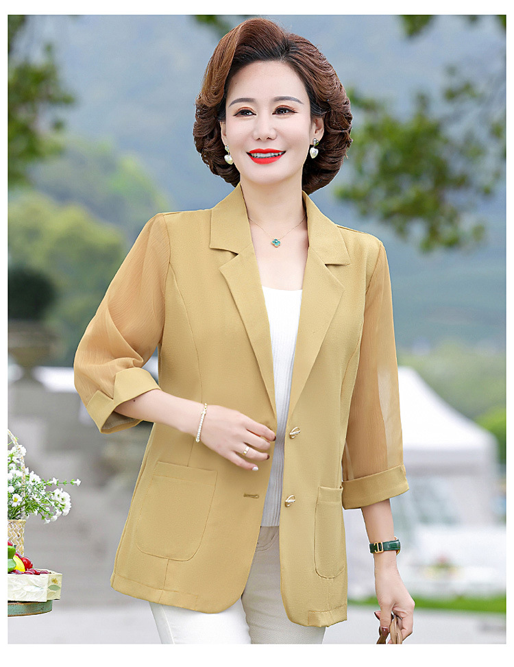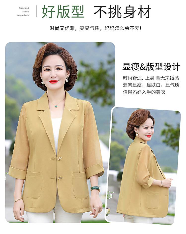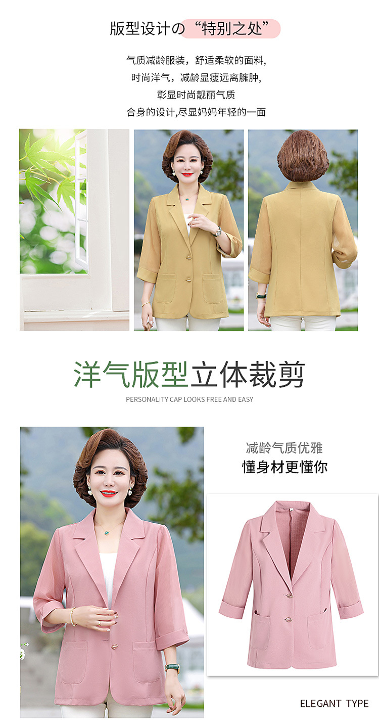 中年妈妈夏装外套短款小西装上衣新款中老年女装七分袖防晒衣服夏