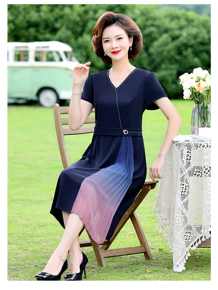妈妈夏季2023新款中年洋气连衣裙50岁中老年女夏装中长款气质裙子