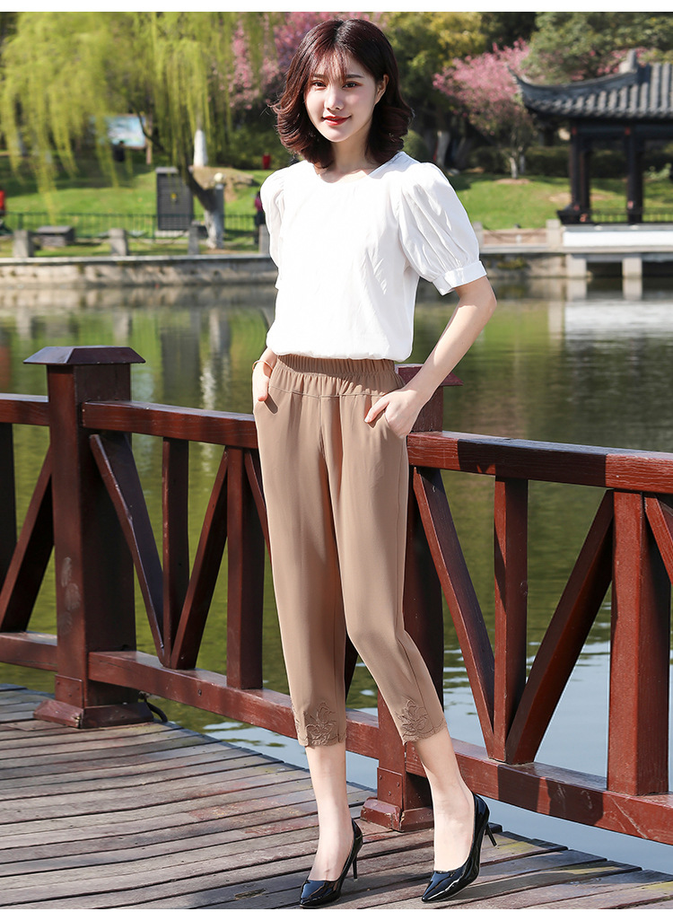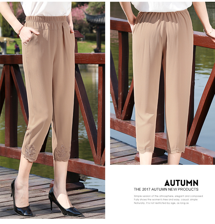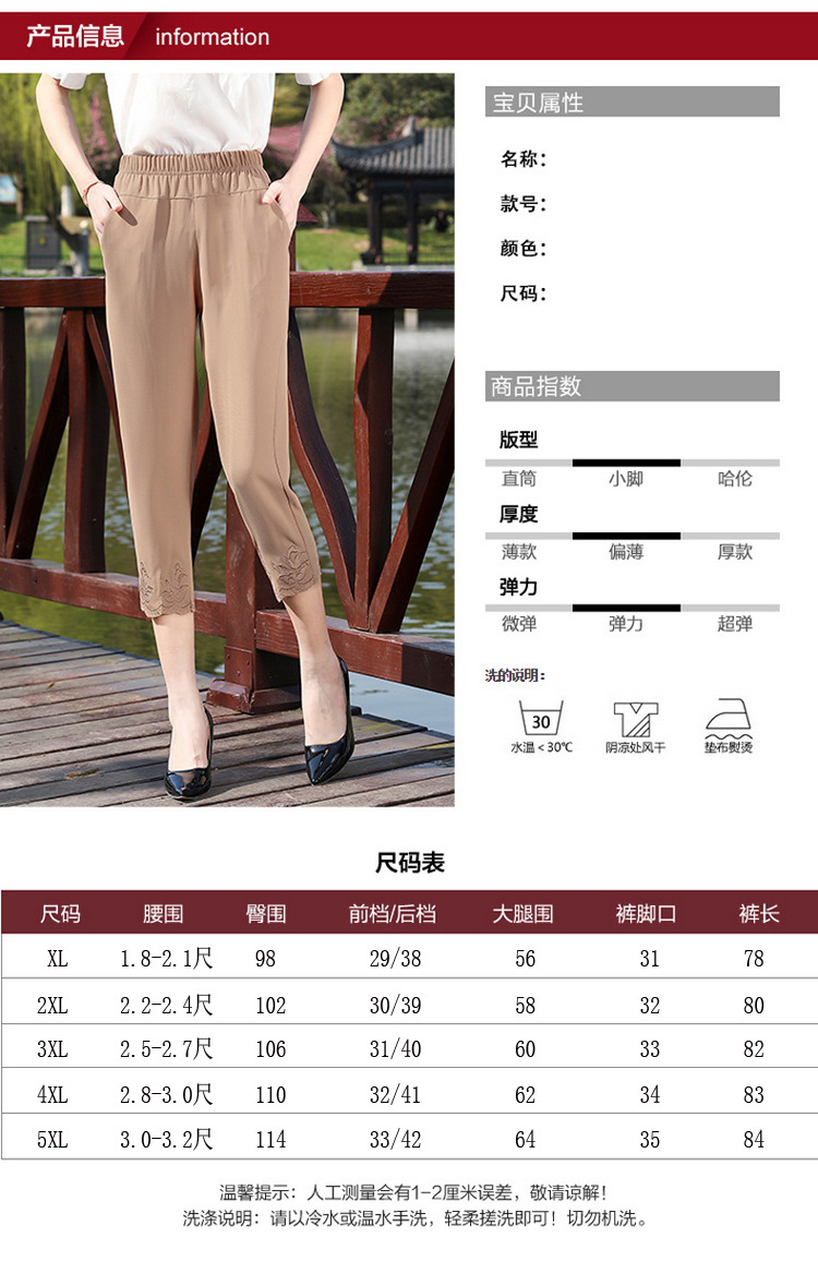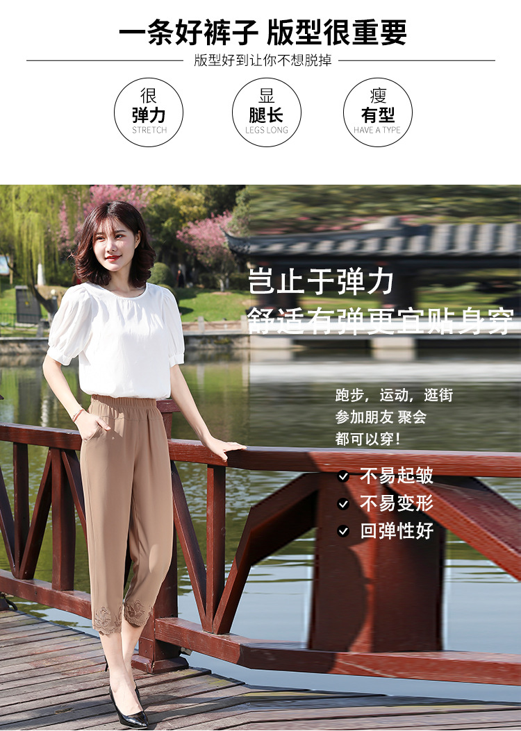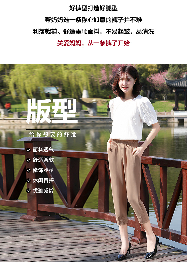 妈妈夏装裤子薄款直筒裤中年妇女弹力七分休闲裤中老年人奶奶裤子