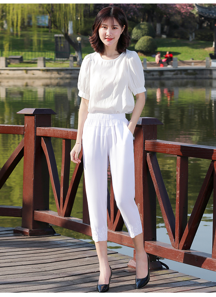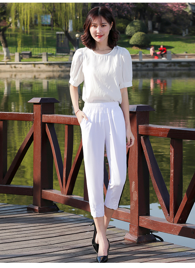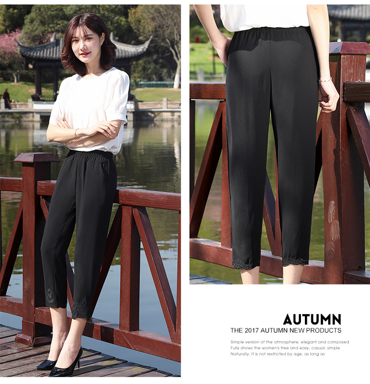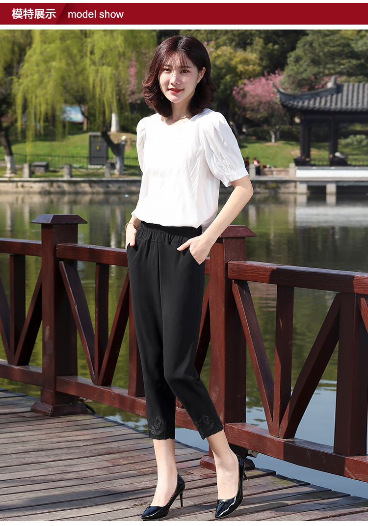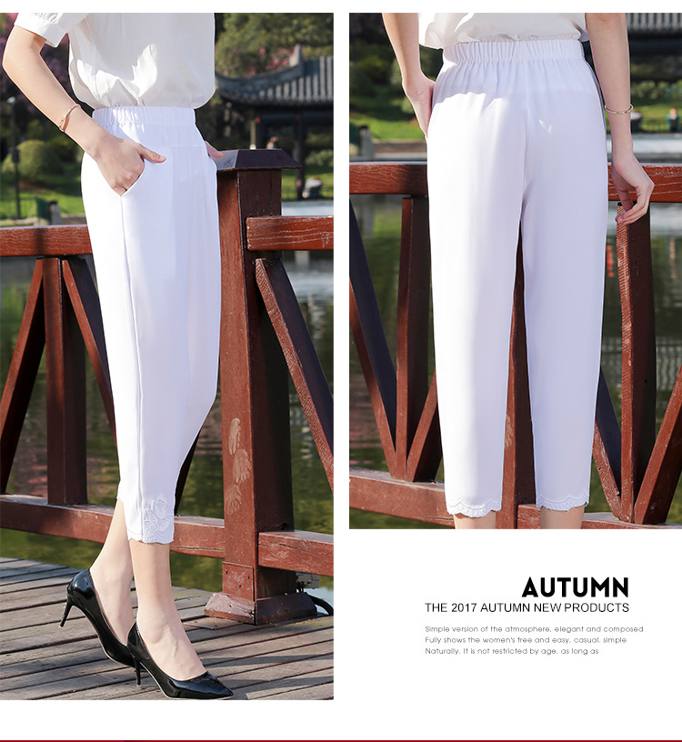妈妈夏装裤子薄款直筒裤中年妇女弹力七分休闲裤中老年人奶奶裤子