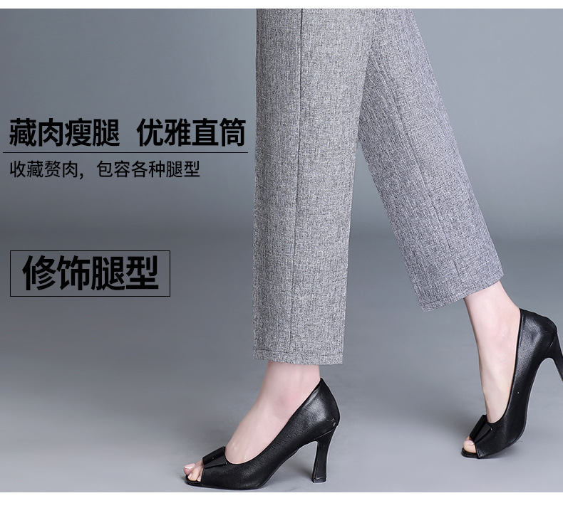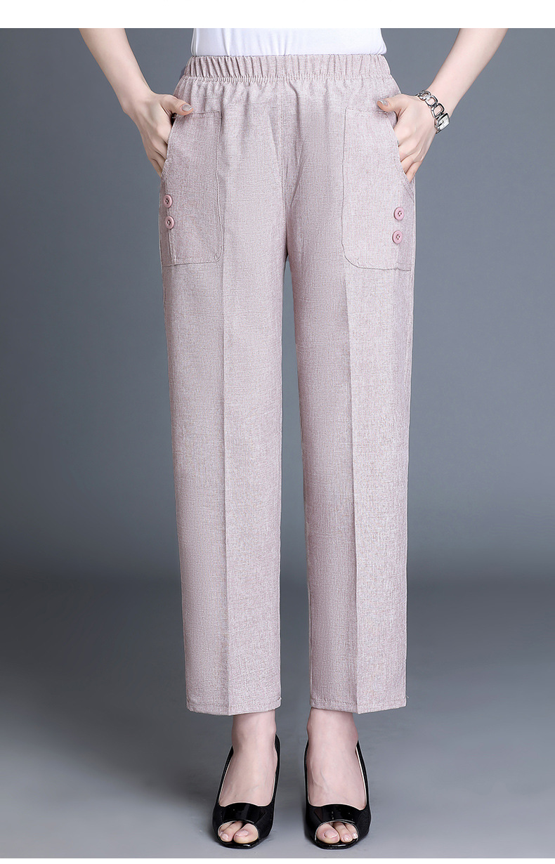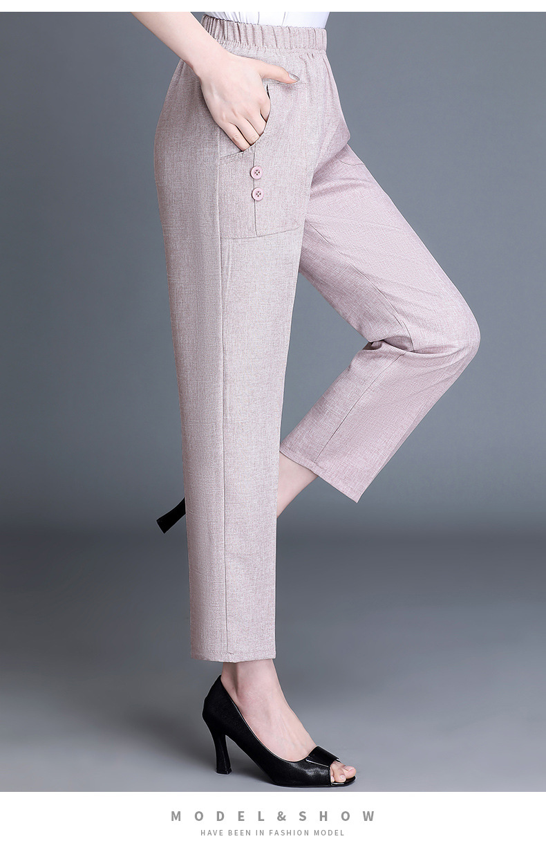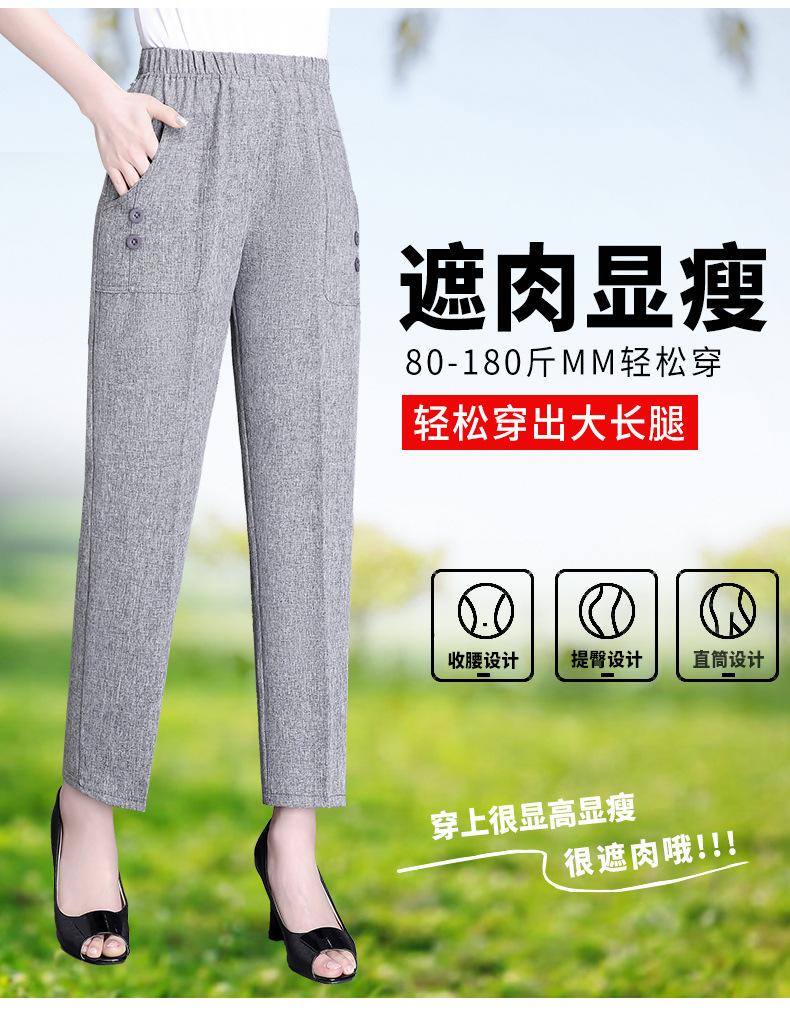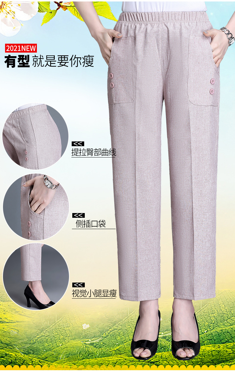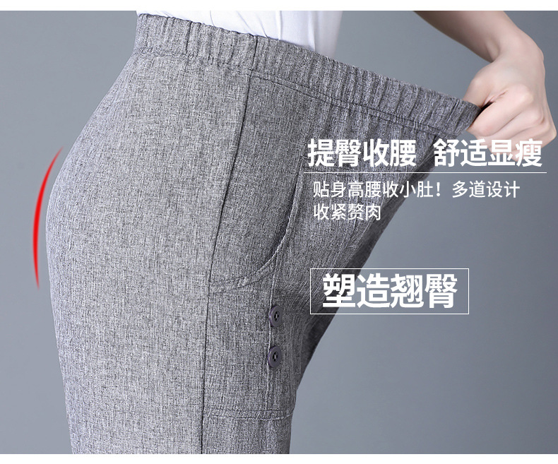 中老年棉麻女裤薄款高腰休闲裤奶奶夏季宽松亚麻直筒九分裤妈妈裤