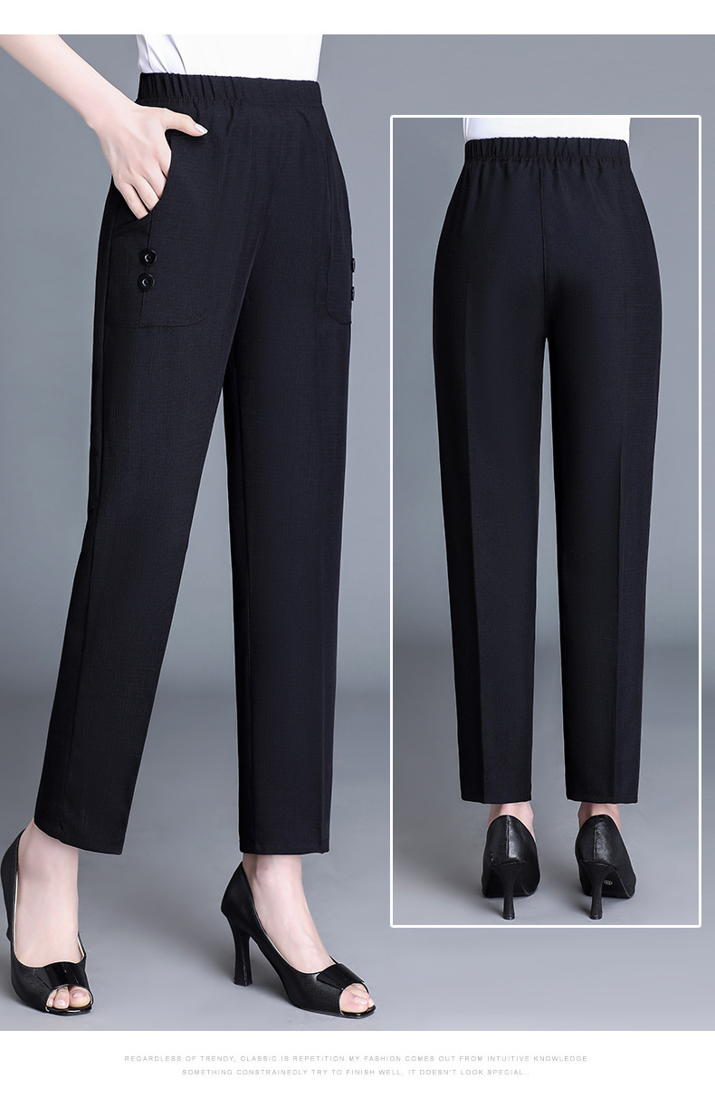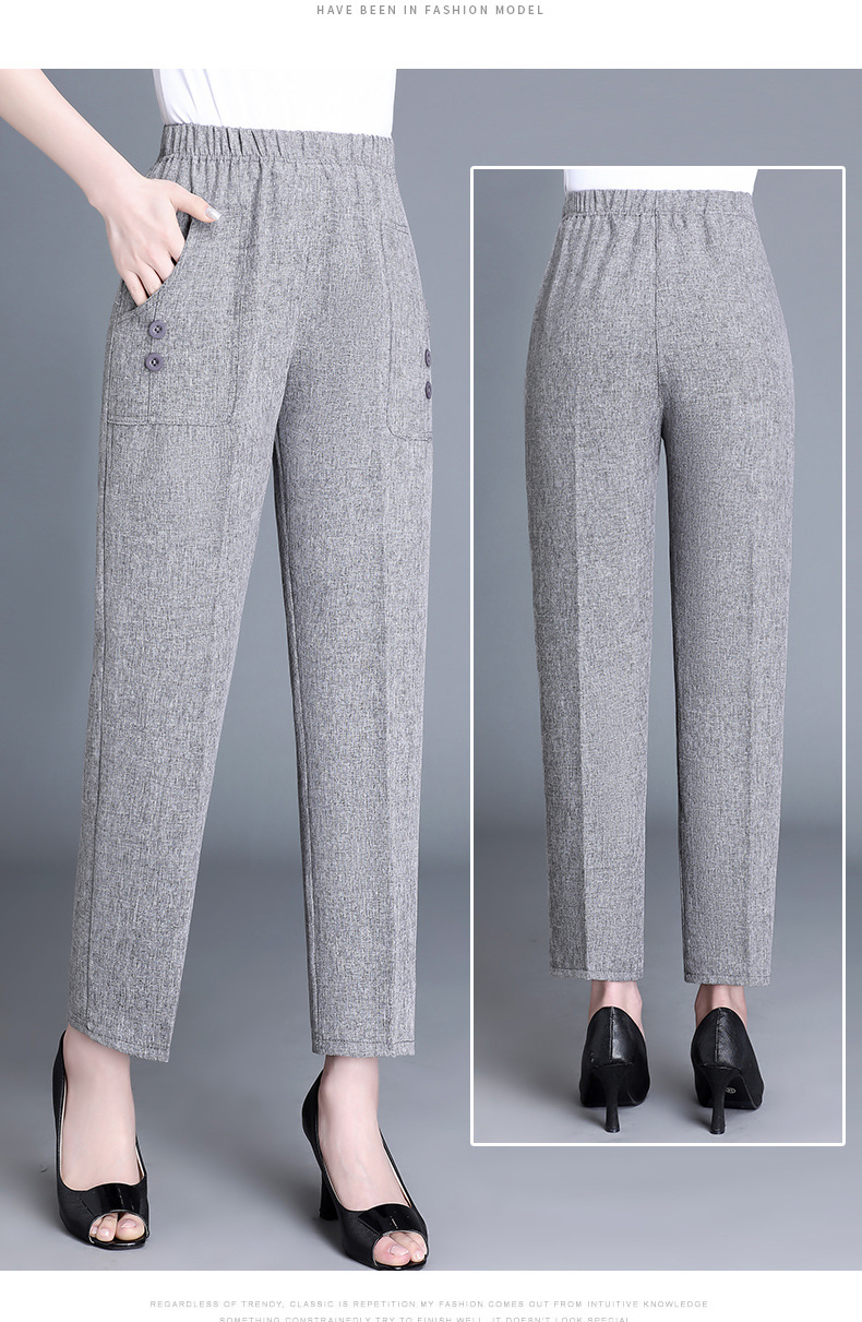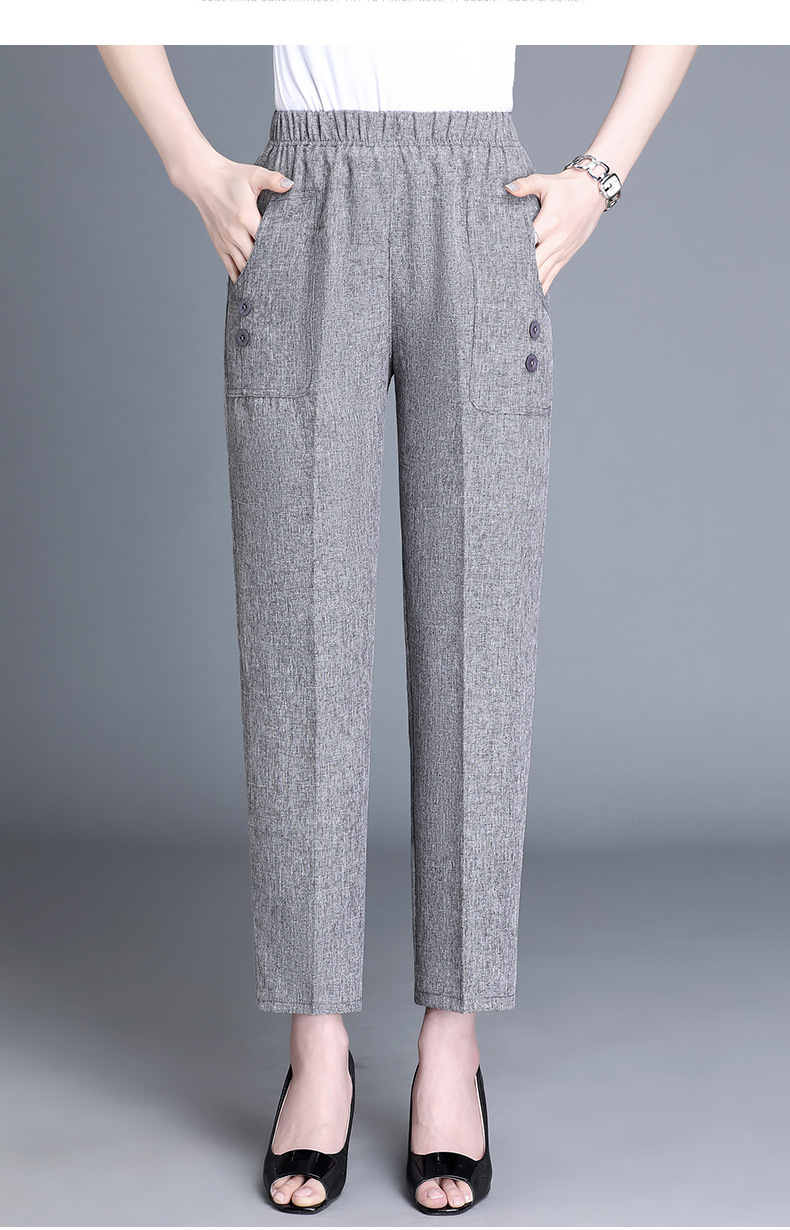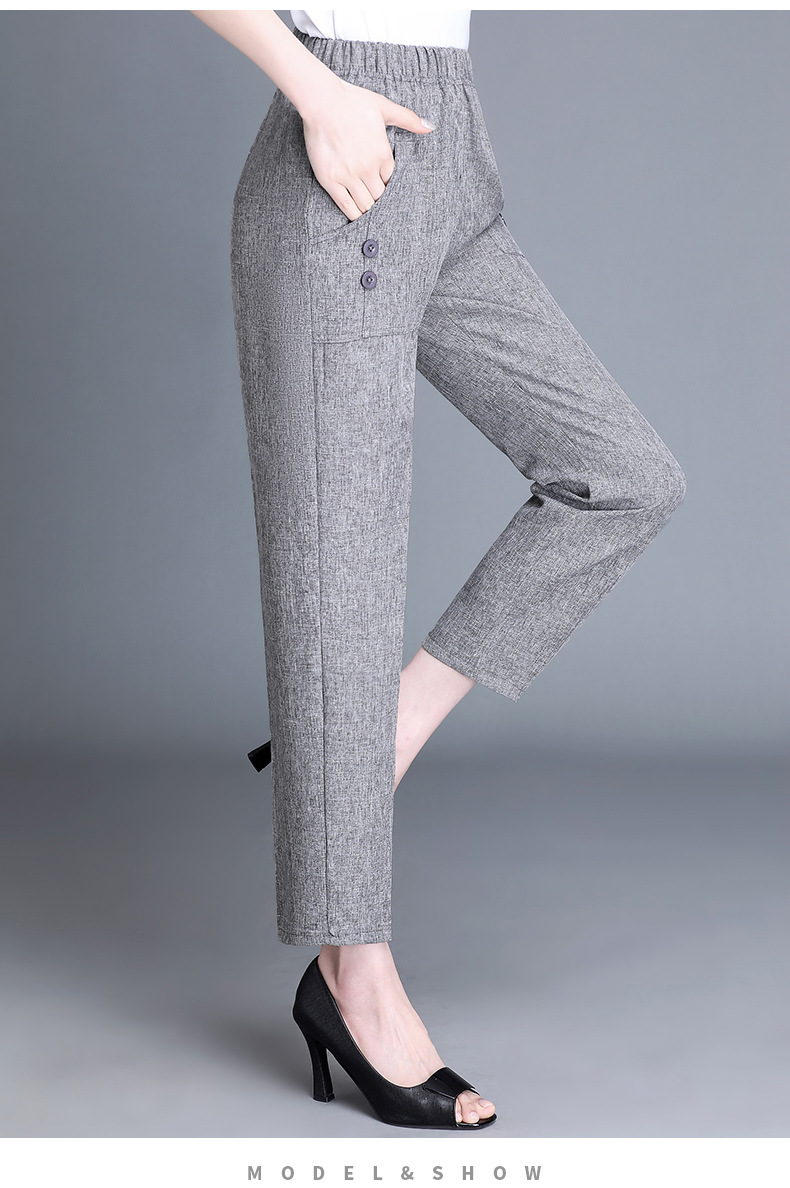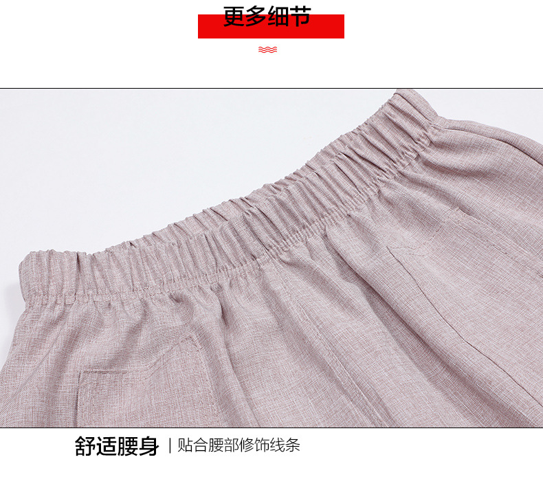 中老年棉麻女裤薄款高腰休闲裤奶奶夏季宽松亚麻直筒九分裤妈妈裤