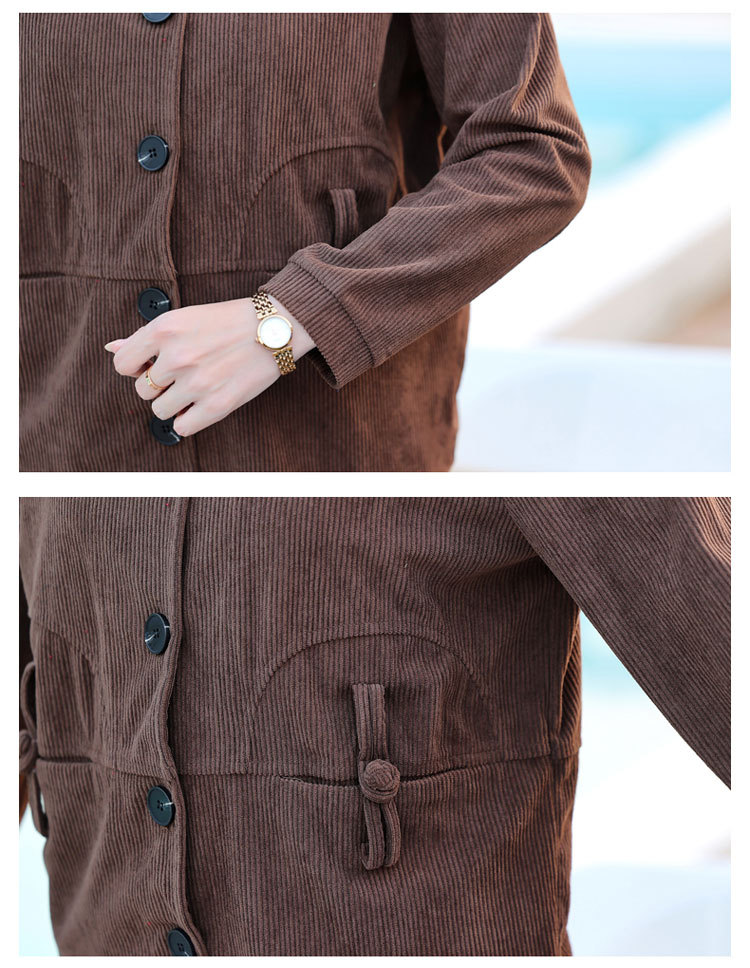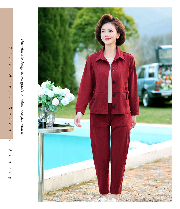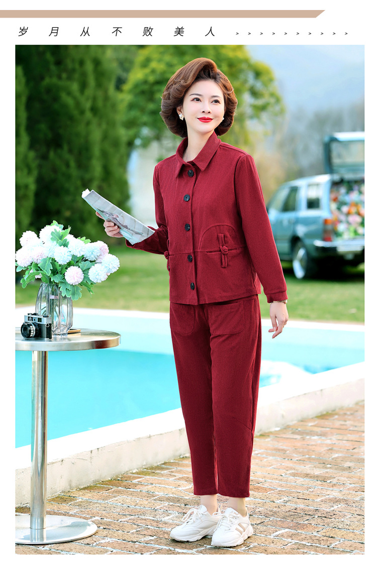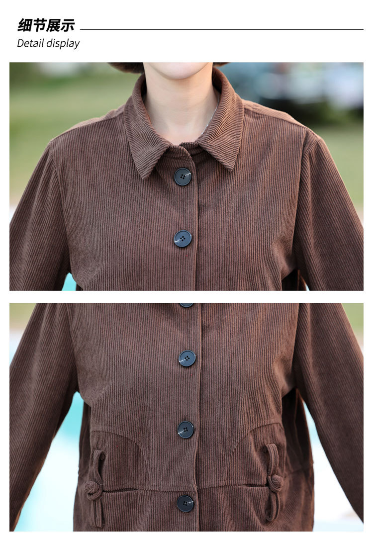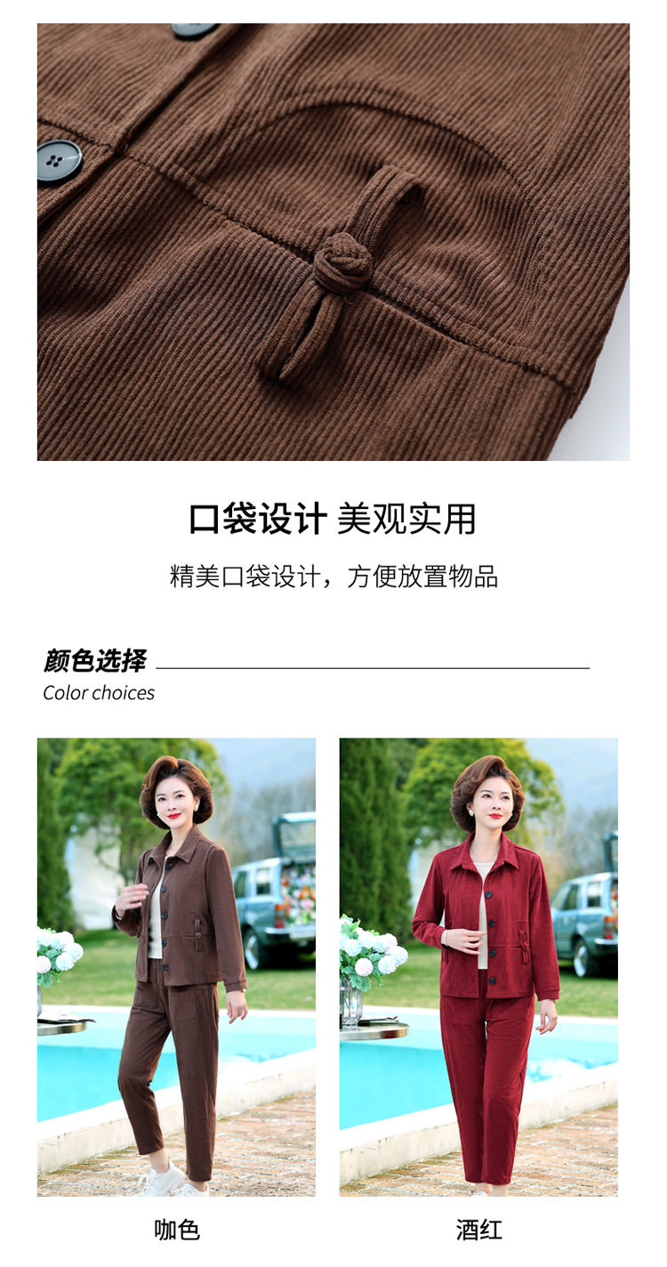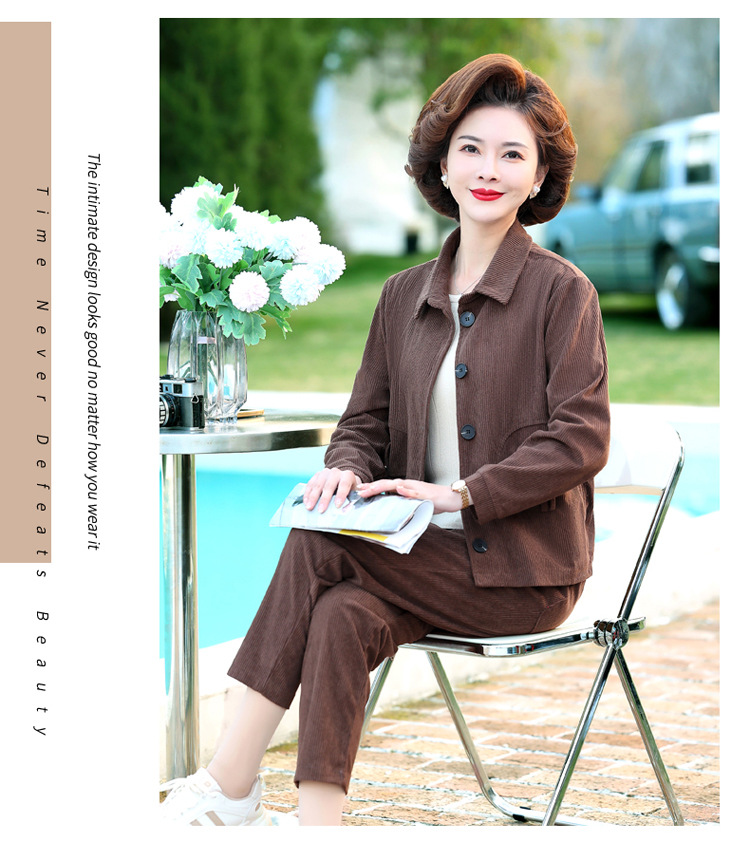 新款春装中年妈妈装条绒灯芯绒休闲两件套装开衫外套女装洋气套装