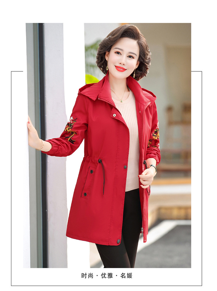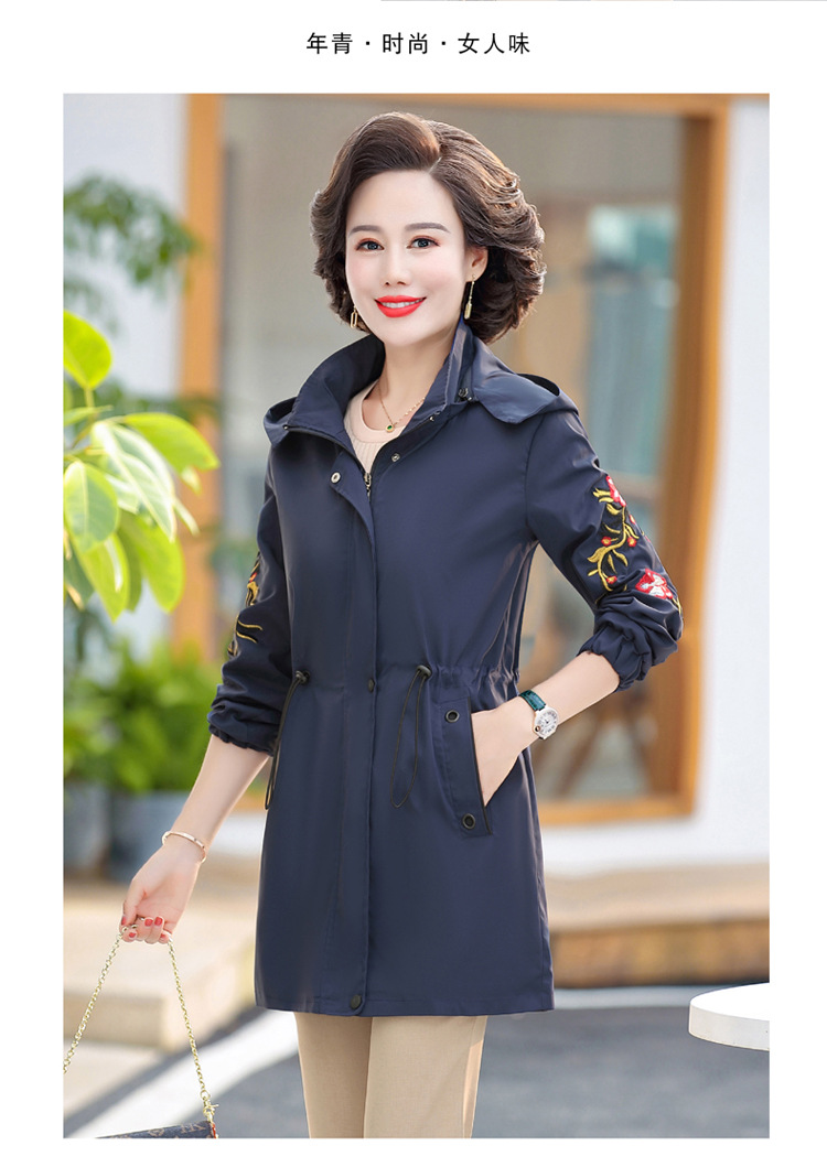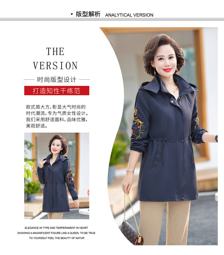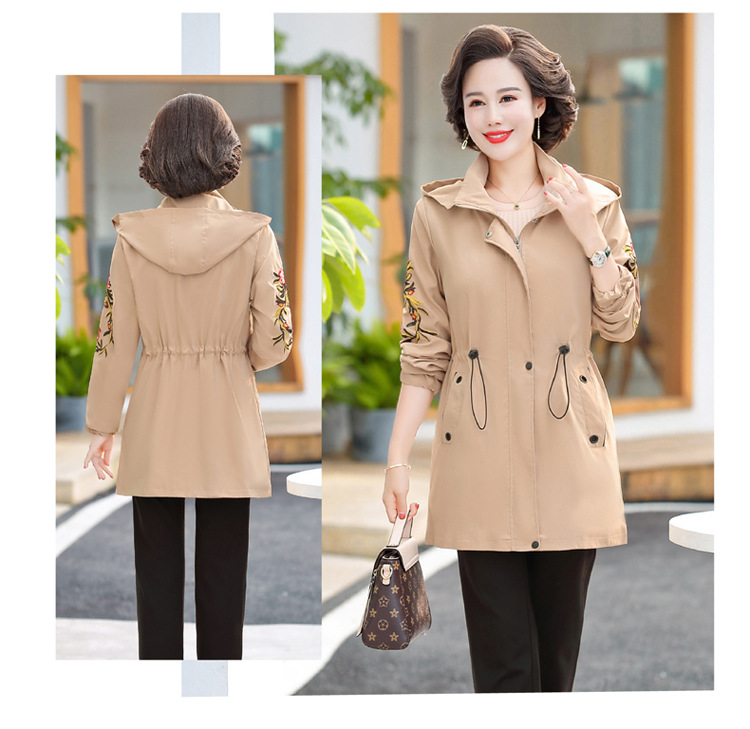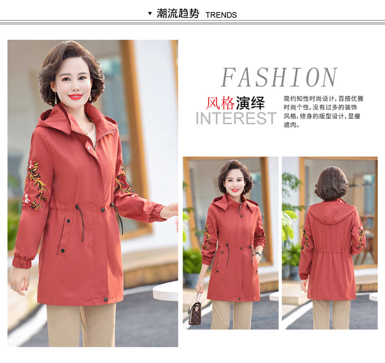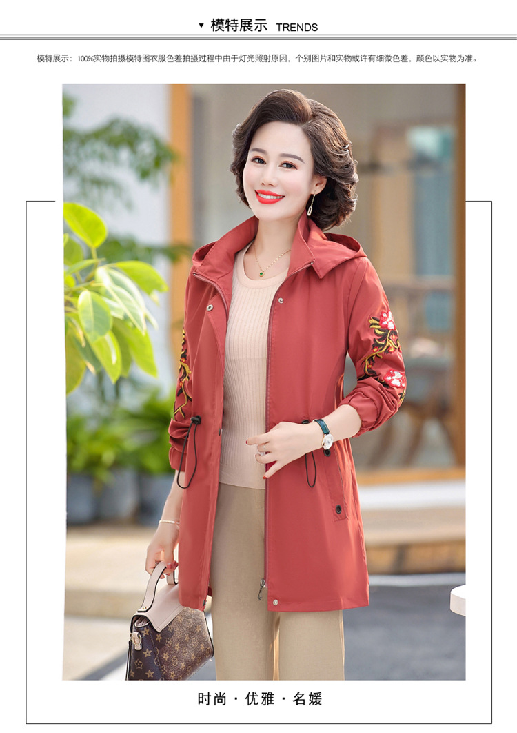 妈妈春装洋气外套中长款风衣薄2023新款中老年女装连帽夹克上衣女