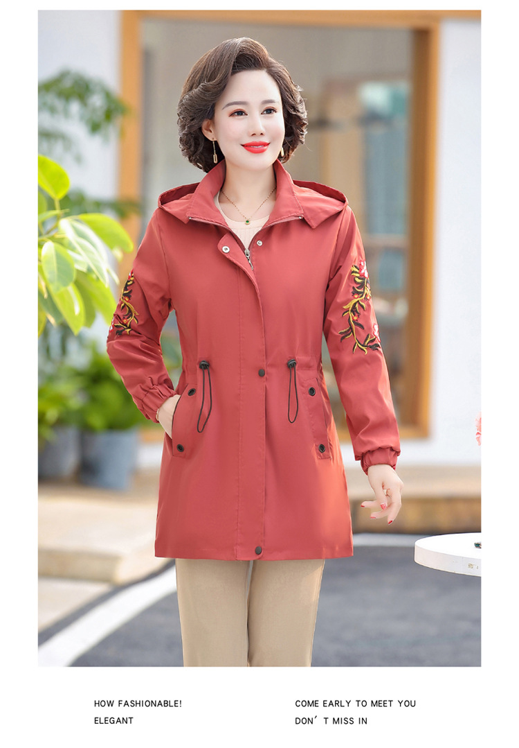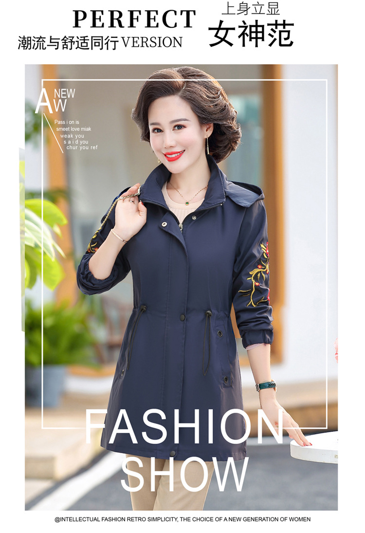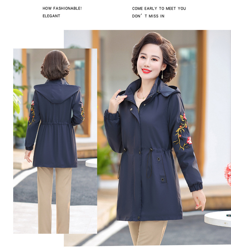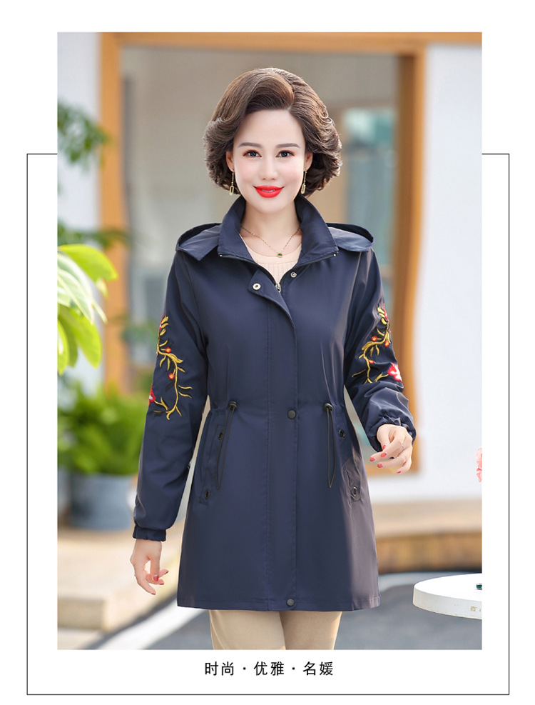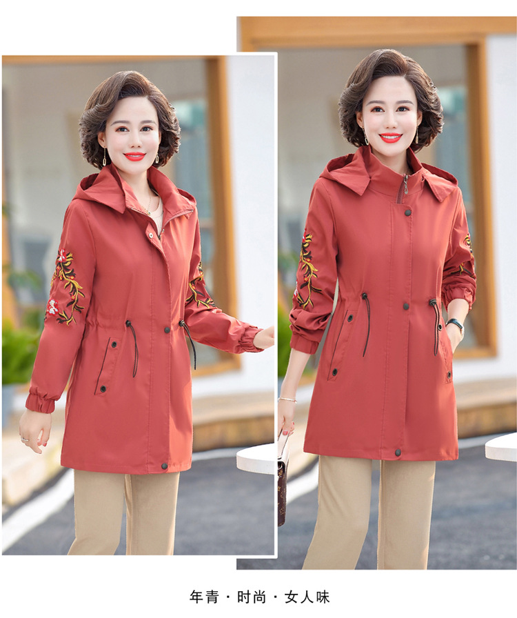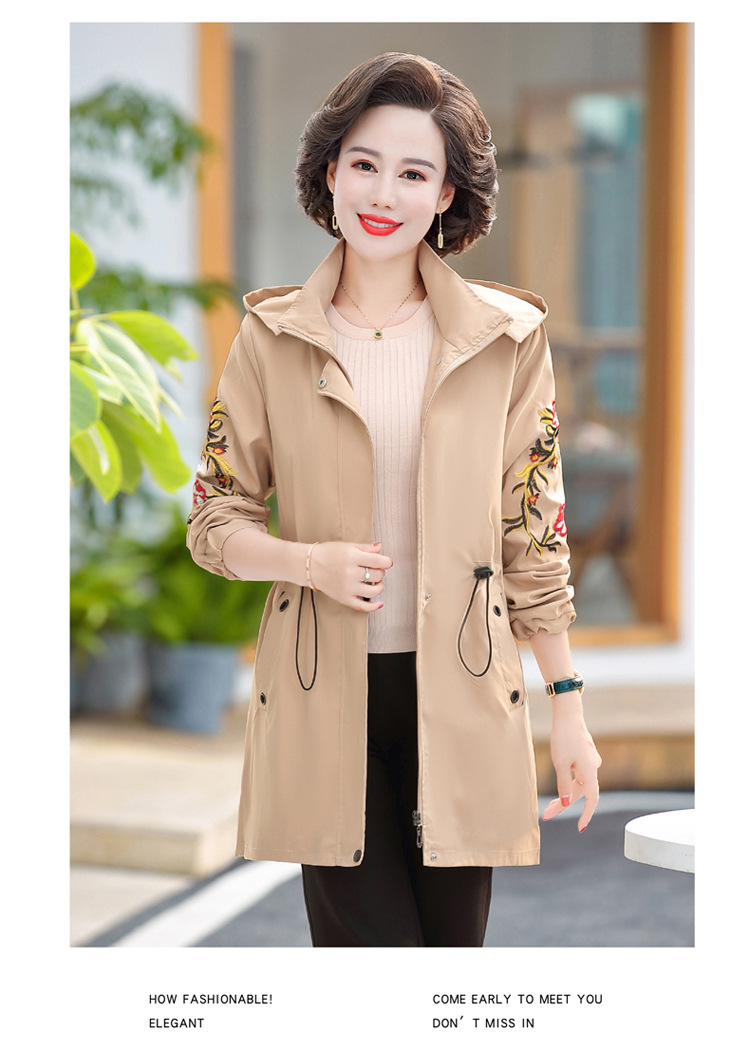 妈妈春装洋气外套中长款风衣薄2023新款中老年女装连帽夹克上衣女