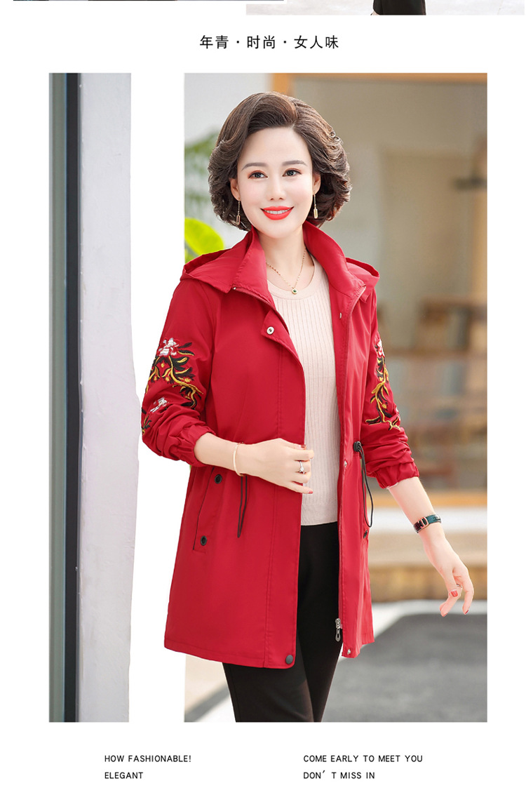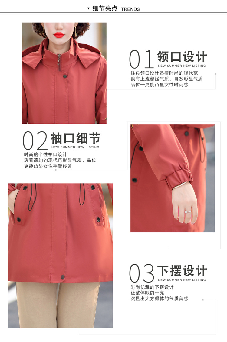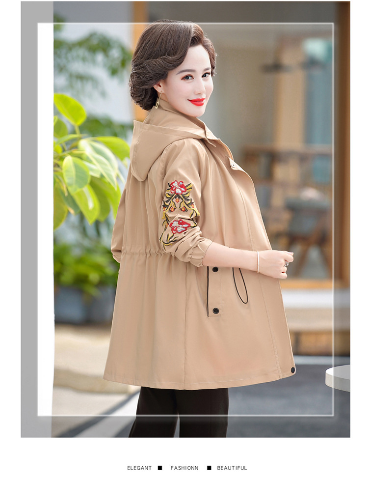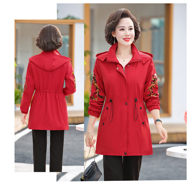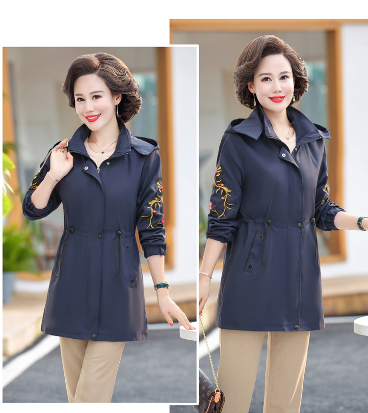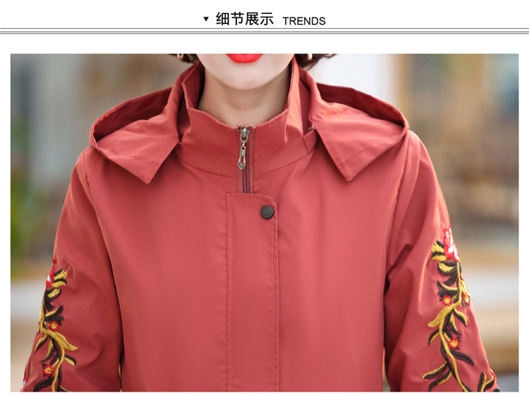 妈妈春装洋气外套中长款风衣薄2023新款中老年女装连帽夹克上衣女