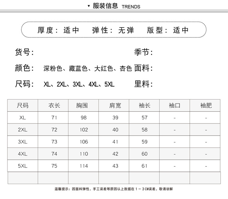 | 3xl (recommended 60.00 kg-67.50 kg(3XL(建议120-135斤)) | USD $0.0 | 500 piece available |