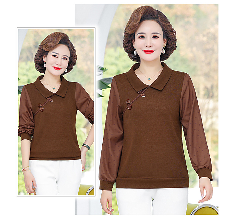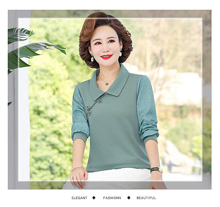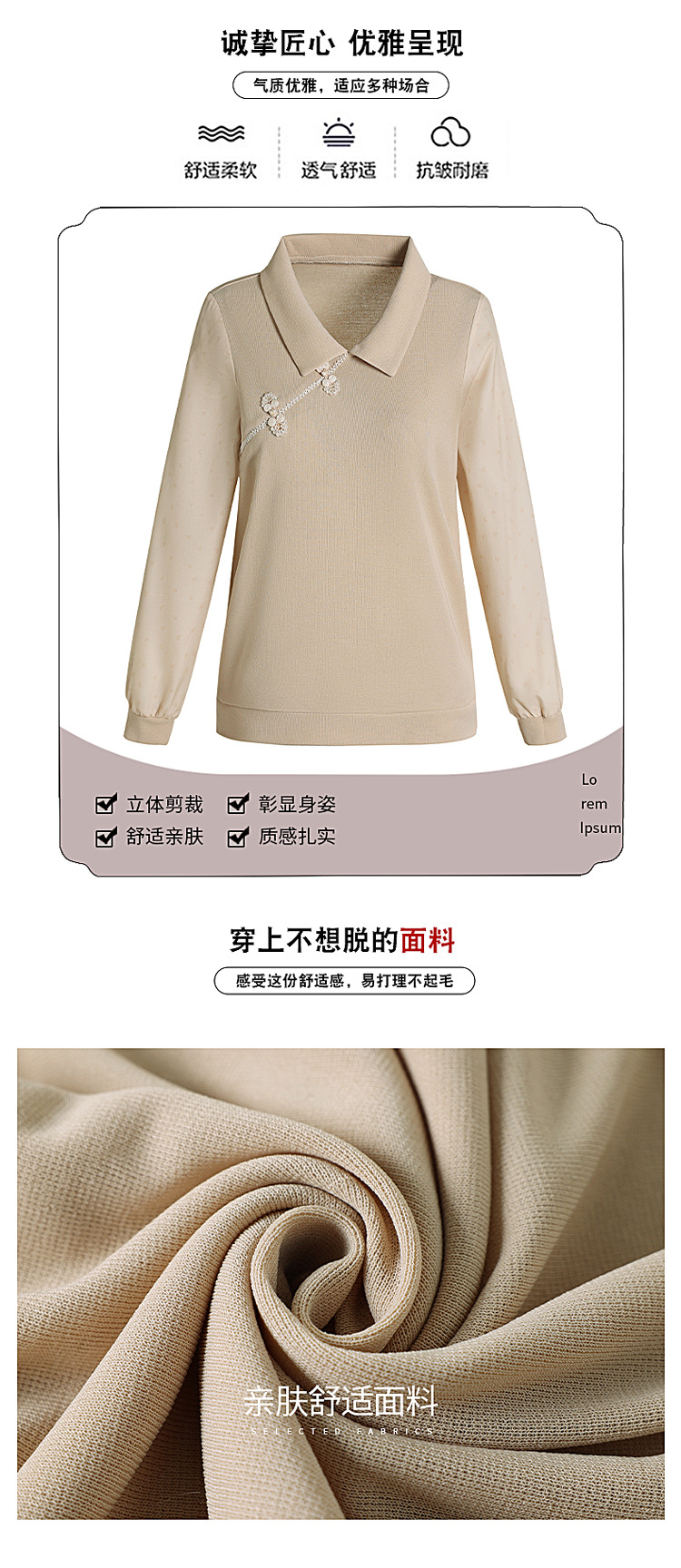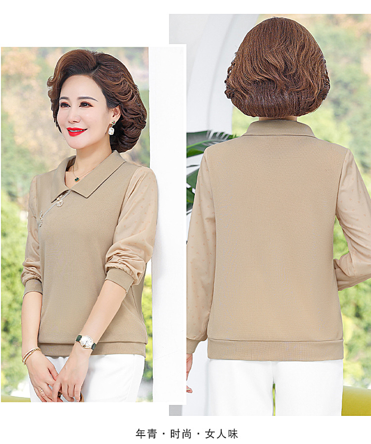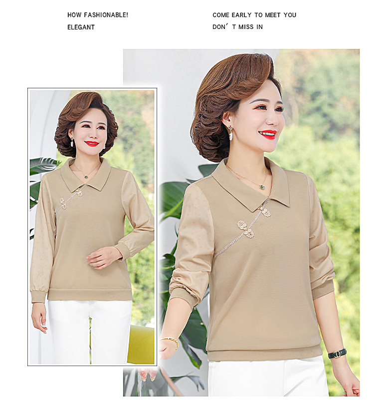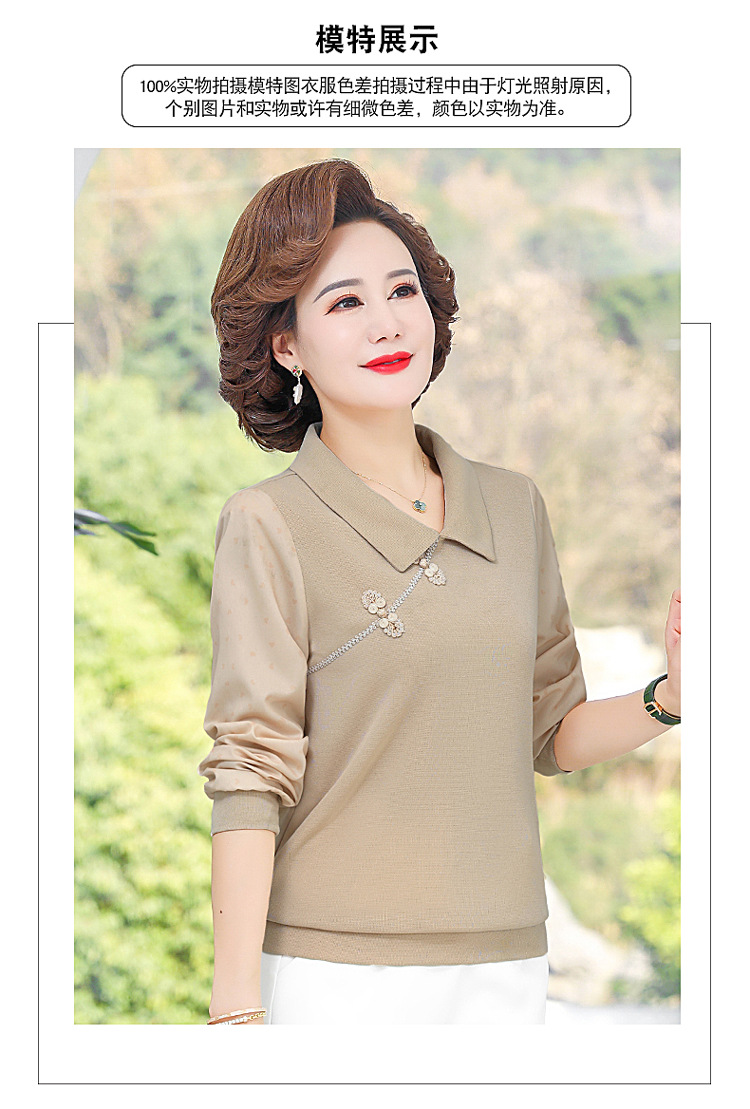 妈妈春装洋气T恤小衫50岁中老年人女春秋短款时尚娃娃领打底上衣