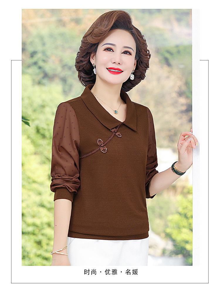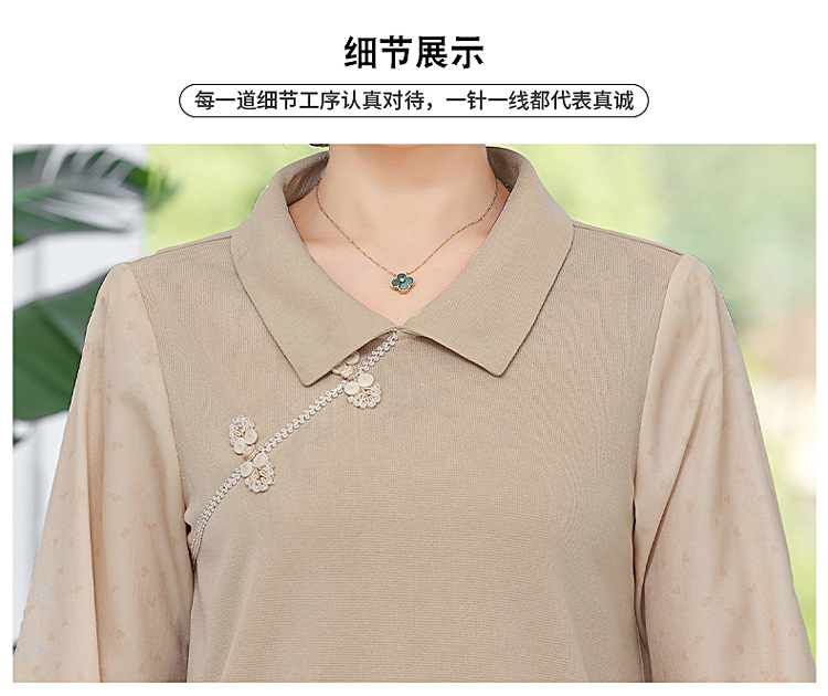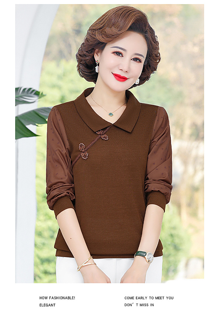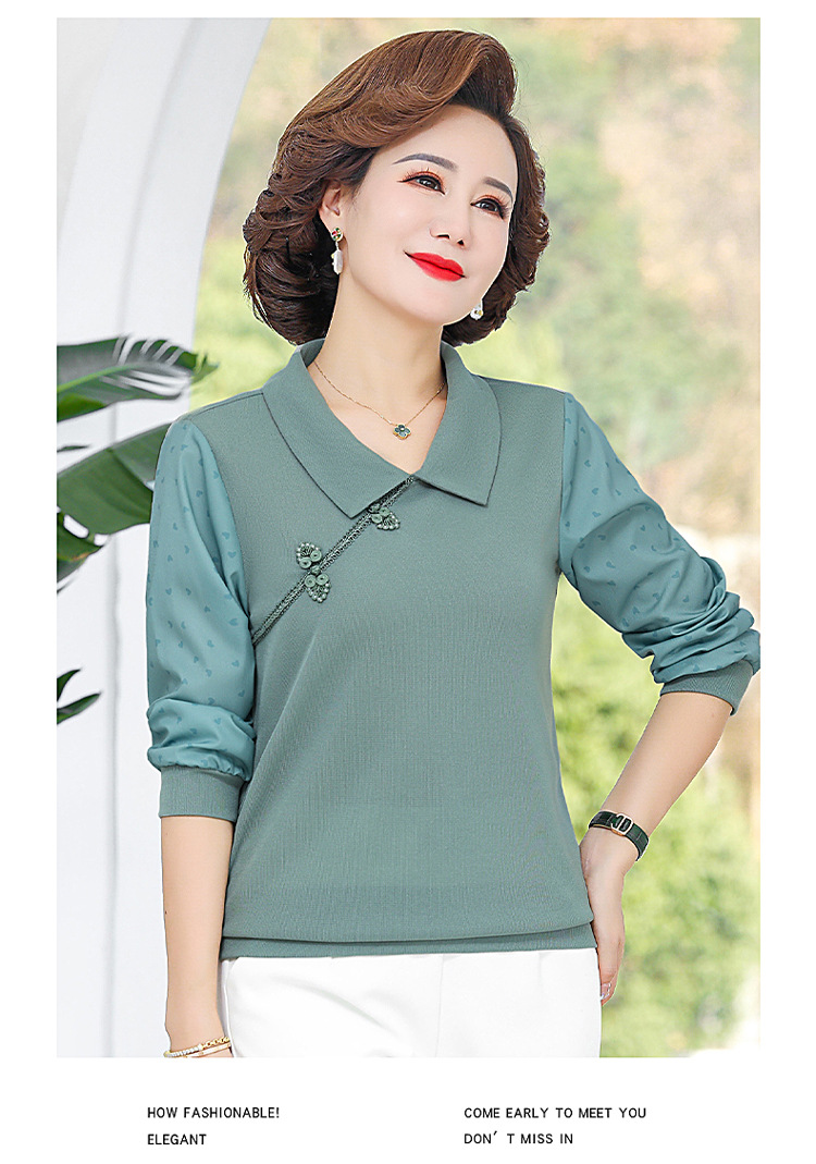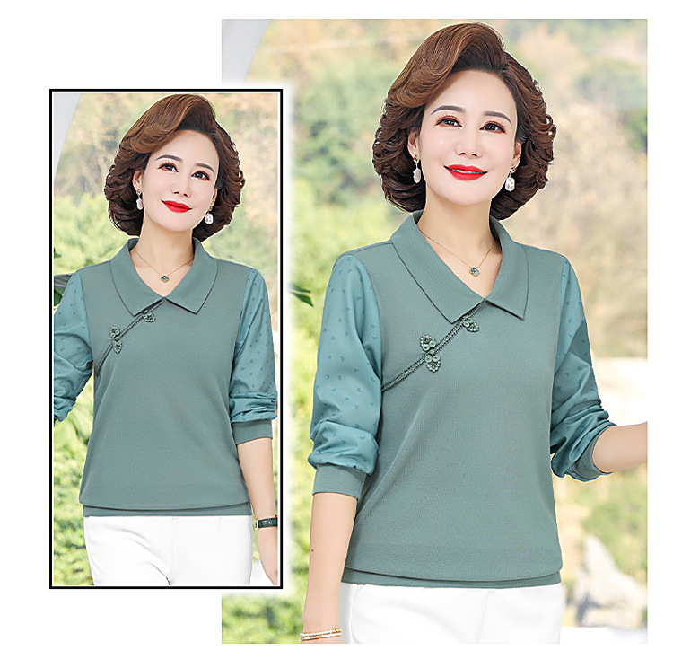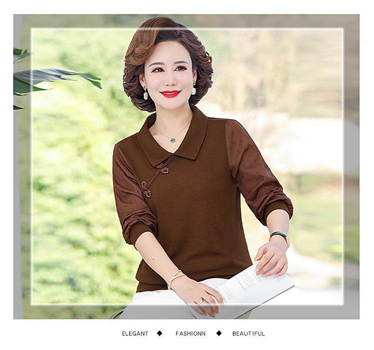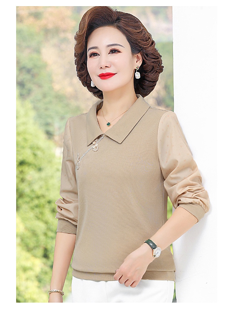 妈妈春装洋气T恤小衫50岁中老年人女春秋短款时尚娃娃领打底上衣